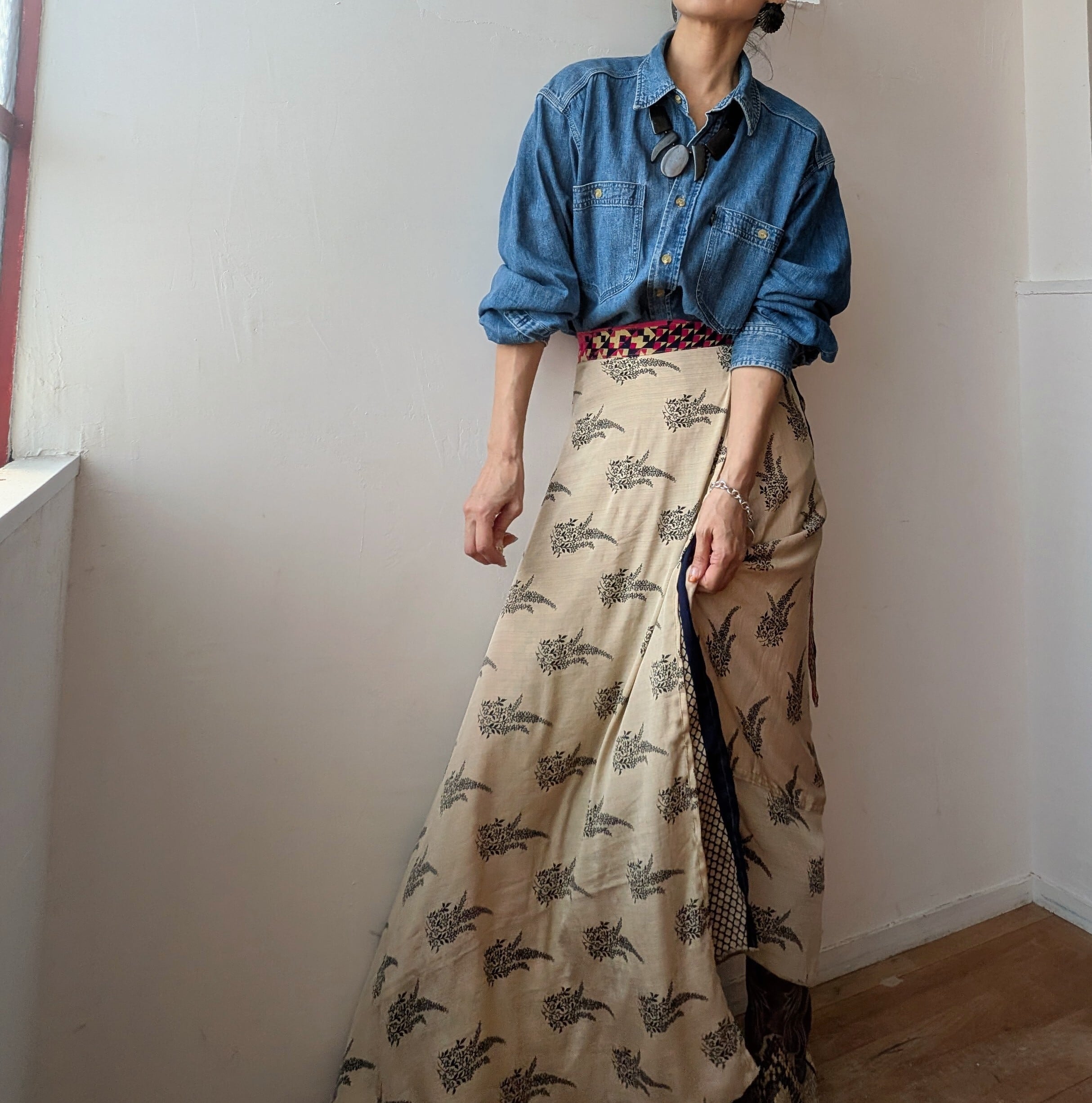 美しいインドの伝統が息づく、オールドサリーをリメイクした巻きスカートで、一枚ずつセレクトされたサリーから1点1点ハンドメイドで作られており