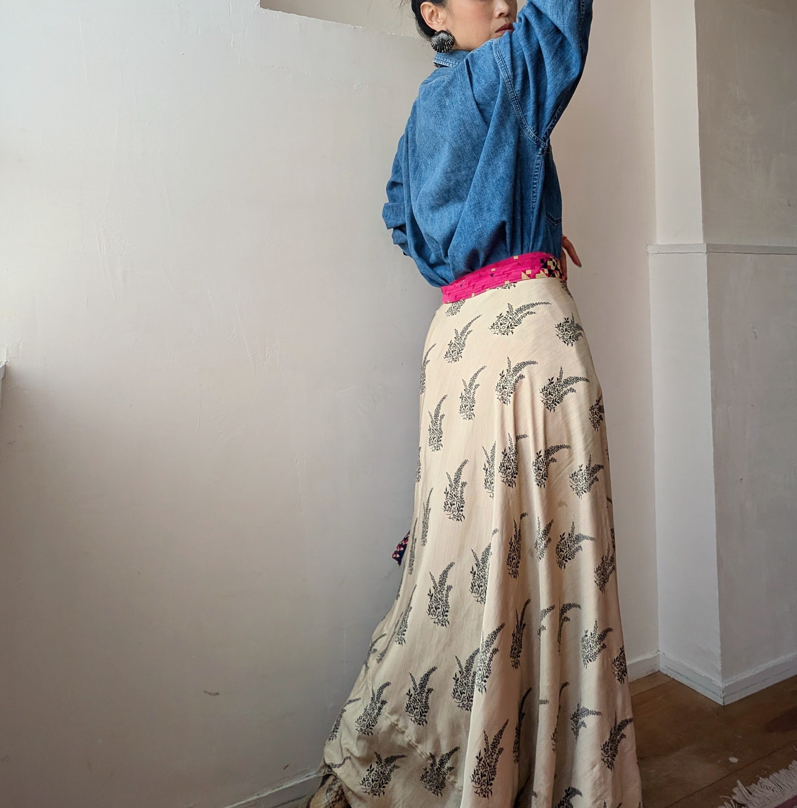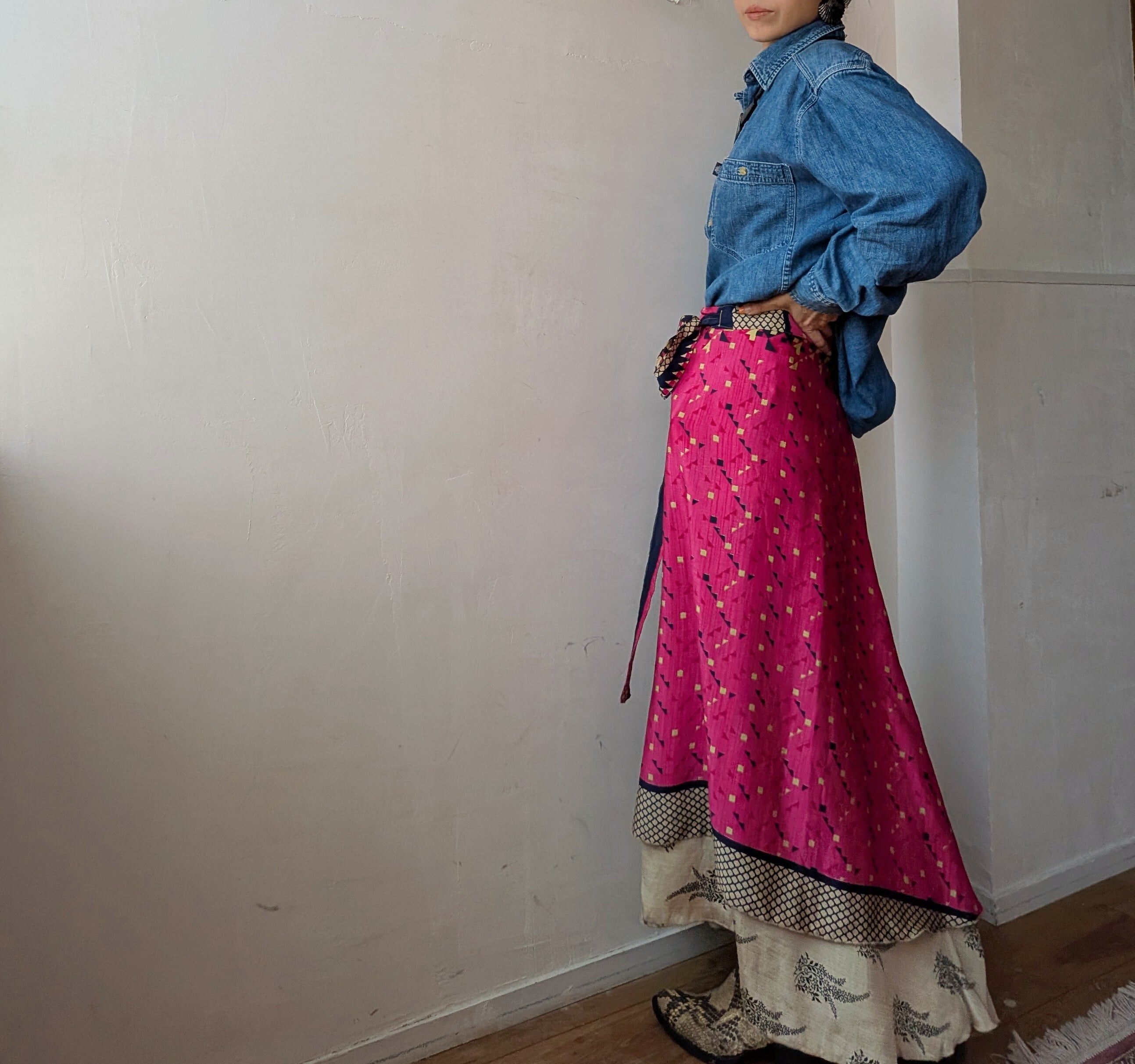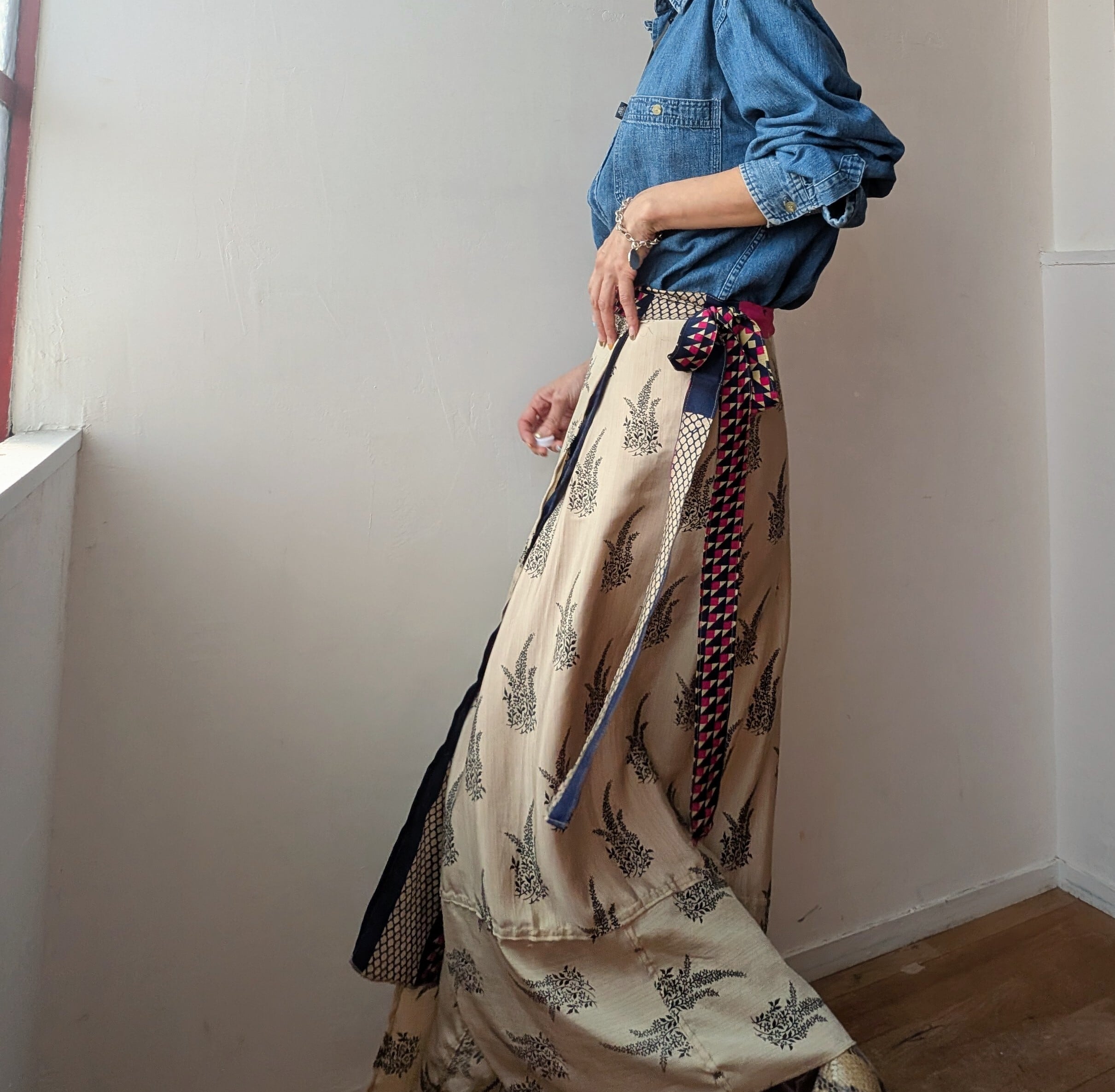 vintage silk100% Remake surly Reversible wrap skirt