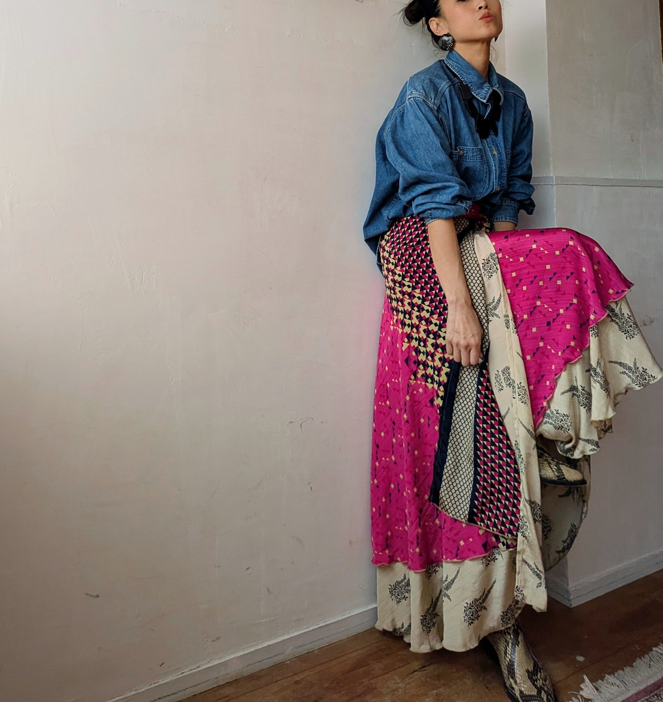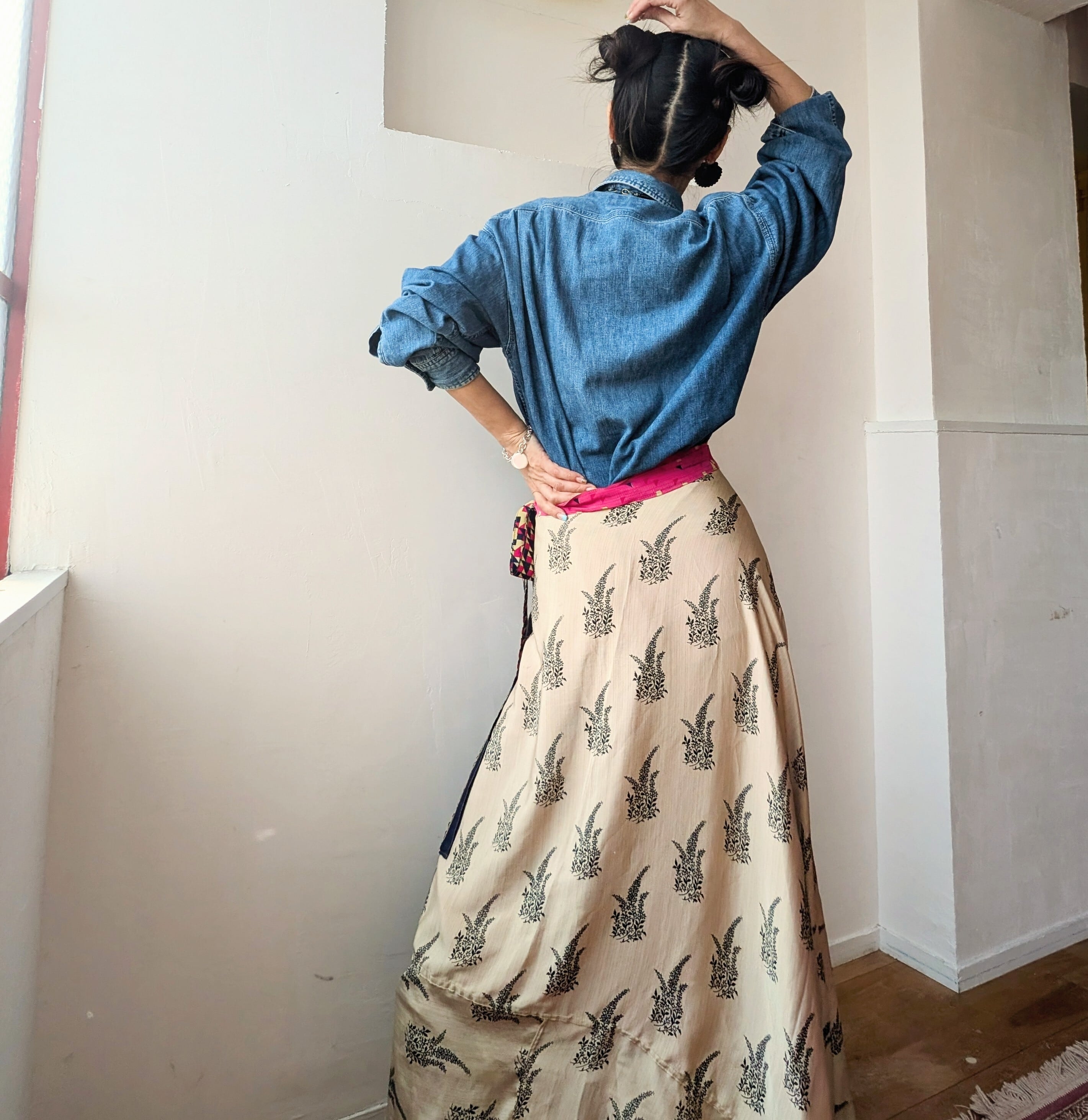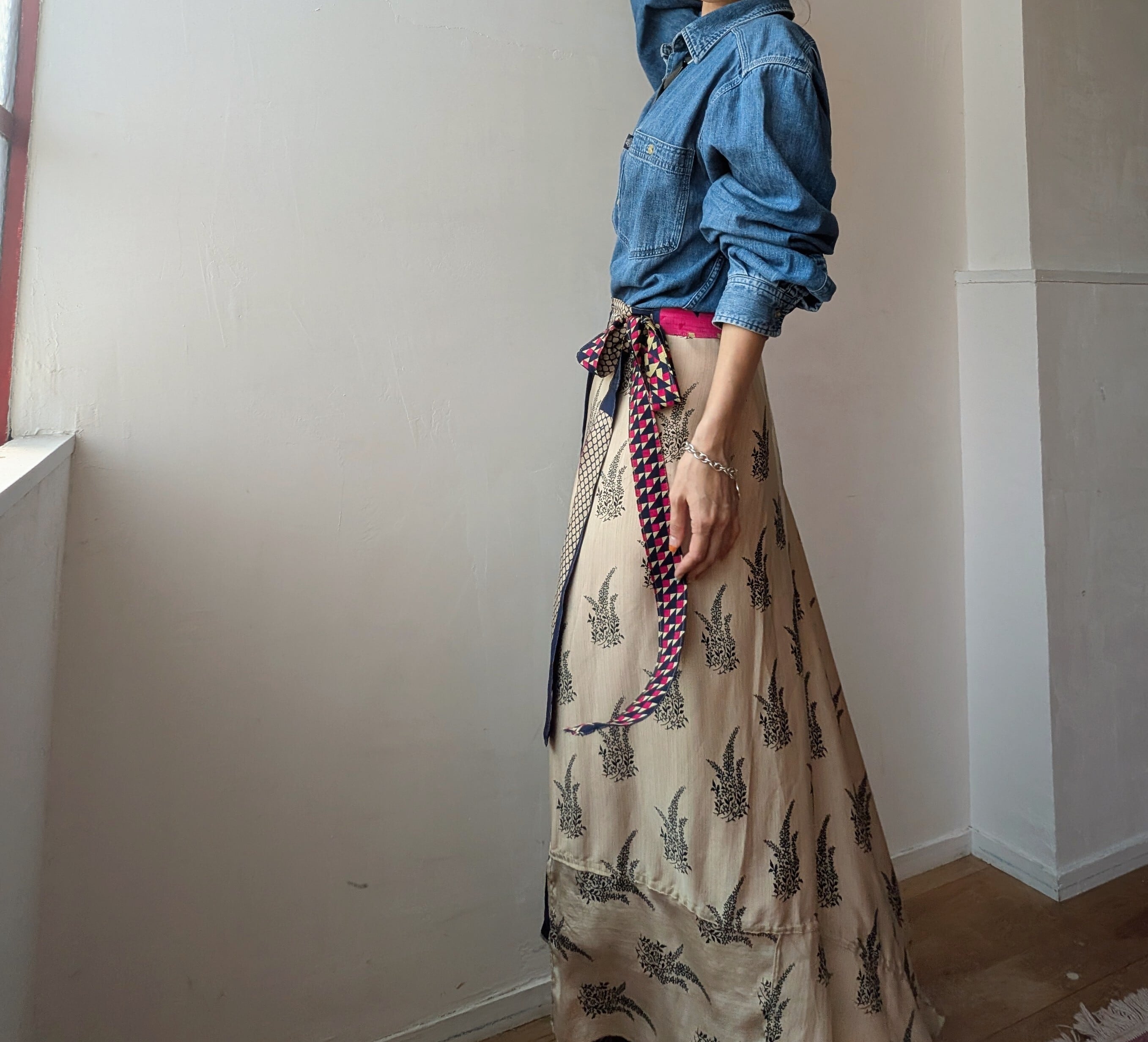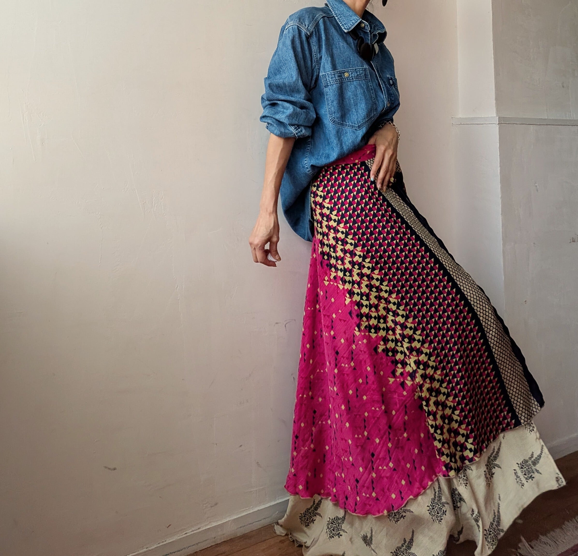 vintage silk100% Remake surly Reversible wrap skirt
