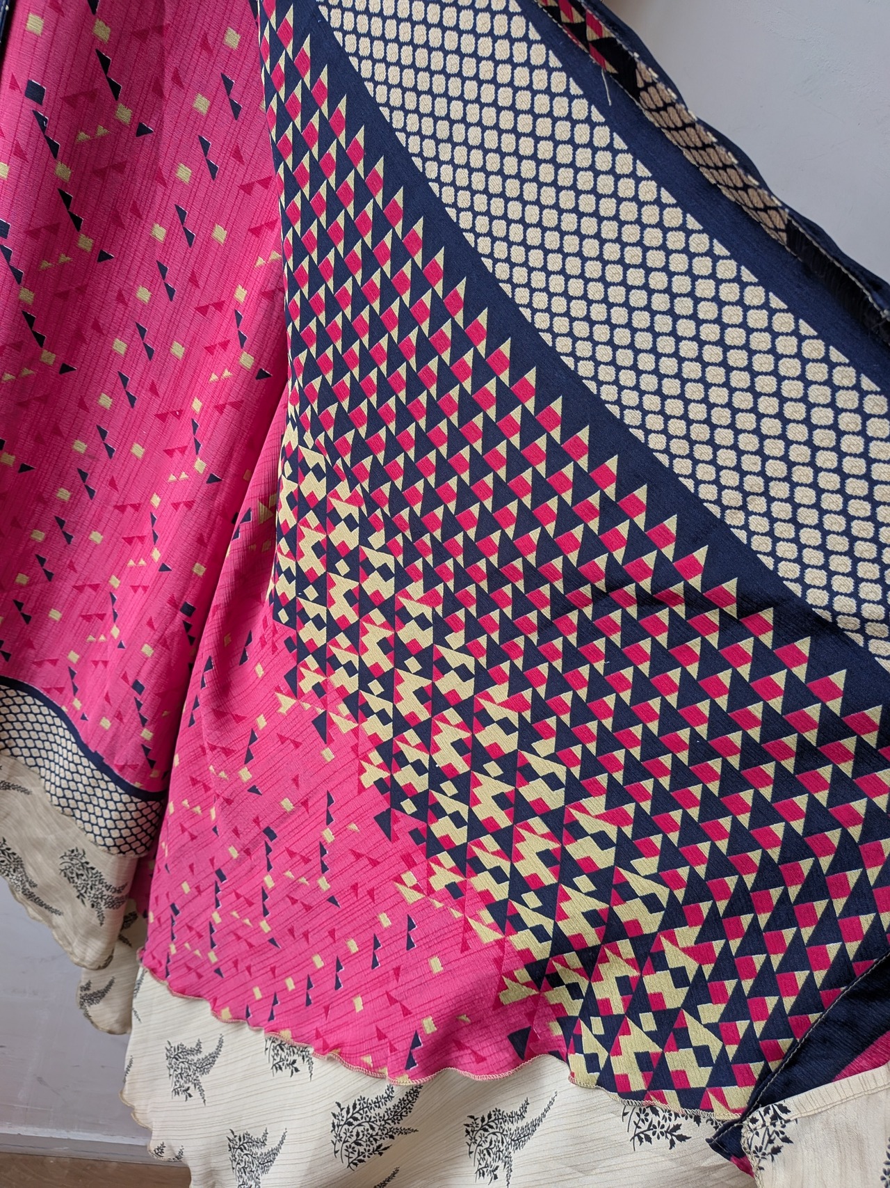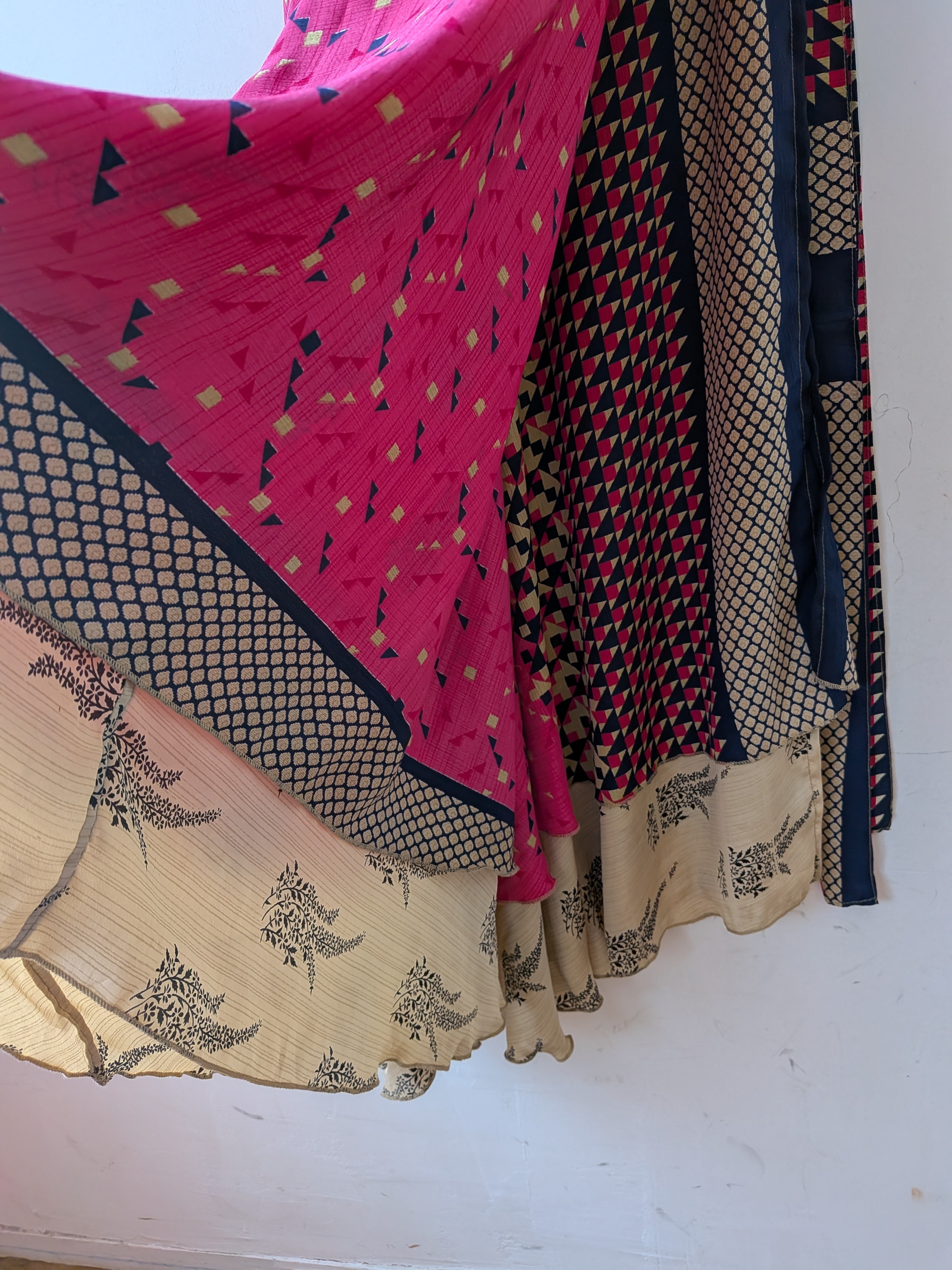 こちらはvintageサリーをリメイクしたお品となり、1点1点手作業で作られているため、生地にほつれがある場合があります。