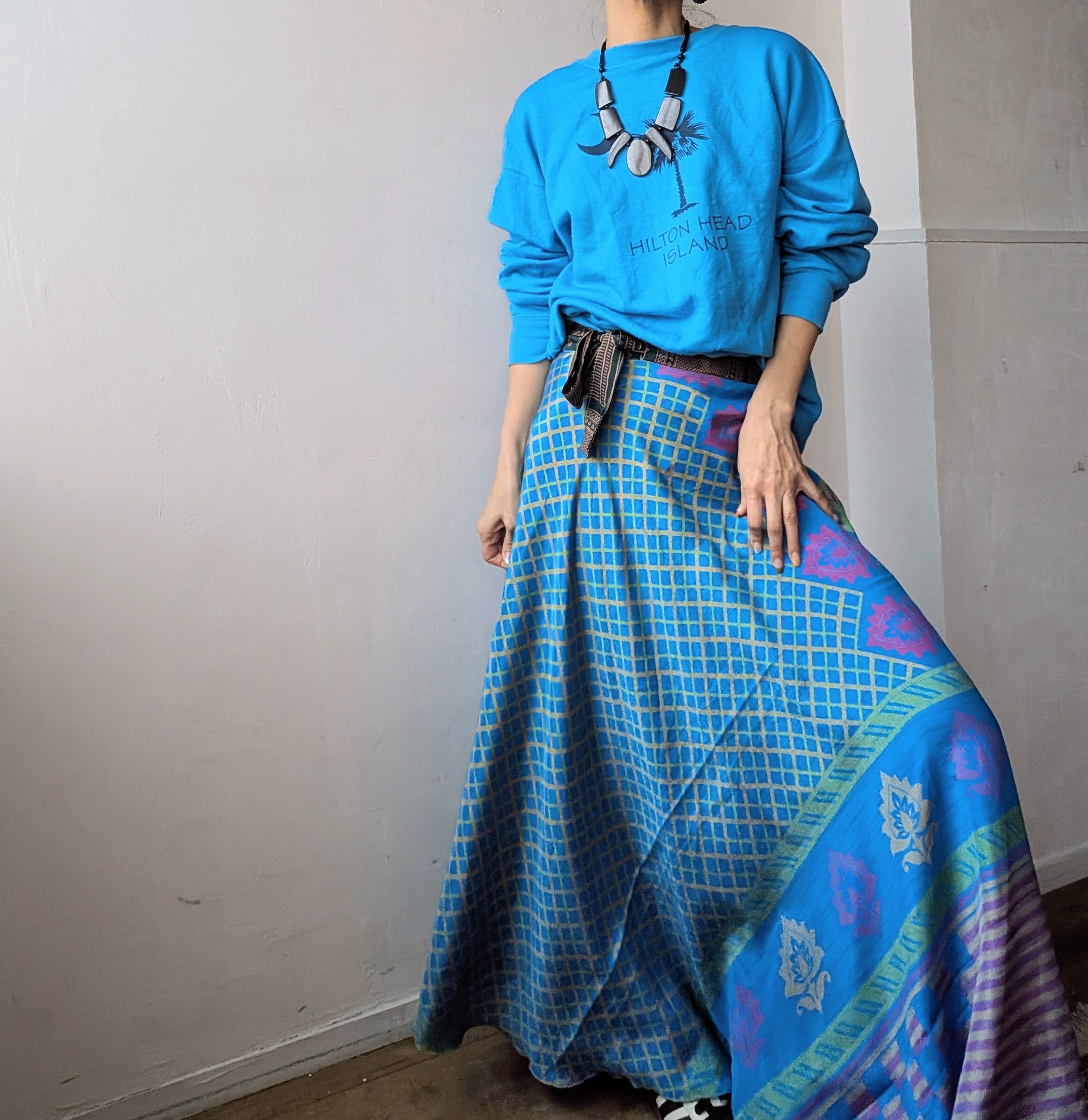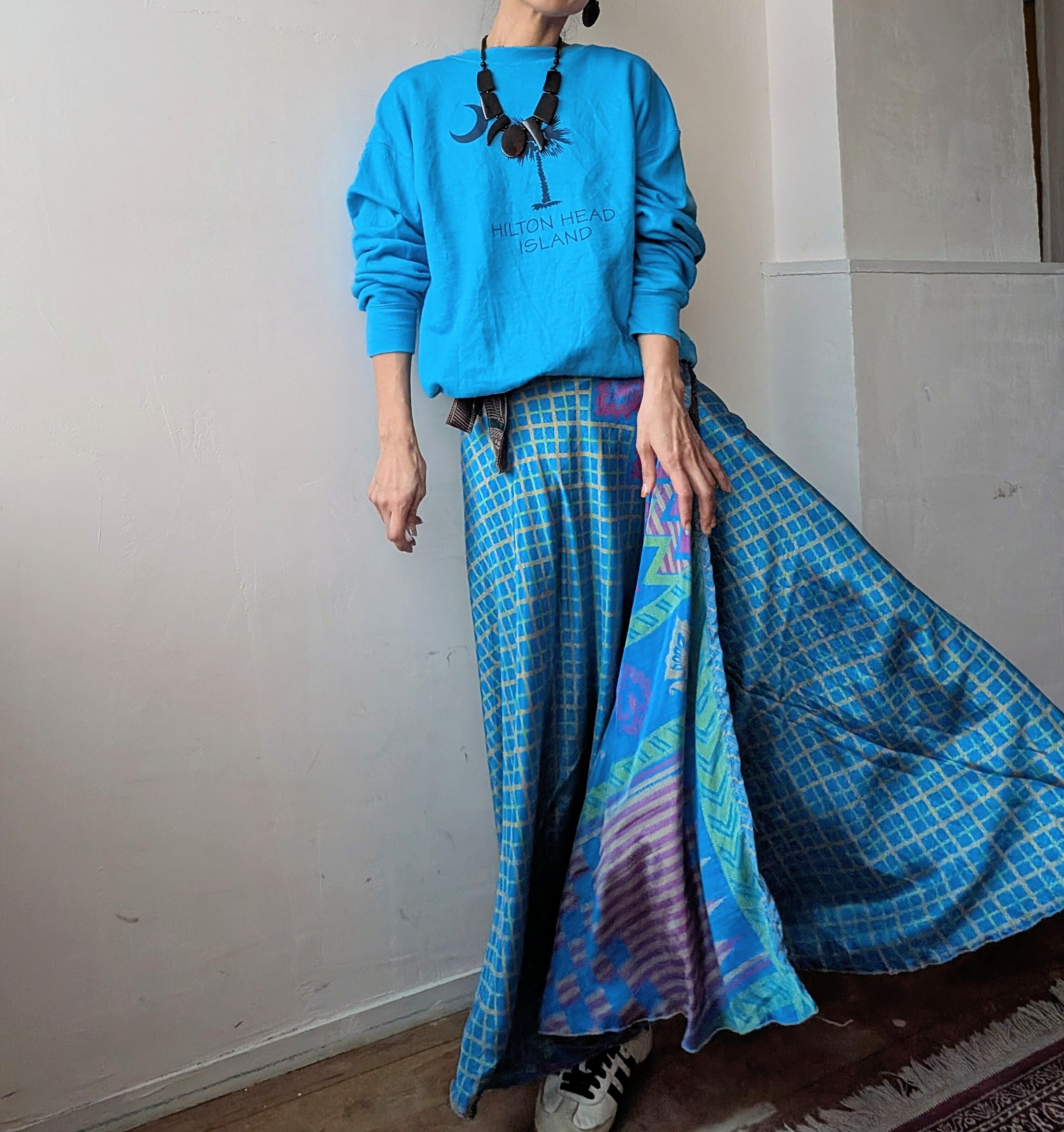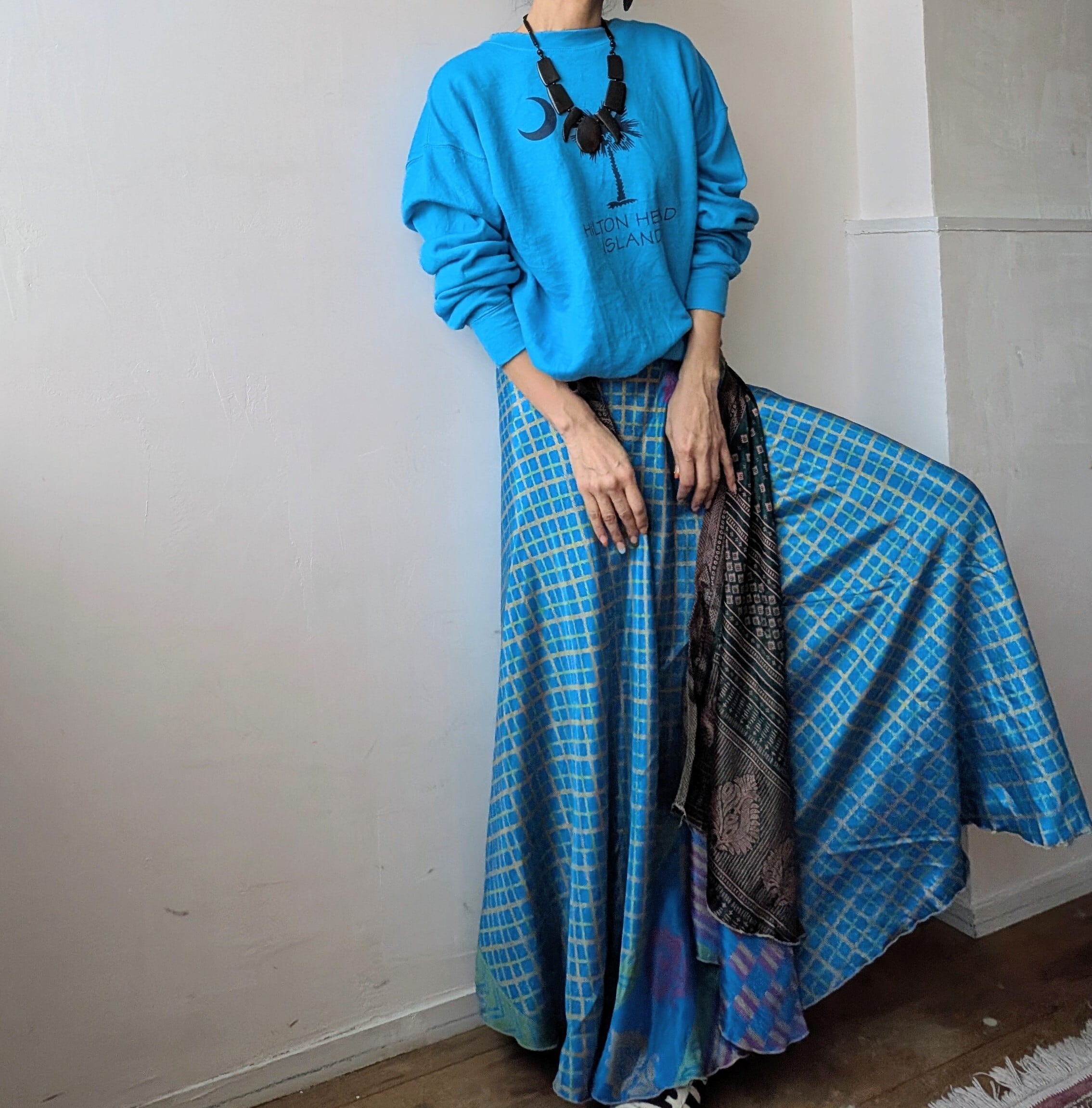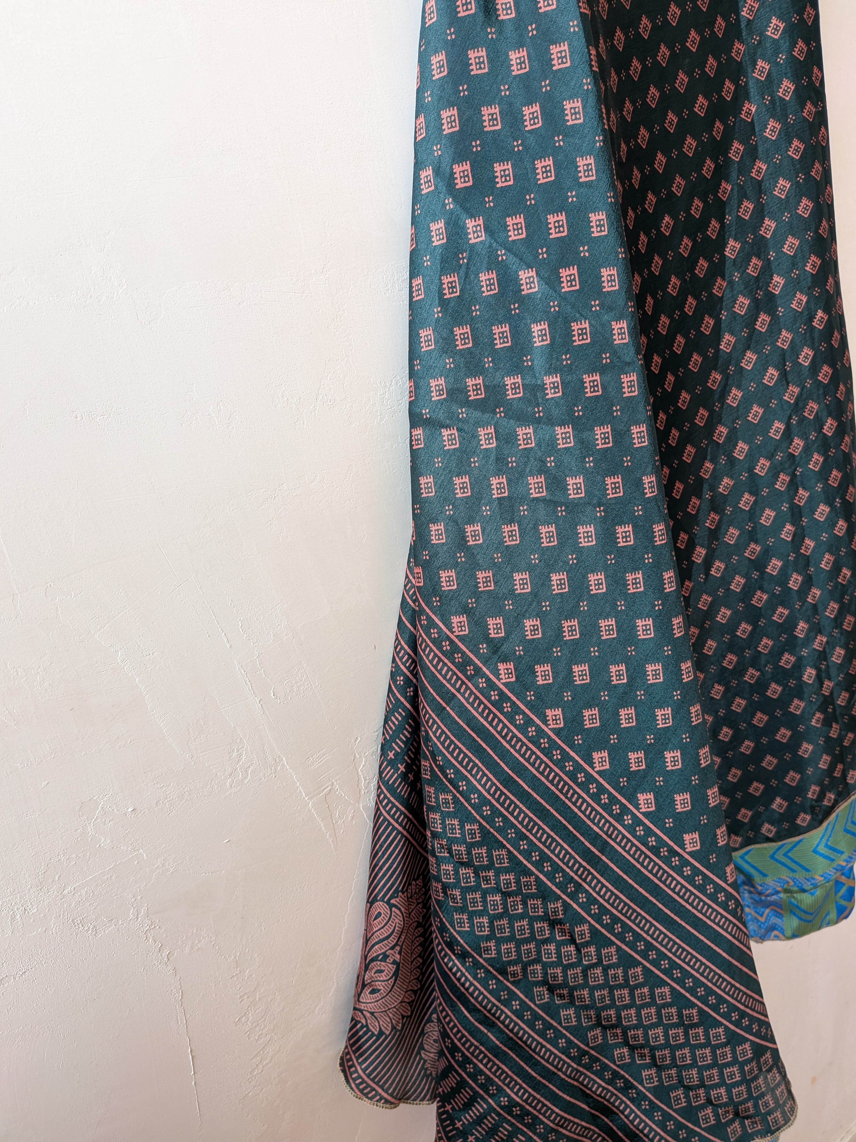 美しいインドの伝統が息づく、オールドサリーをリメイクした巻きスカートで、一枚ずつセレクトされたサリーから1点1点ハンドメイドで作られており