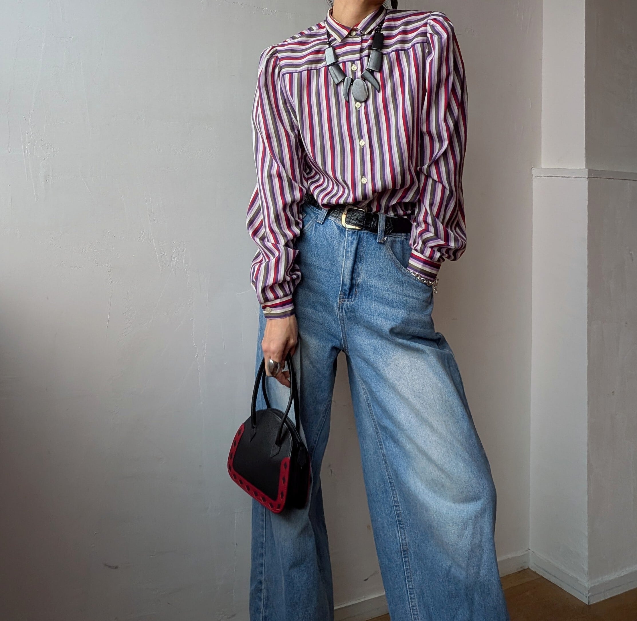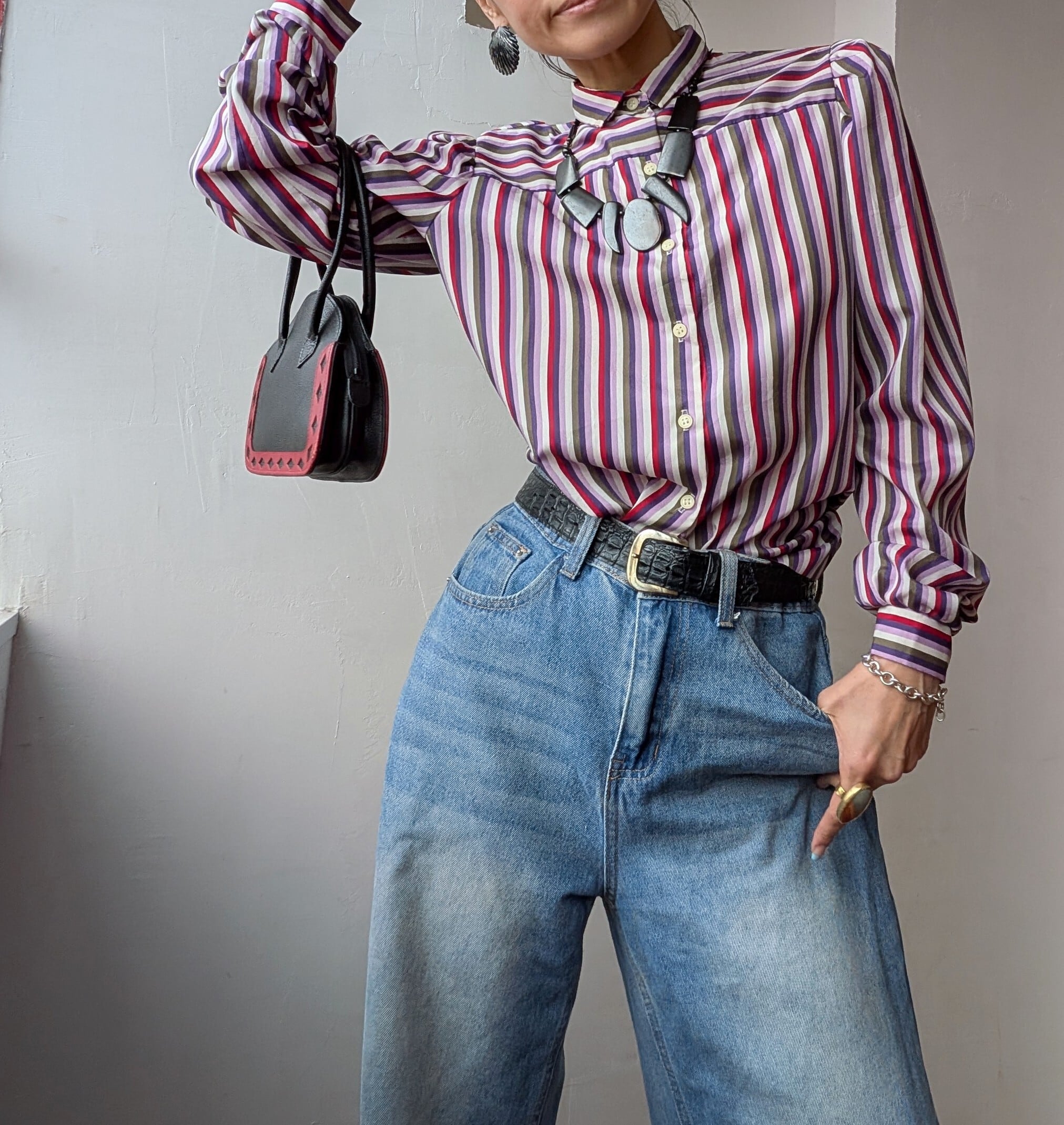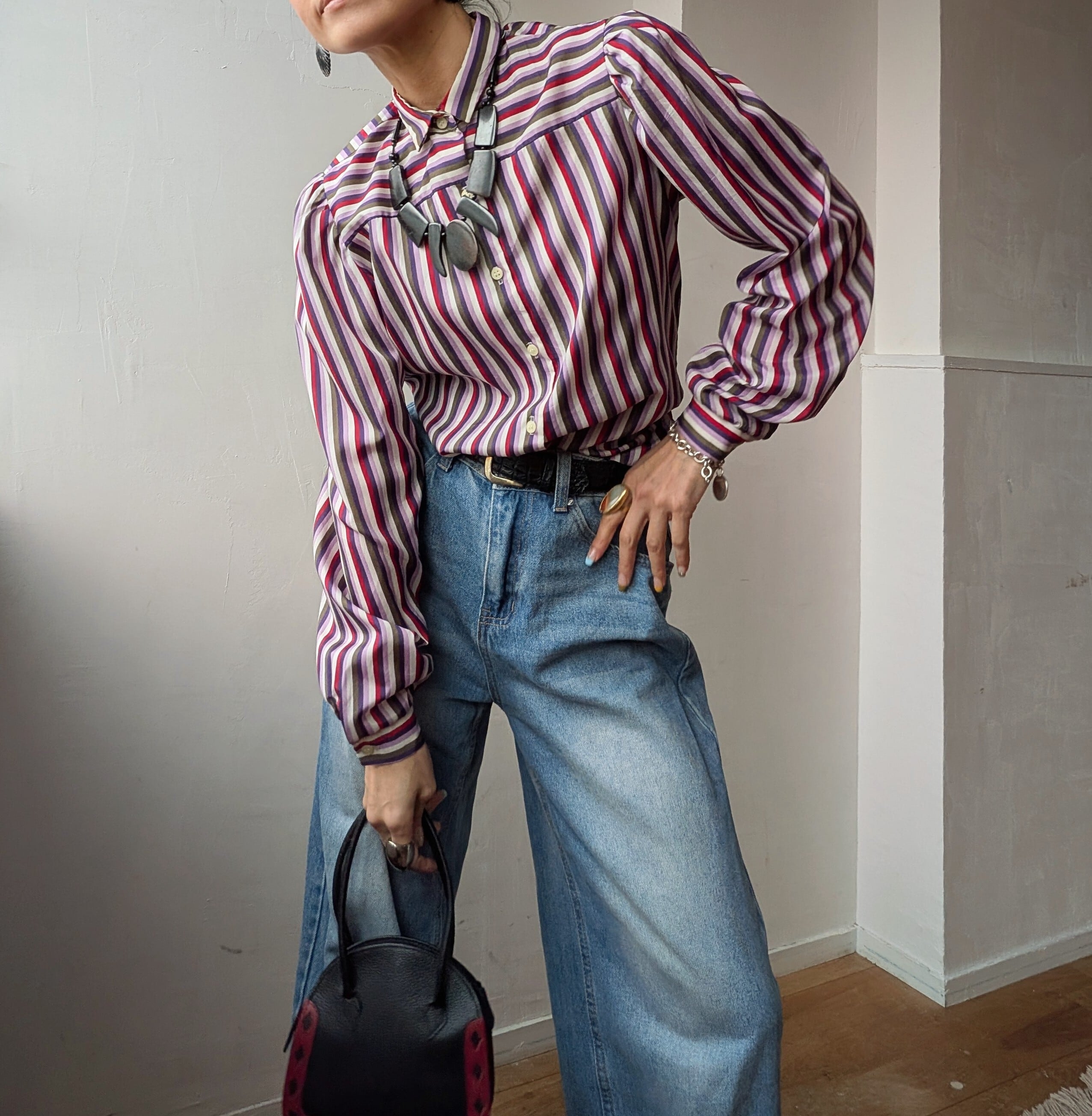 USA 80's vintage Puff sleeve stripe blouse