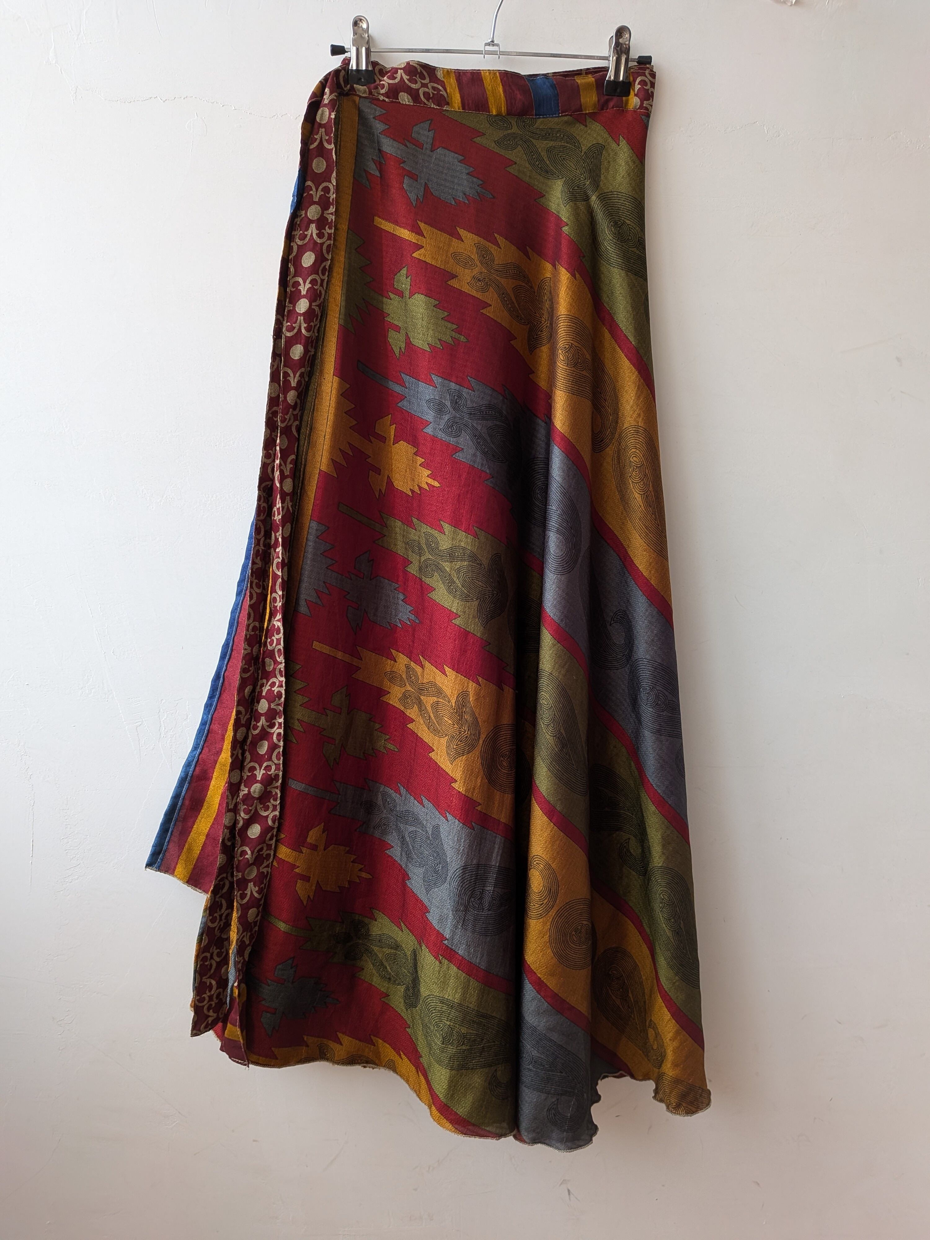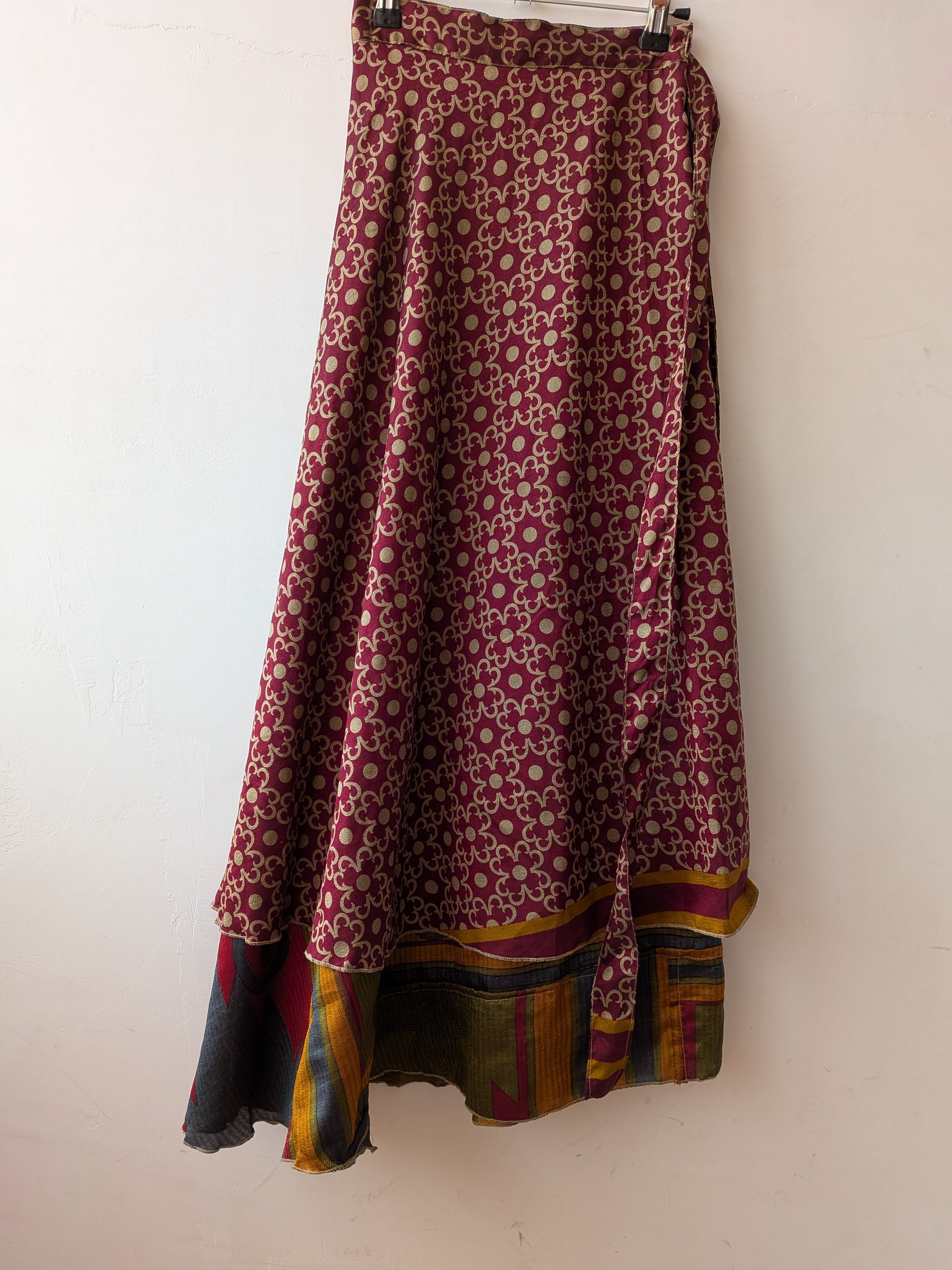 Vintage silk100% Remake surly Reversible wrap skirt/bordeaux×paisley