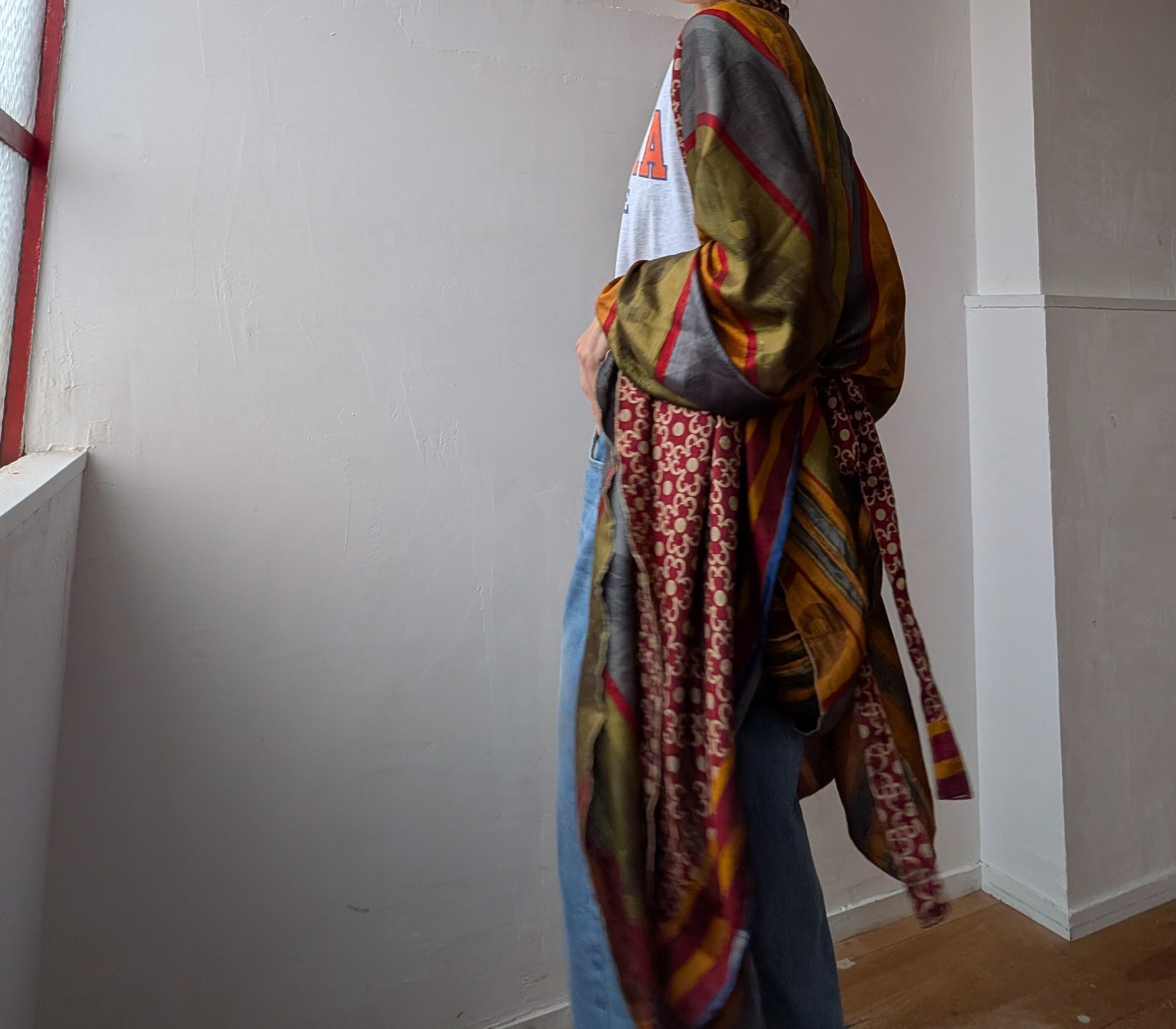 羽織のように着用するスタイルです。