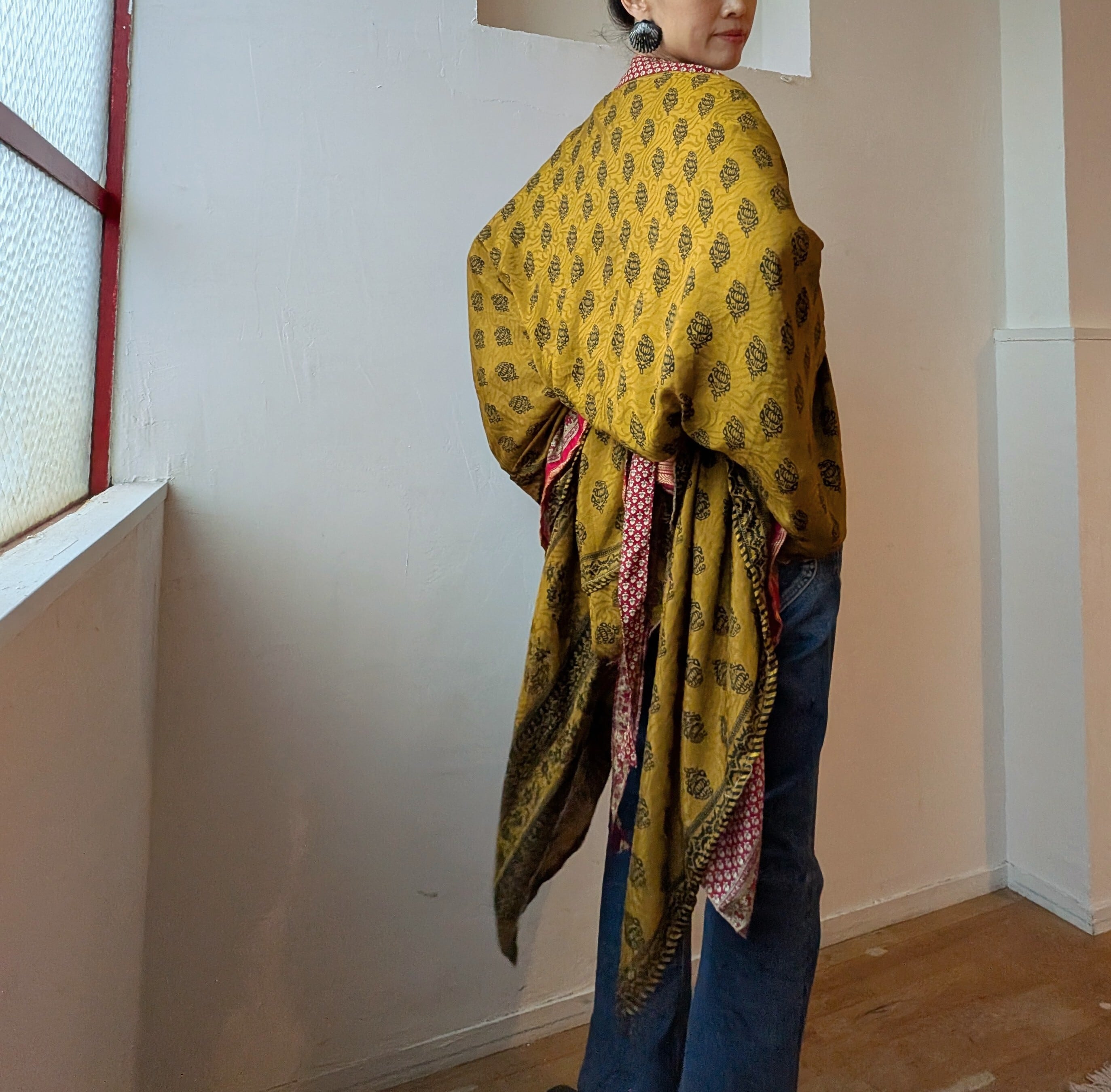 こちらはvintageサリーをリメイクしたお品となり、1点1点手作業で作られているため、生地にほつれなどがある場合があります。