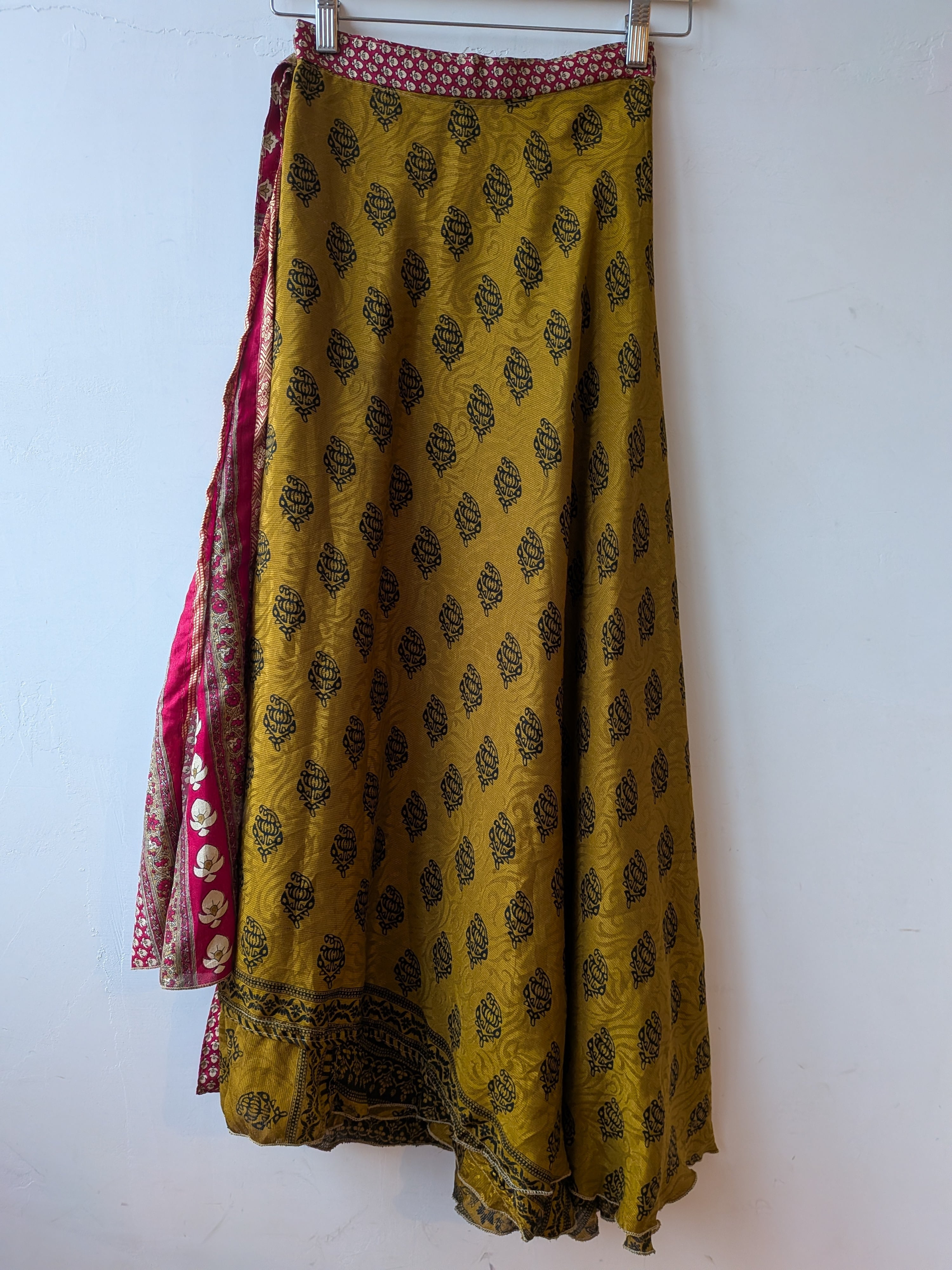 vintage silk100% Remake surly Reversible wrap skirt/mustard×red