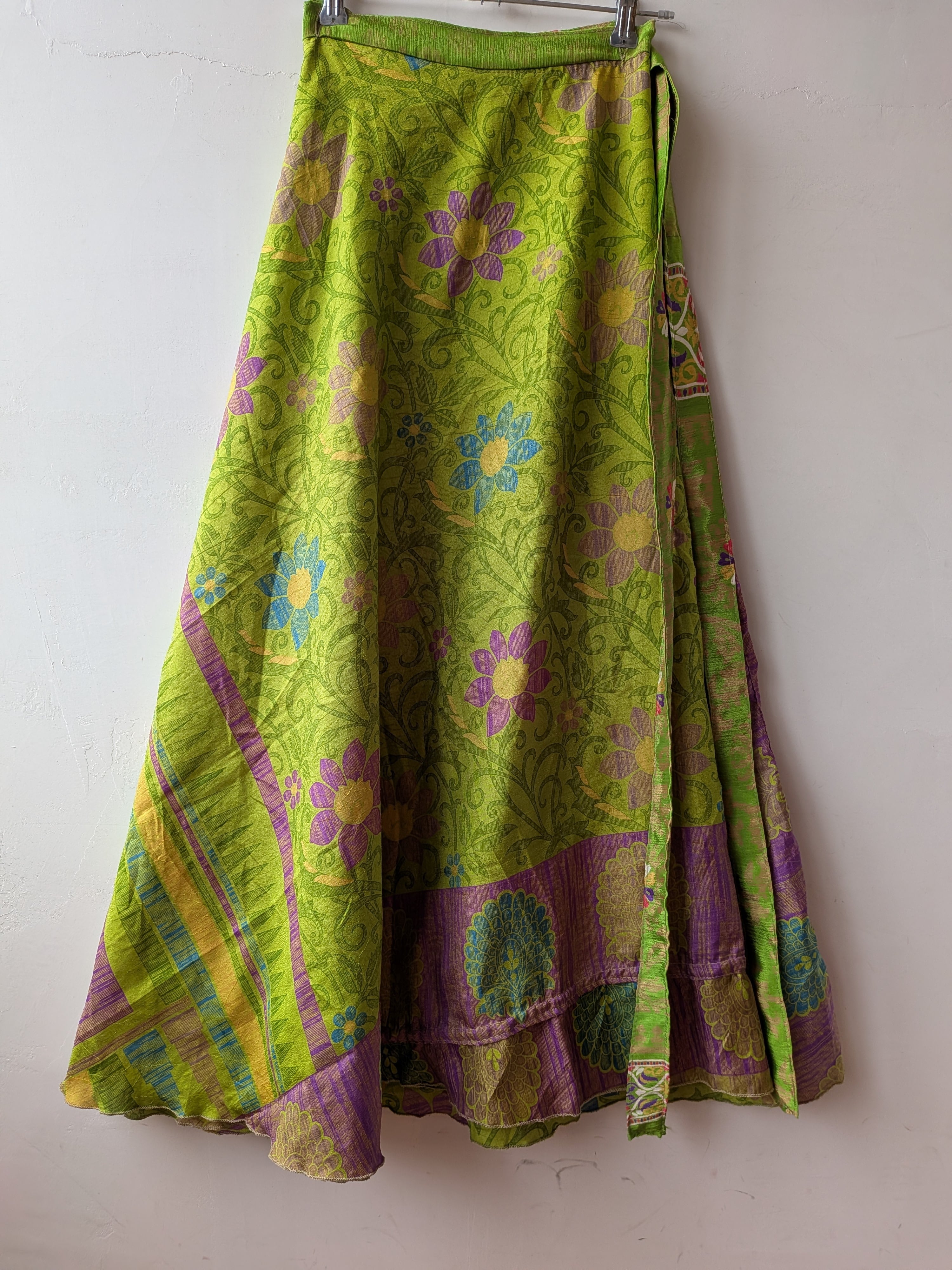 Vintages ilk 100% Remake surly Reversible wrap skirt /Lime×Purple