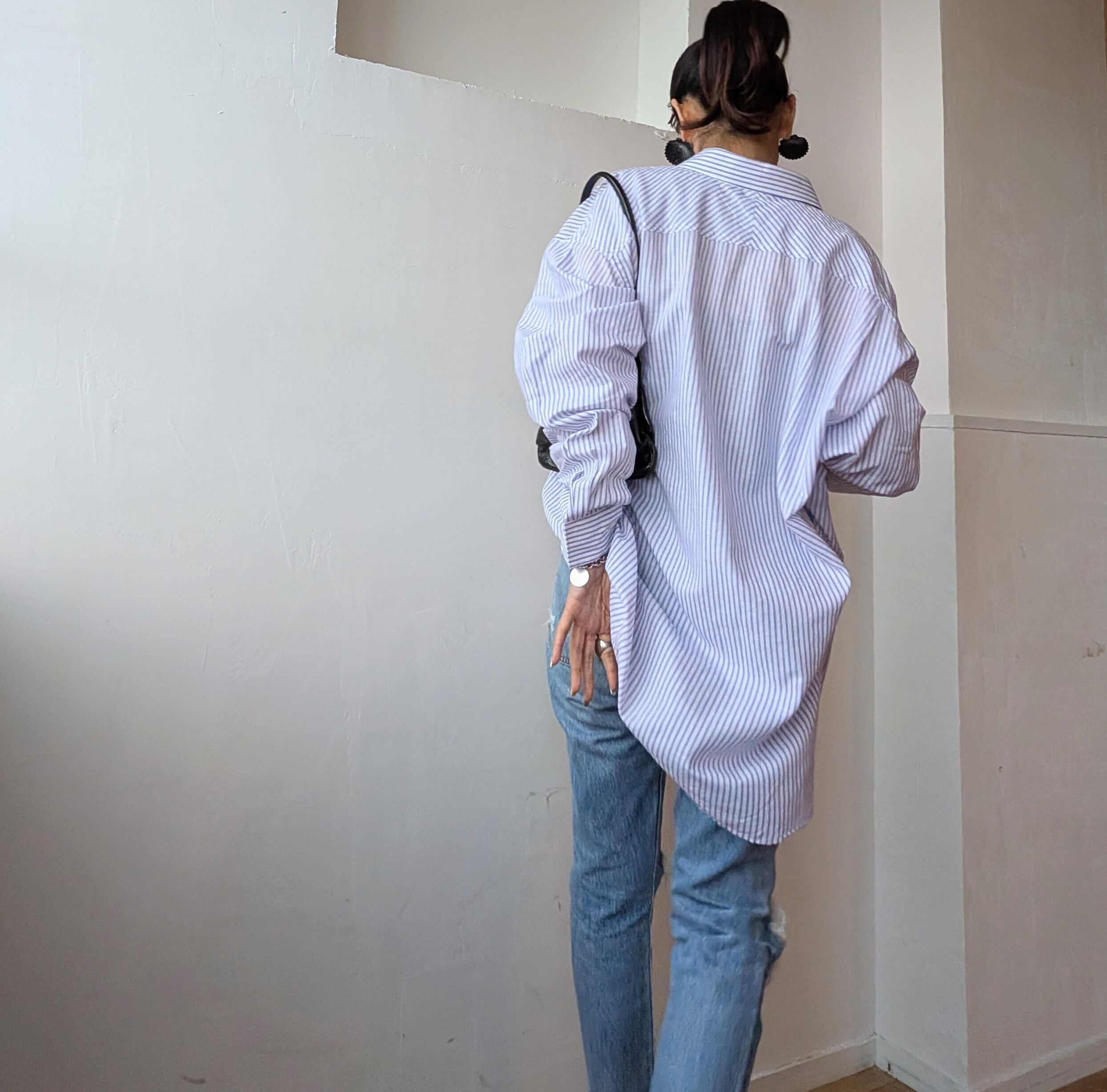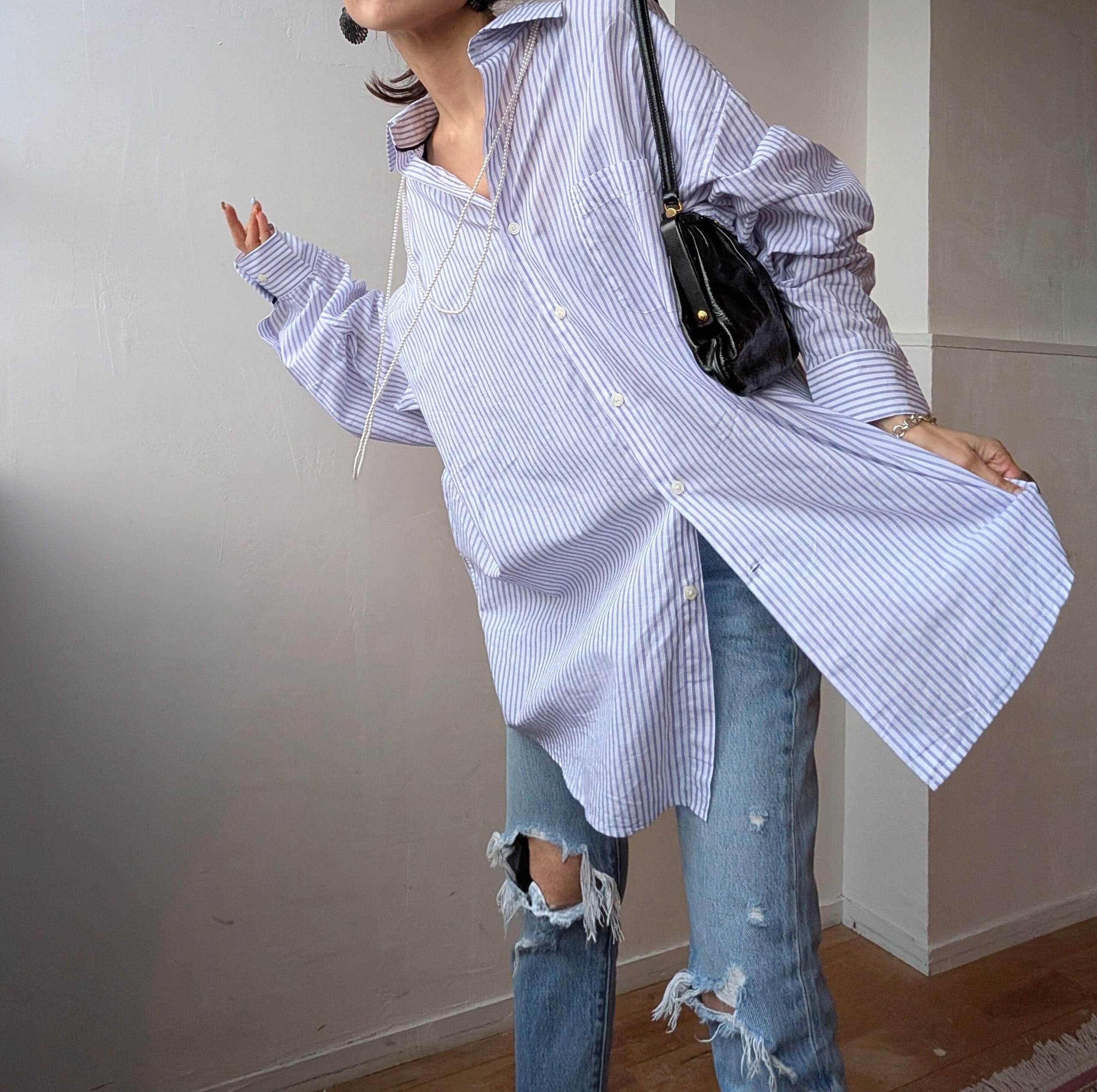 USA Cotton linnen Purple stripe shirt