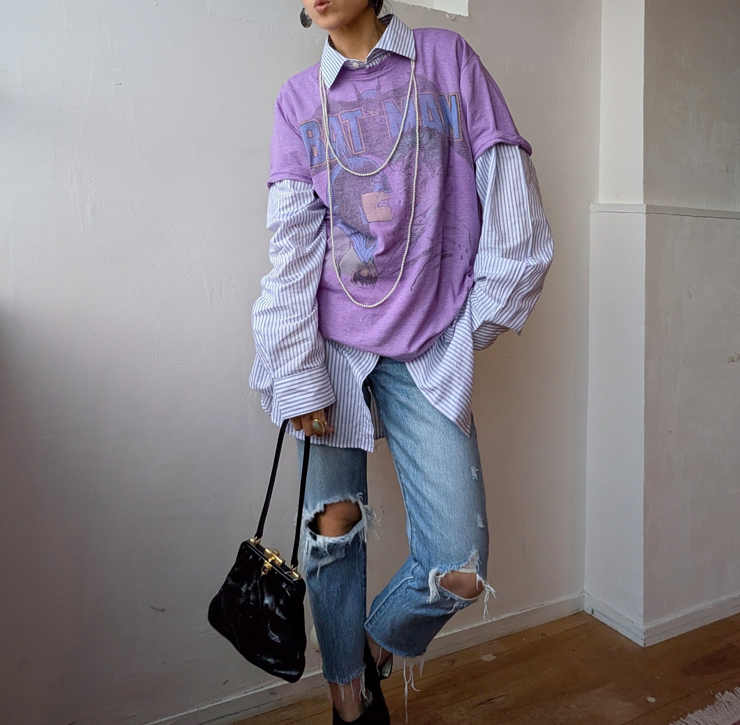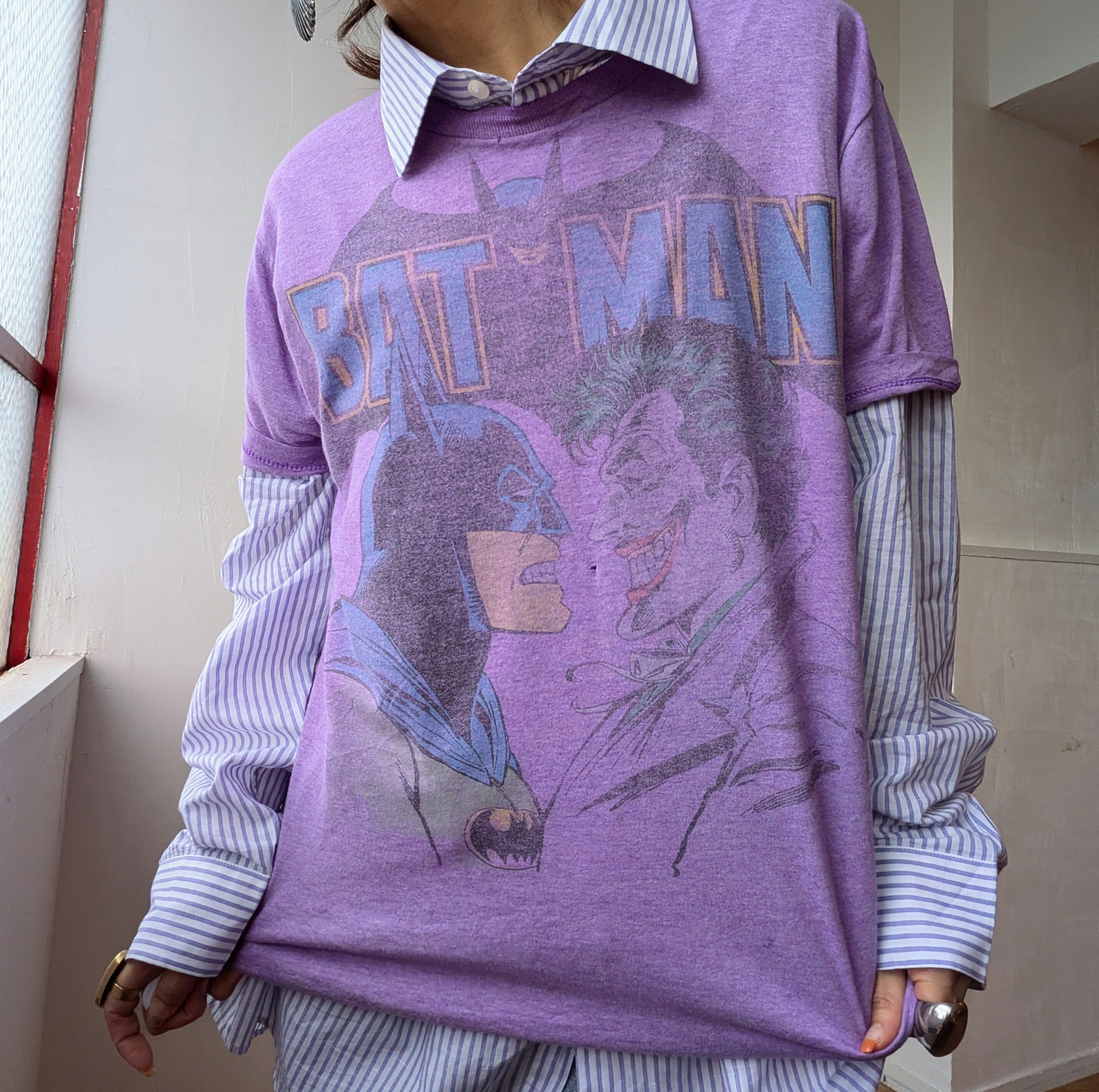 ラベンダーカラーとフロントのBadman&Joker がかっこいいアメコミvintageTシャツ。