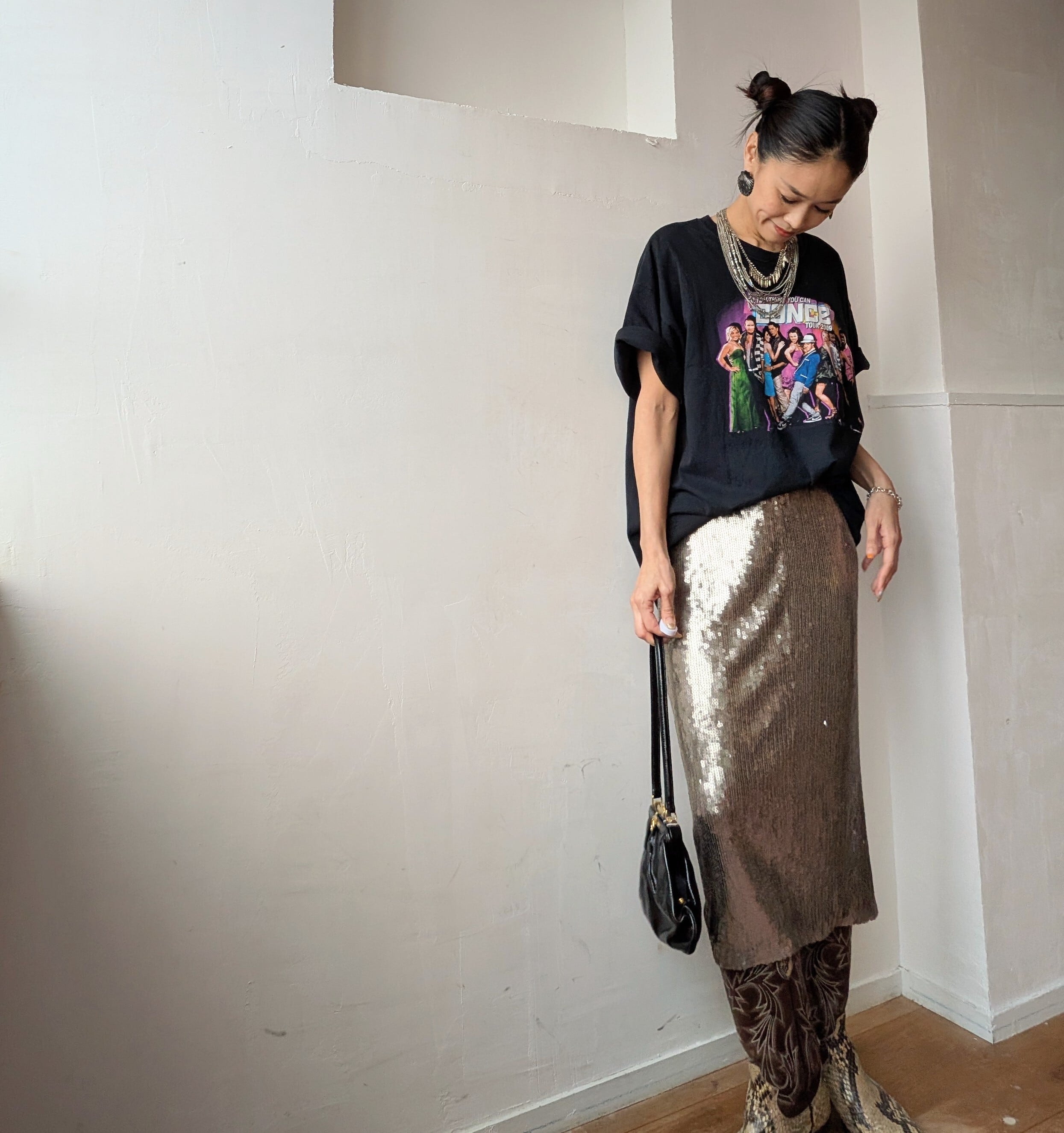 ブラックボディに映えるUSAのレトロな雰囲気がどんなボトムを併せてもおしゃれにキマル1点です!