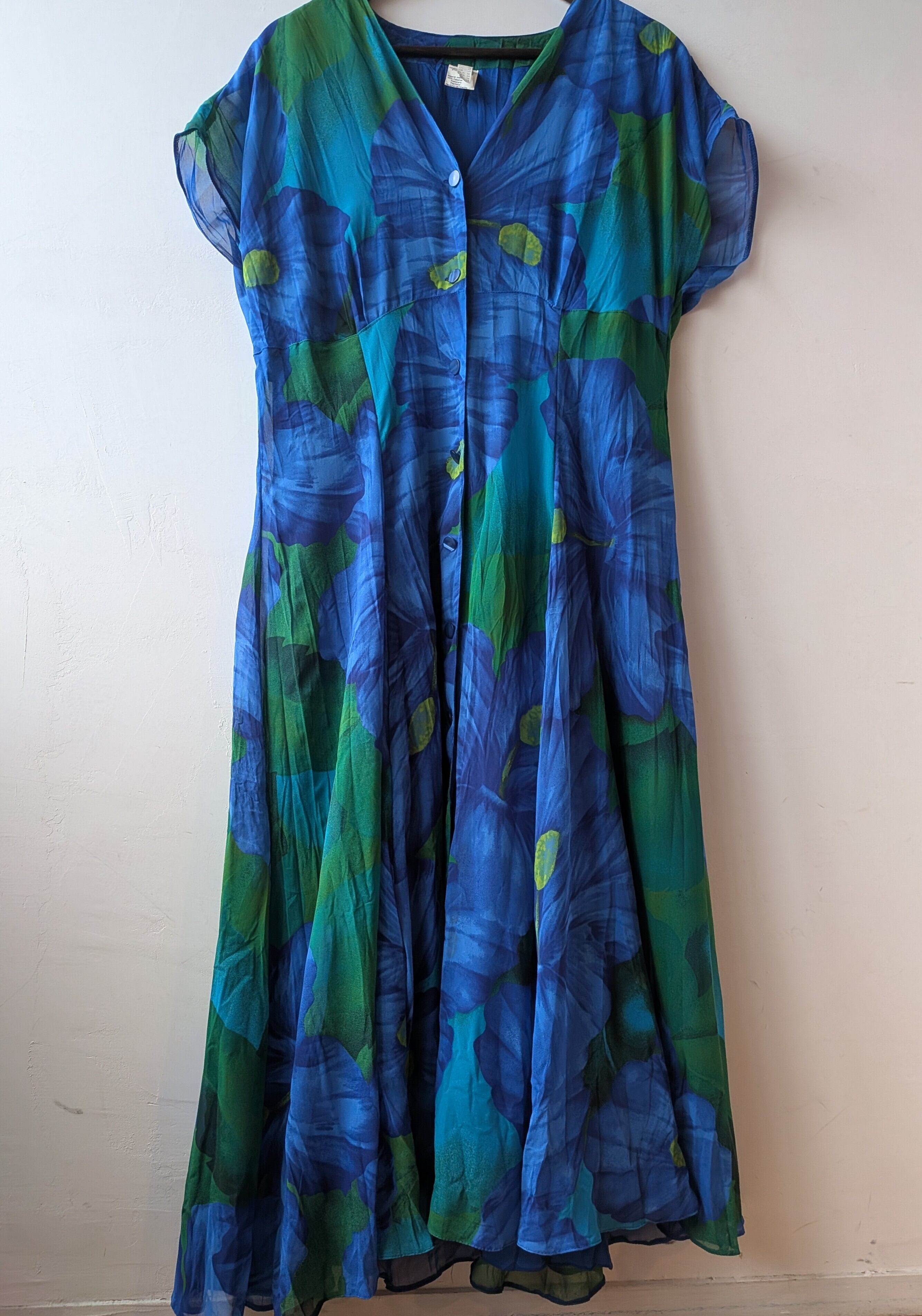 美しい花柄と、ふんわり揺れる柔らかな素材感が魅力的なシフォンワンピース。