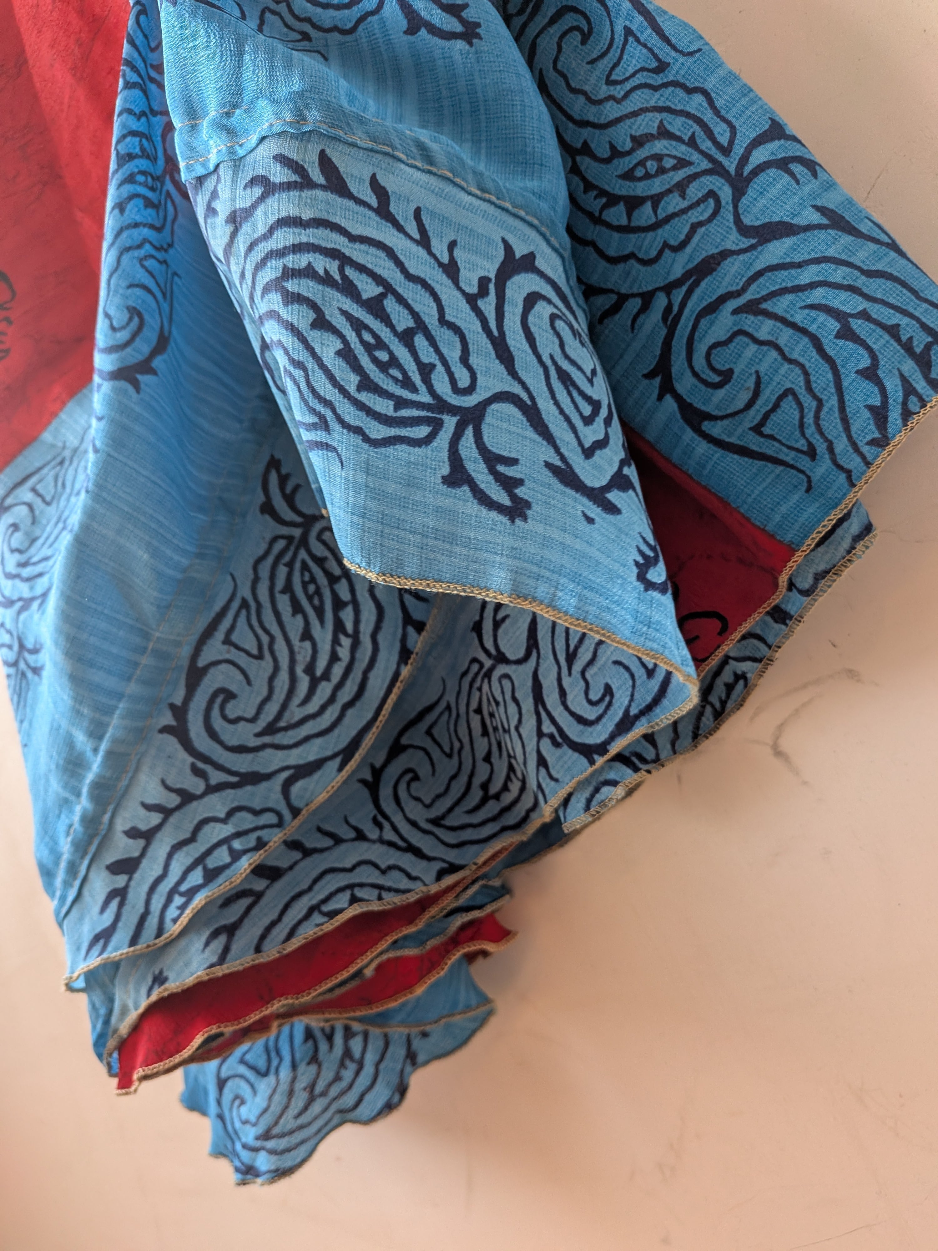 こちらはvintageサリーをリメイクしたお品となり、1点1点手作業で作られているため、生地にほつれやなどがある場合があります。