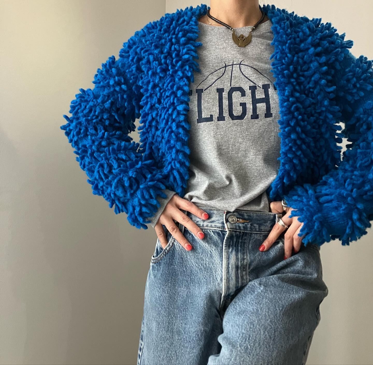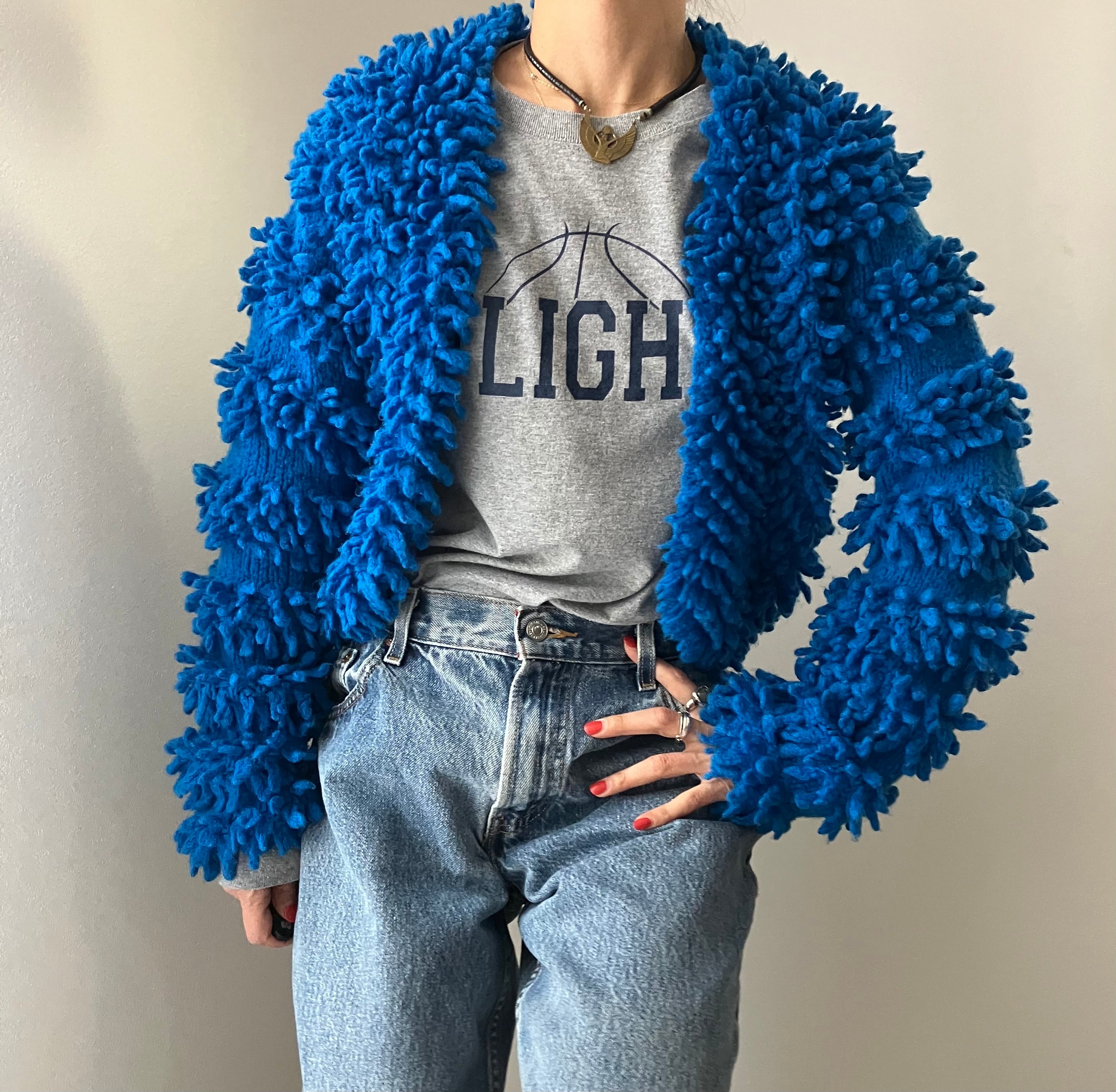 Vintage blue wool knit cardigan
