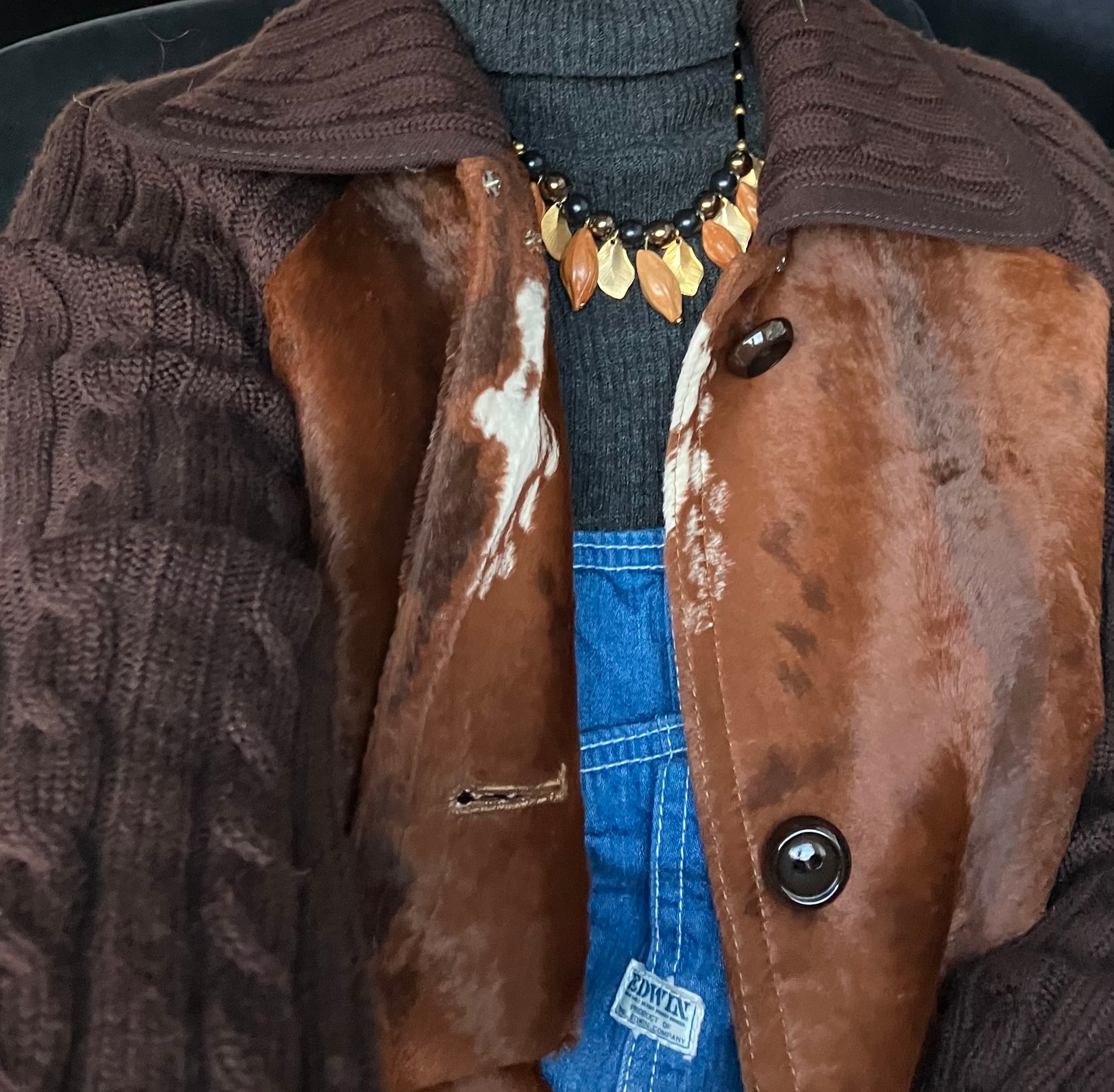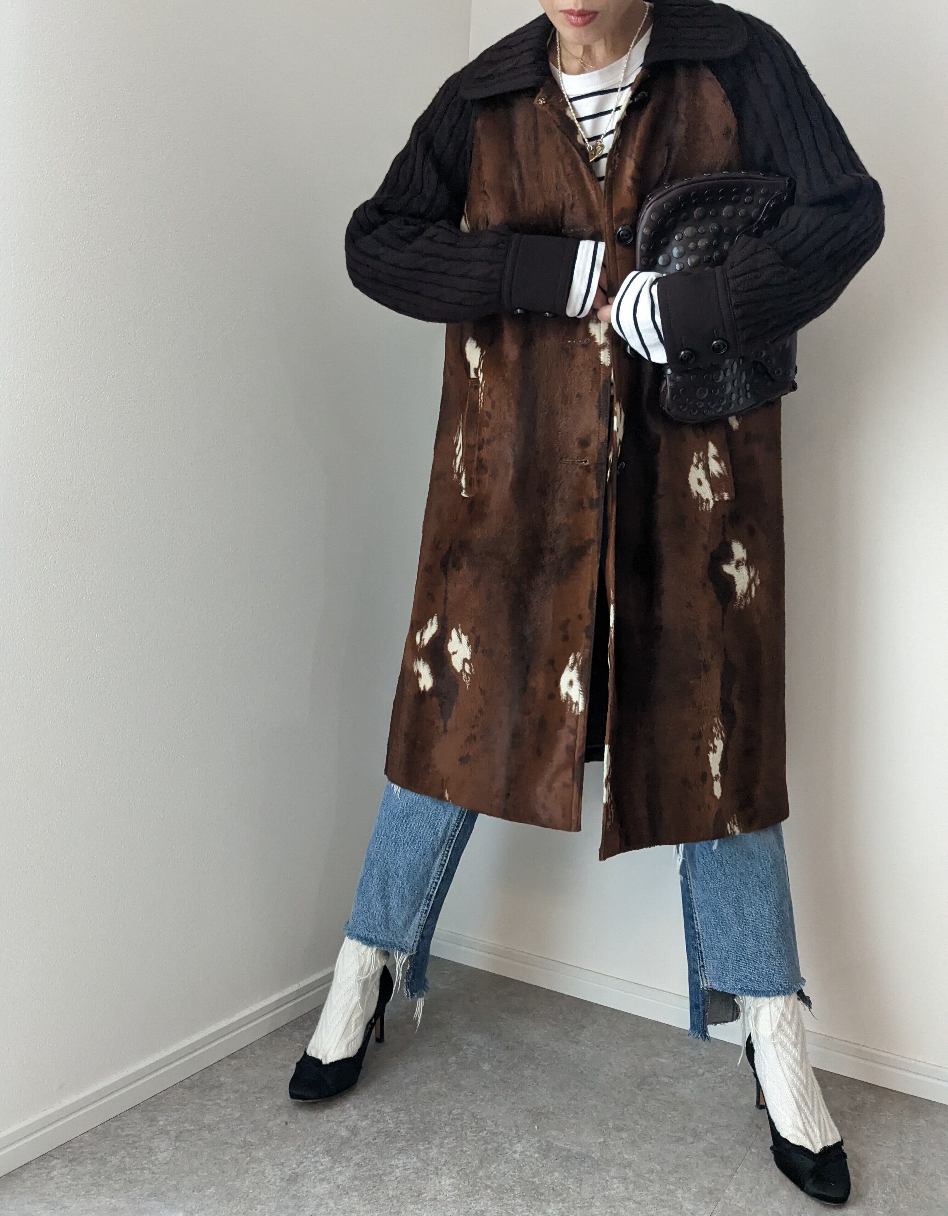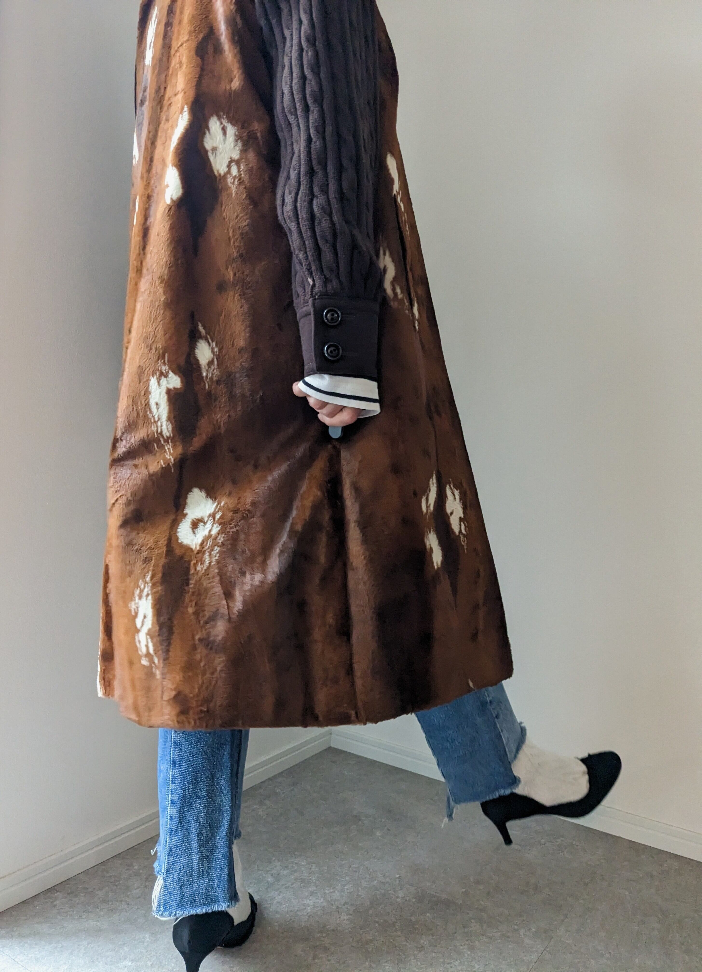 deer skin 柄のfar coatです。