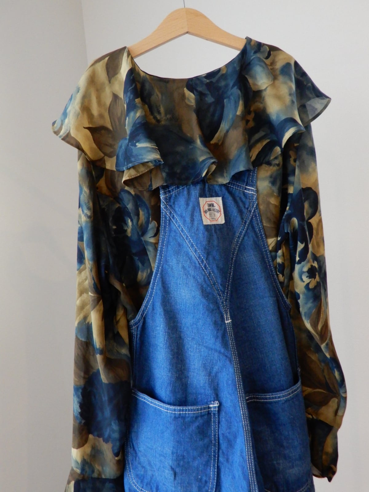 大きめのフリルカラーと水彩画のようなフラワーペイントが素敵なシフォンブラウスです。