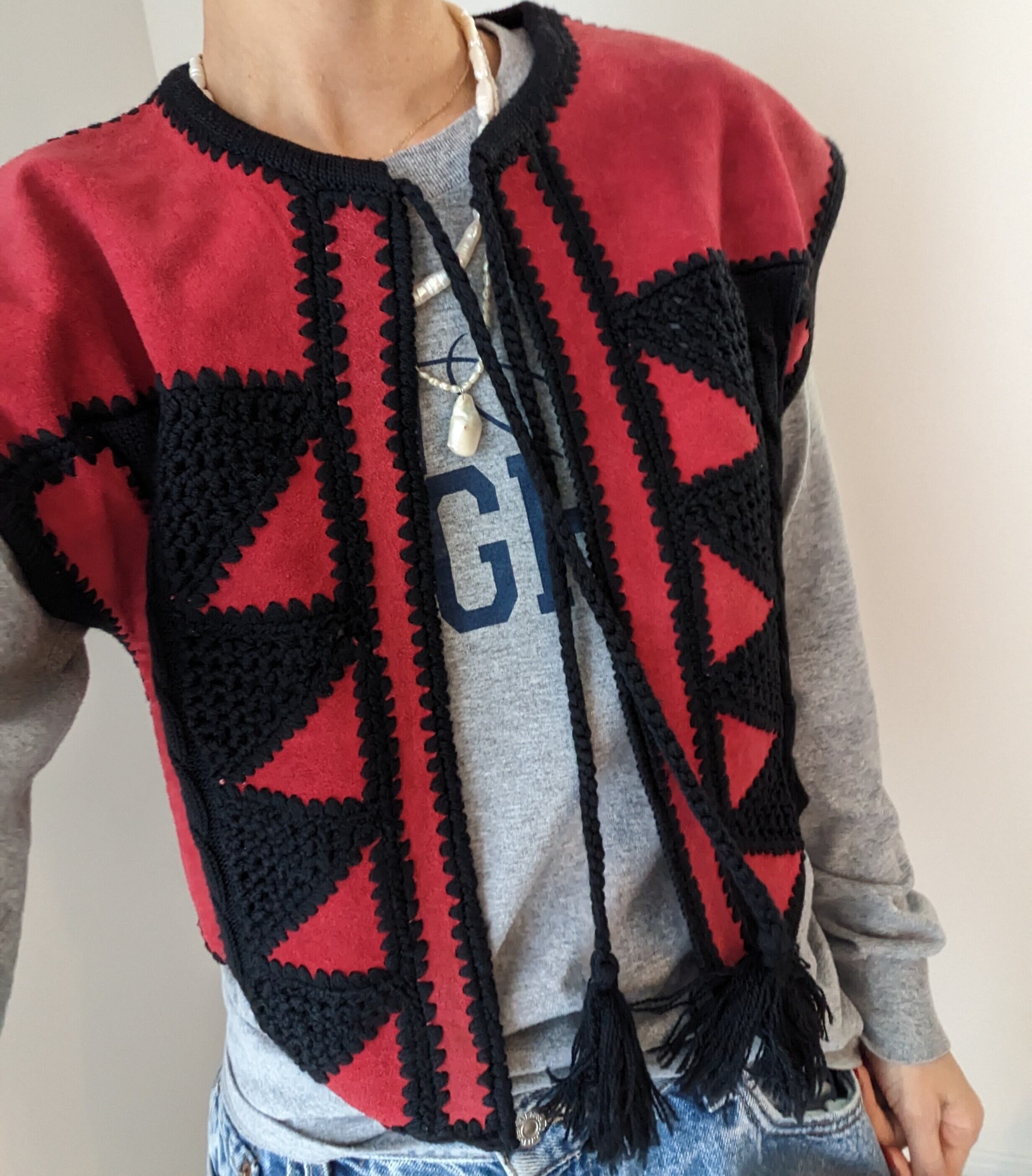 Patchwork leather knit vest