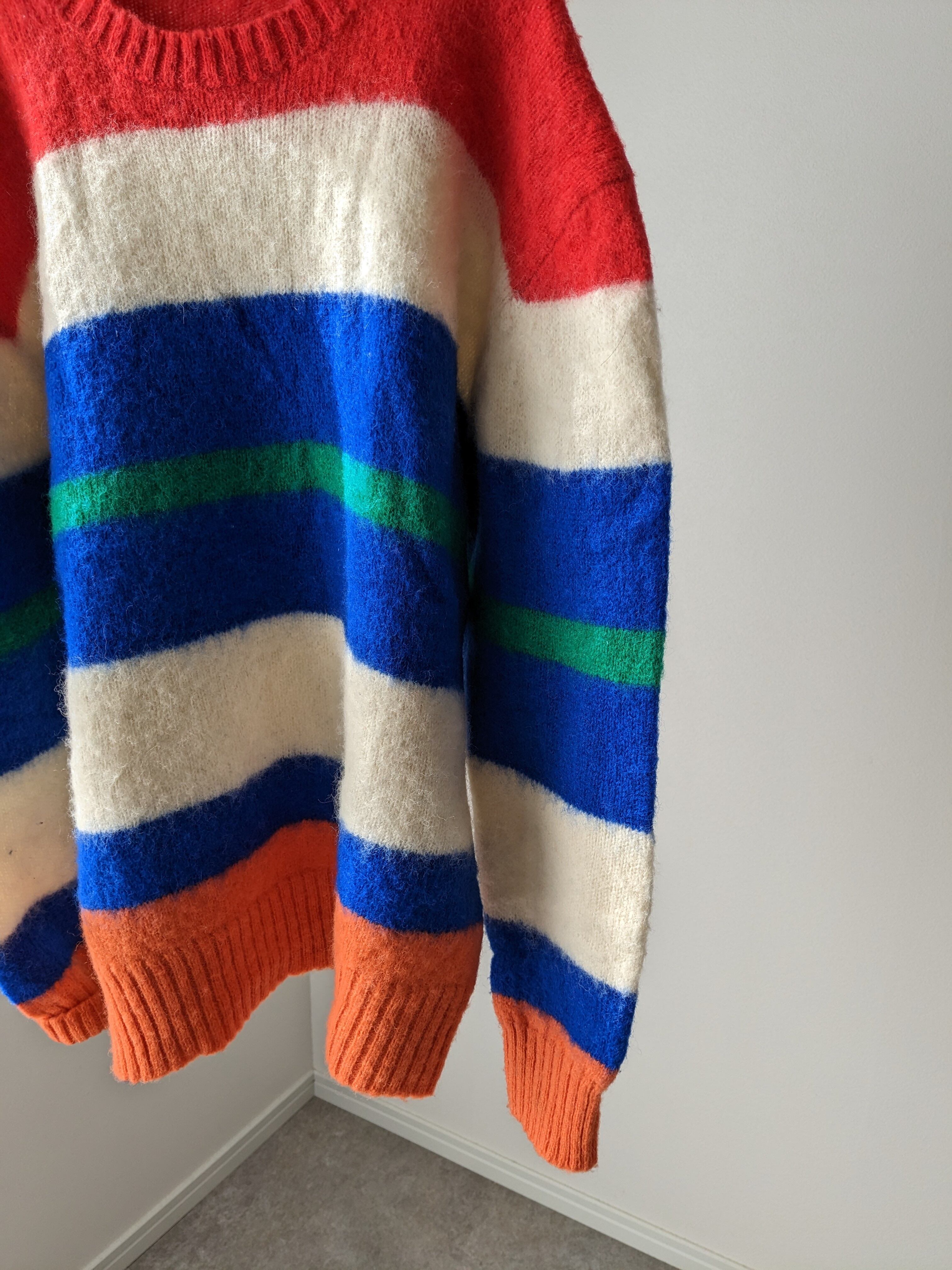 明るいお色味のボーダーがかわいいニット。
