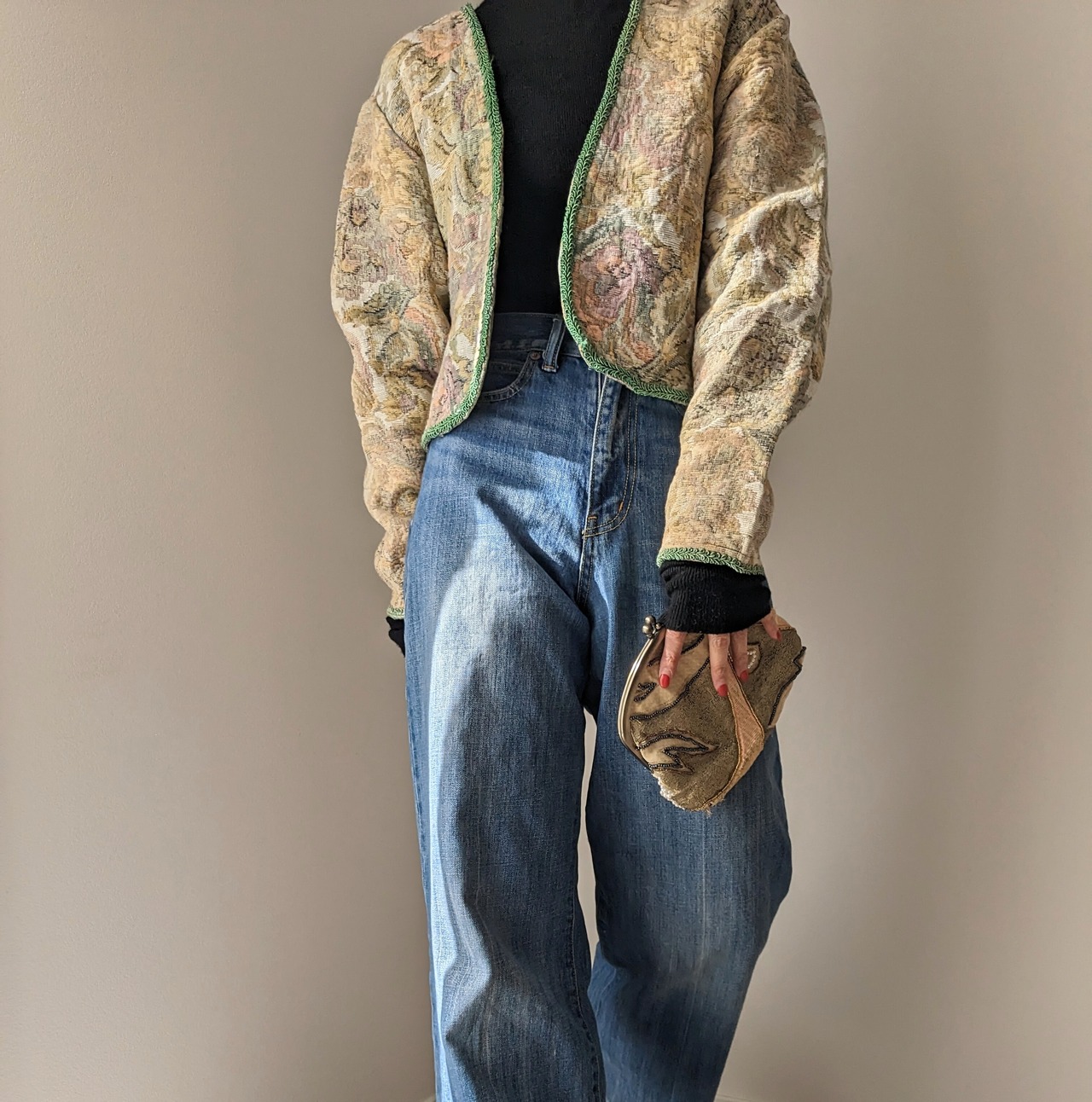 淡いお色のゴブラン織りが素敵な薄手ジャケット
