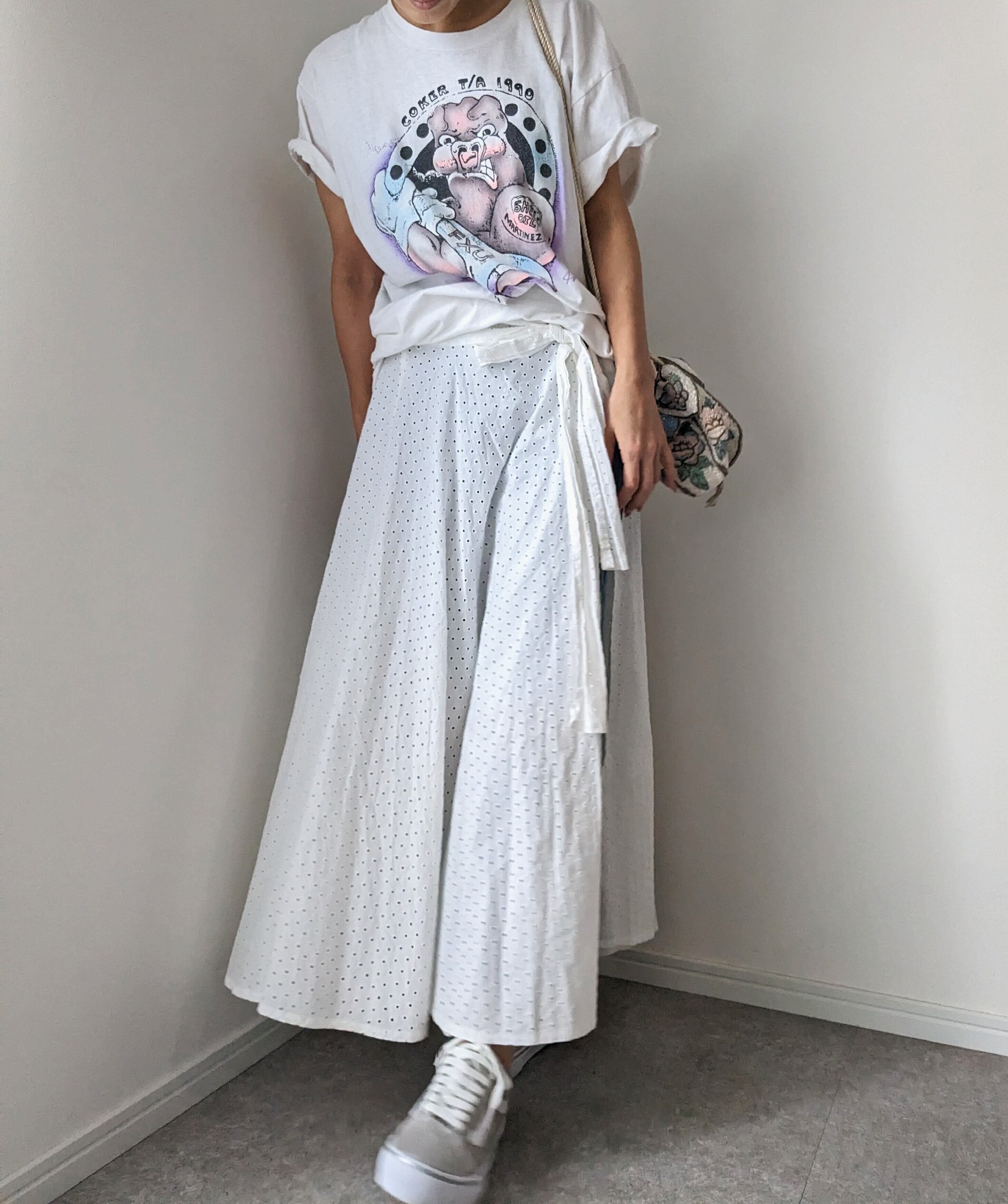 1枚で着用とゆうよりは、デニムやショートパンツ、ユルパンツやワンピースの上から重ねていただくスタイルのスカートになります。