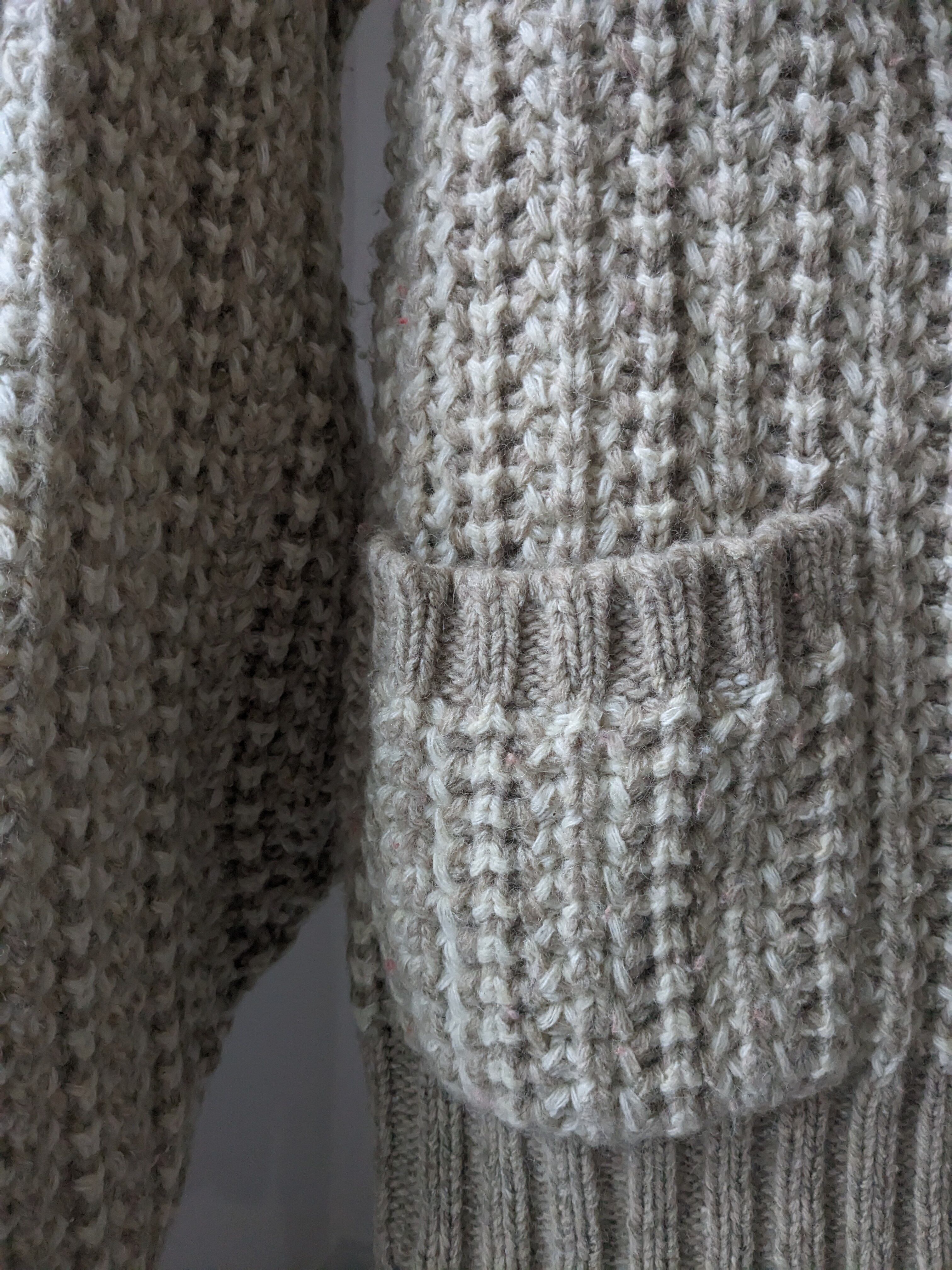 ざっくりと編みけ込まれたミックスニットが素敵なショールカラーカーディガンです。