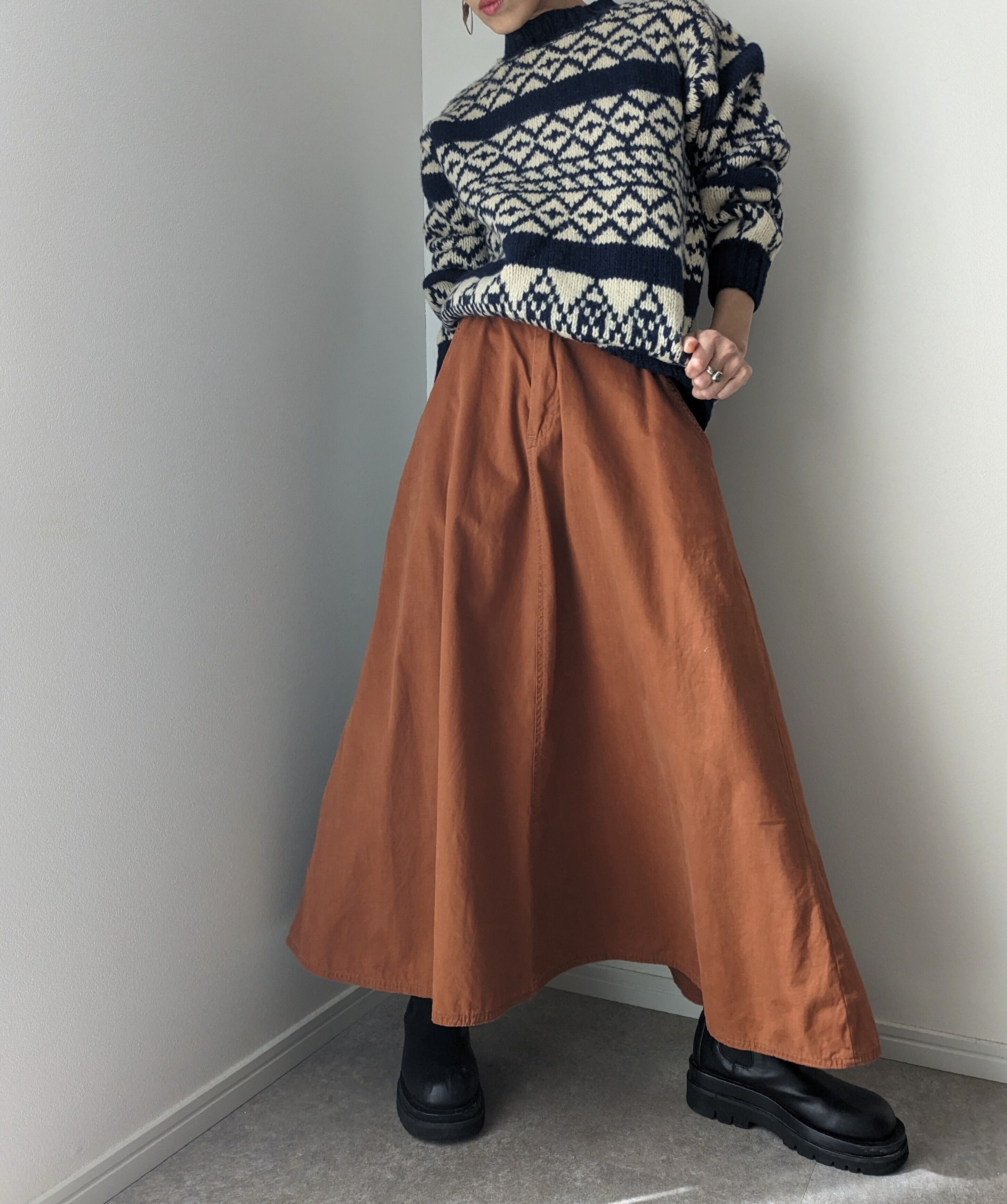 ロングワンピースの上から、スカート、デニムと、大人カジュアルなコーデにぴったりです。