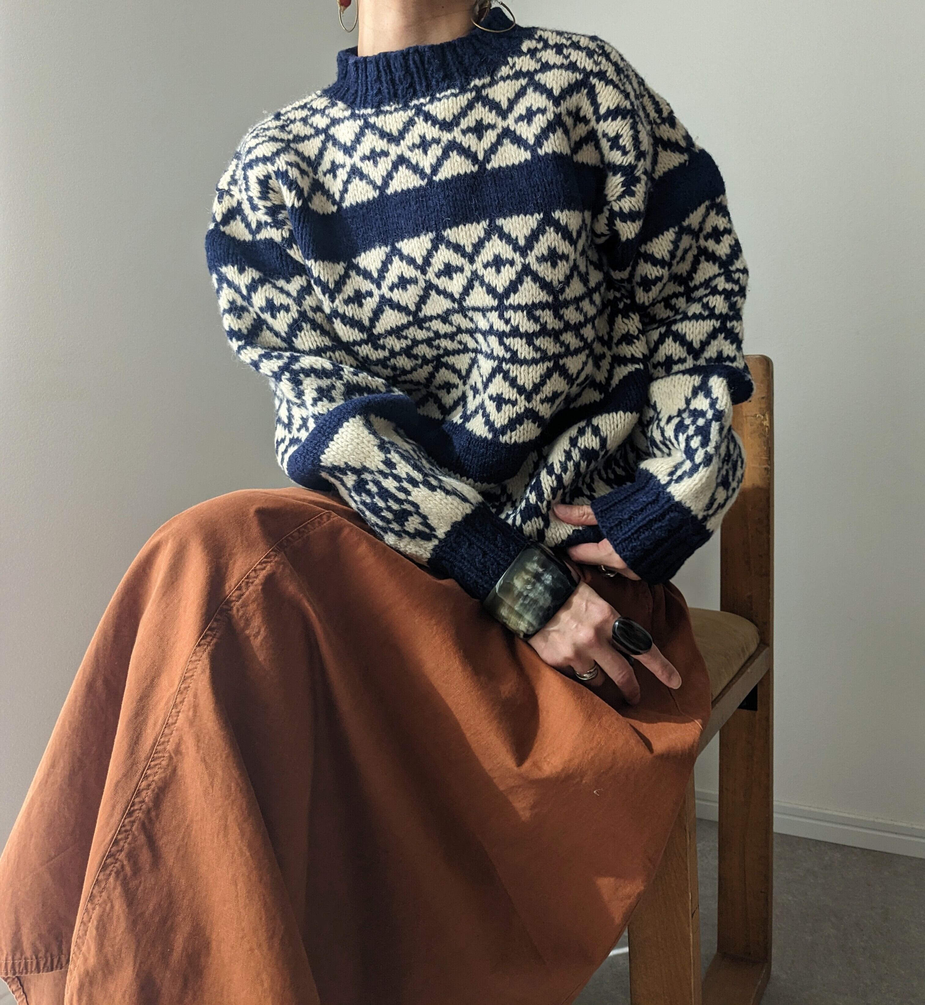 アーガイルのようデザインが可愛らしく、落ちついたネイビーカラーもいろんなコーデにあわせやすくおすすめ。