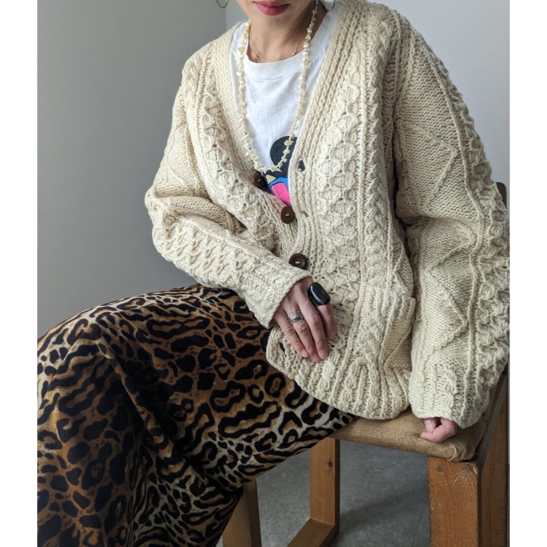 アイルランドの老舗ブランド、フィッシャーマンニットで有名なloch garmanのざっくりとしたピュアウール100%のローゲージ編みカーディガン。