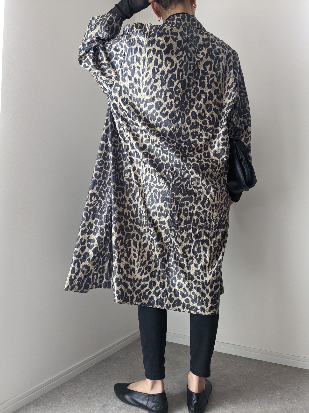 薄いナイロン地のレオパード柄スプリングコートです。