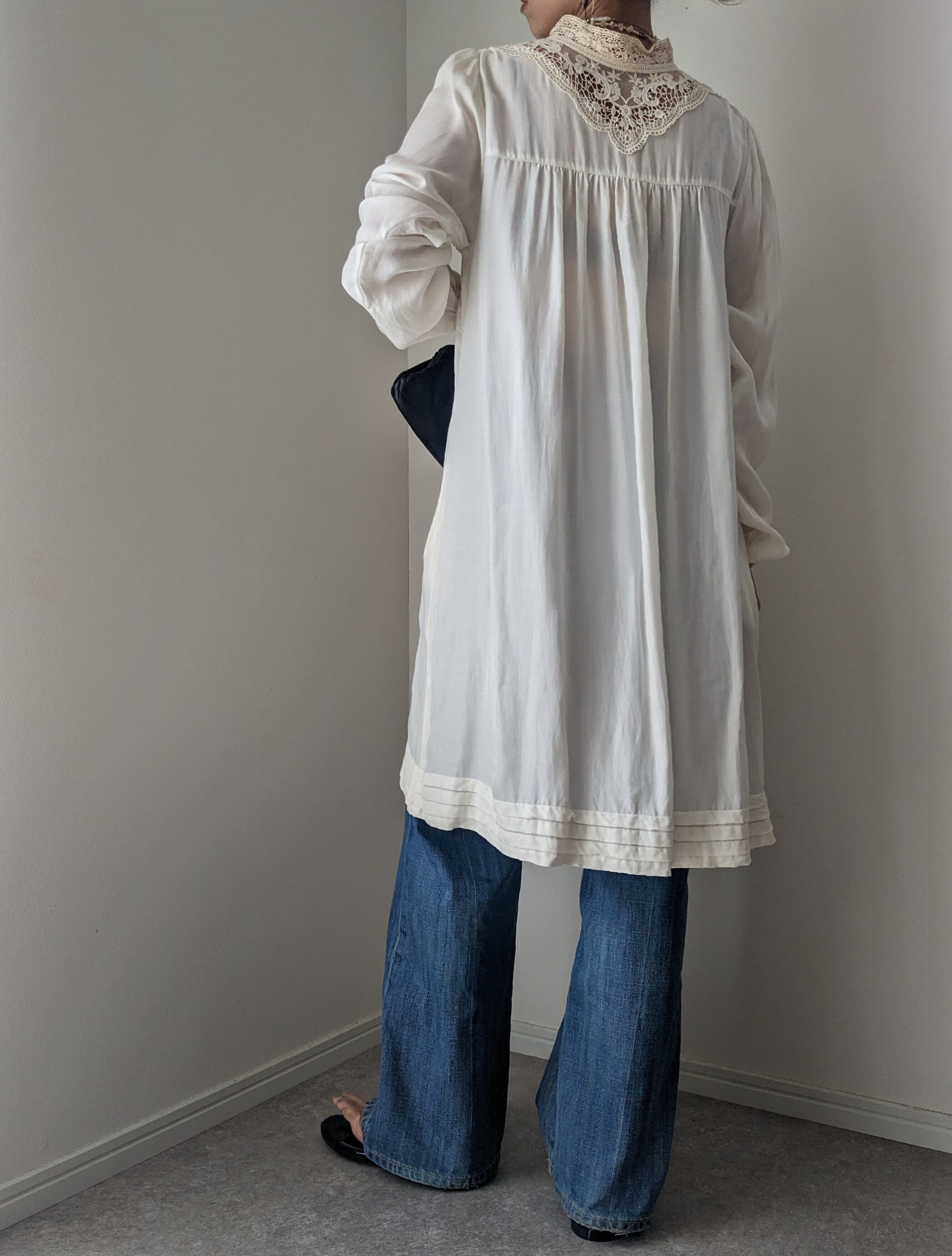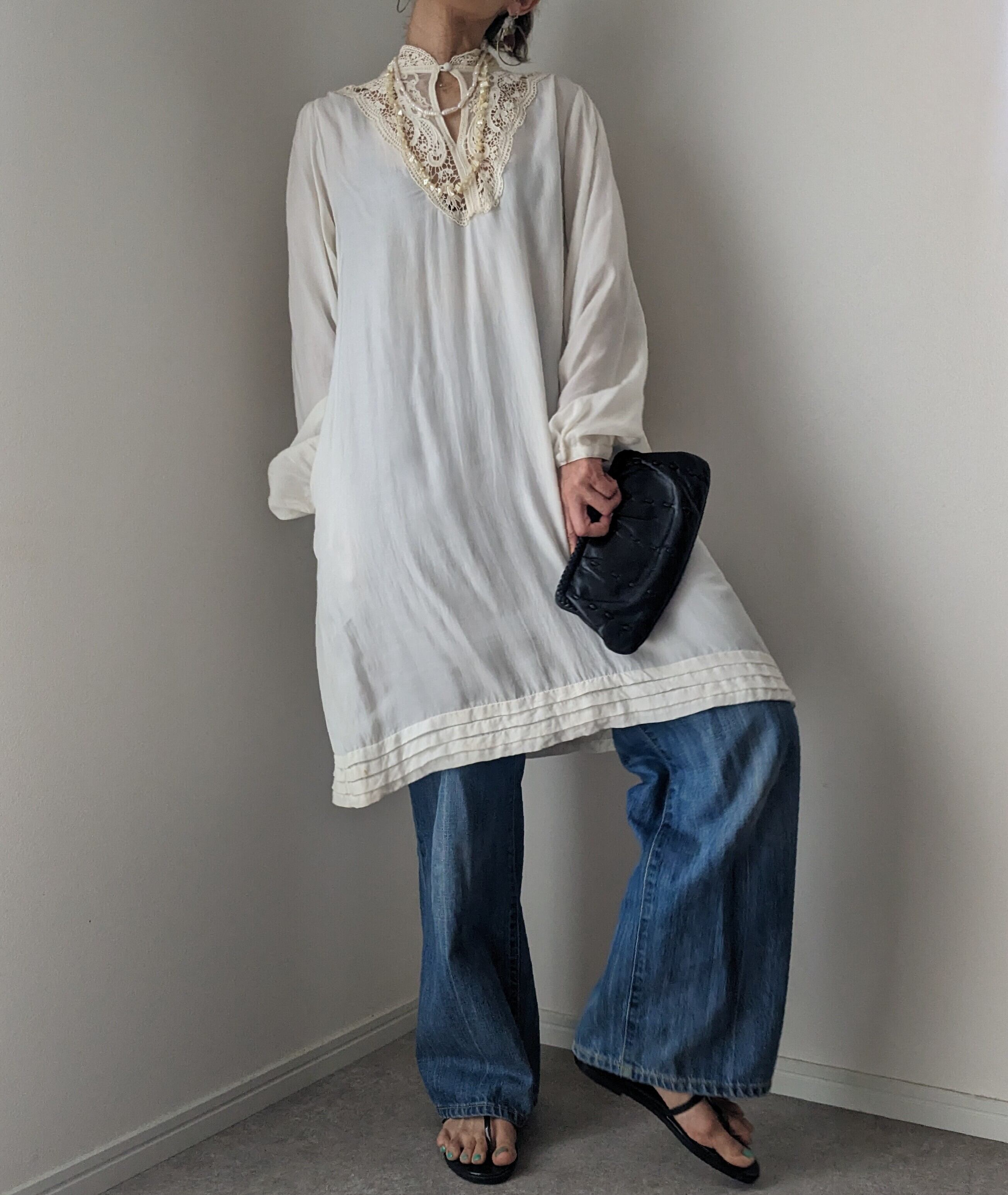 やや透け感がありますのでペチコートの着用や、レイヤードでのコーデがおすすめです。