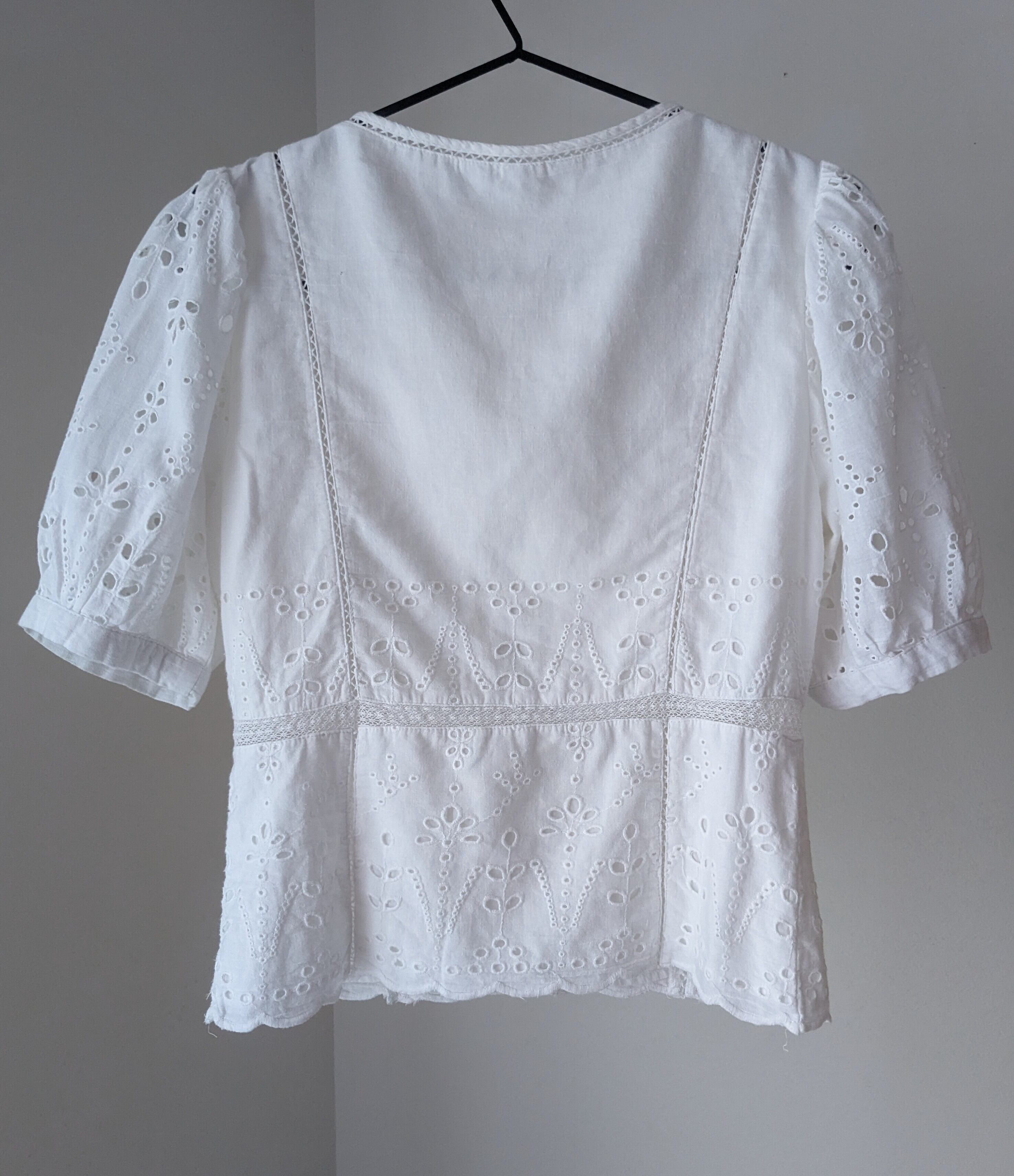 華やかなデザインと上品なレース使いが特徴のPuff sleeve cotton race blouseです。