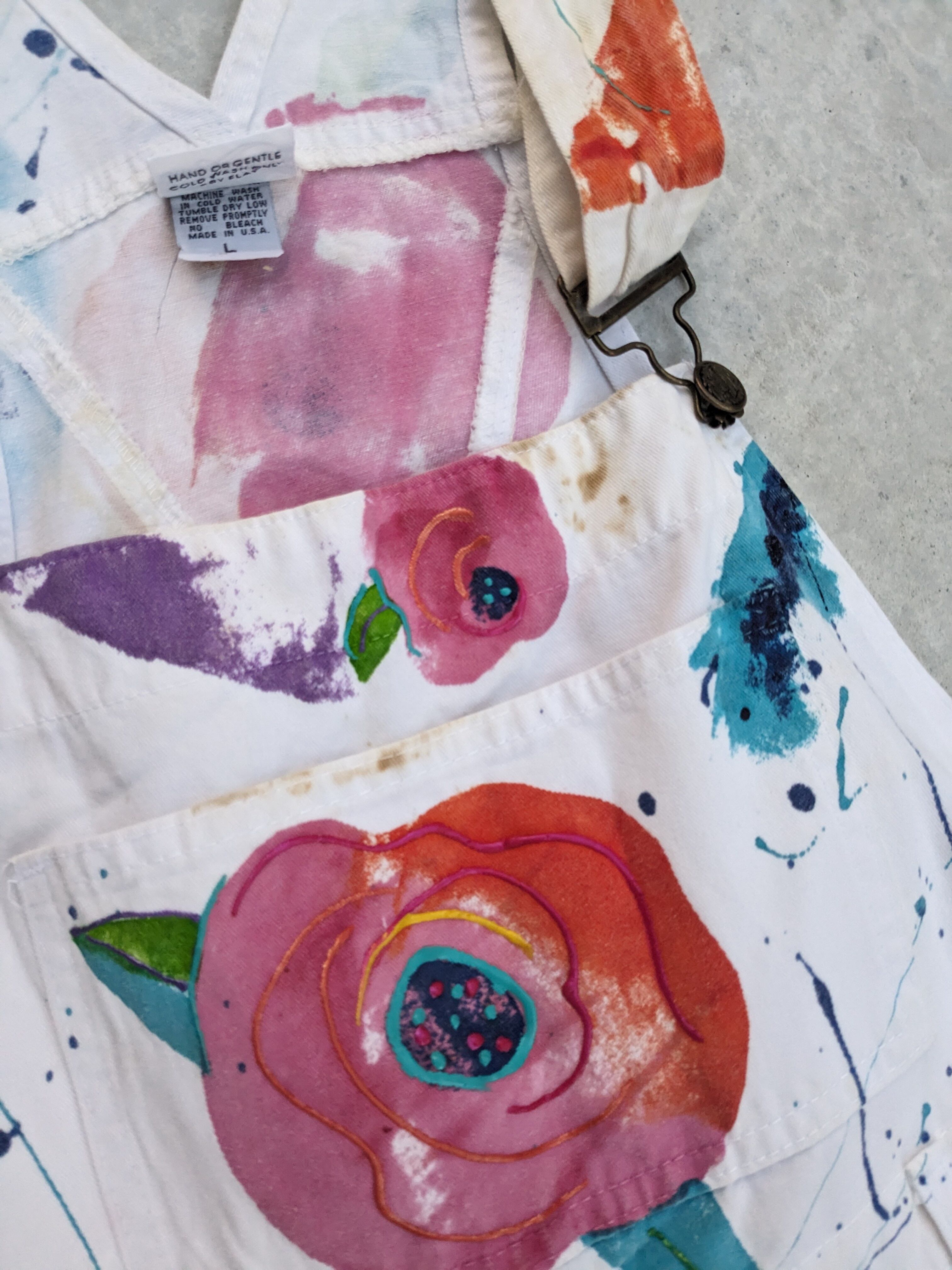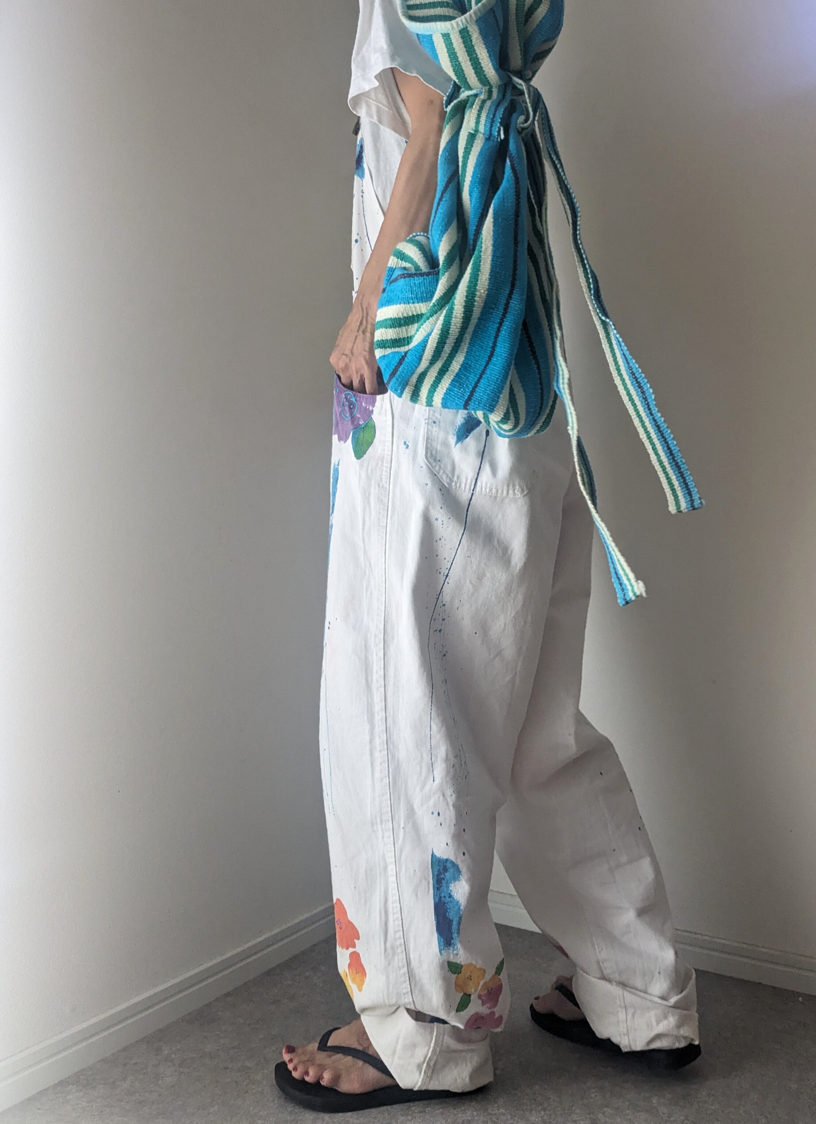 カラフルなUSAのビンテージペイントが特徴のオーバーオールです。ゆったりとしたサイズ感で、ラフな着心地。目を惹くカラフルなペイントデザインは、なかなかお目にかかれない一点もの。