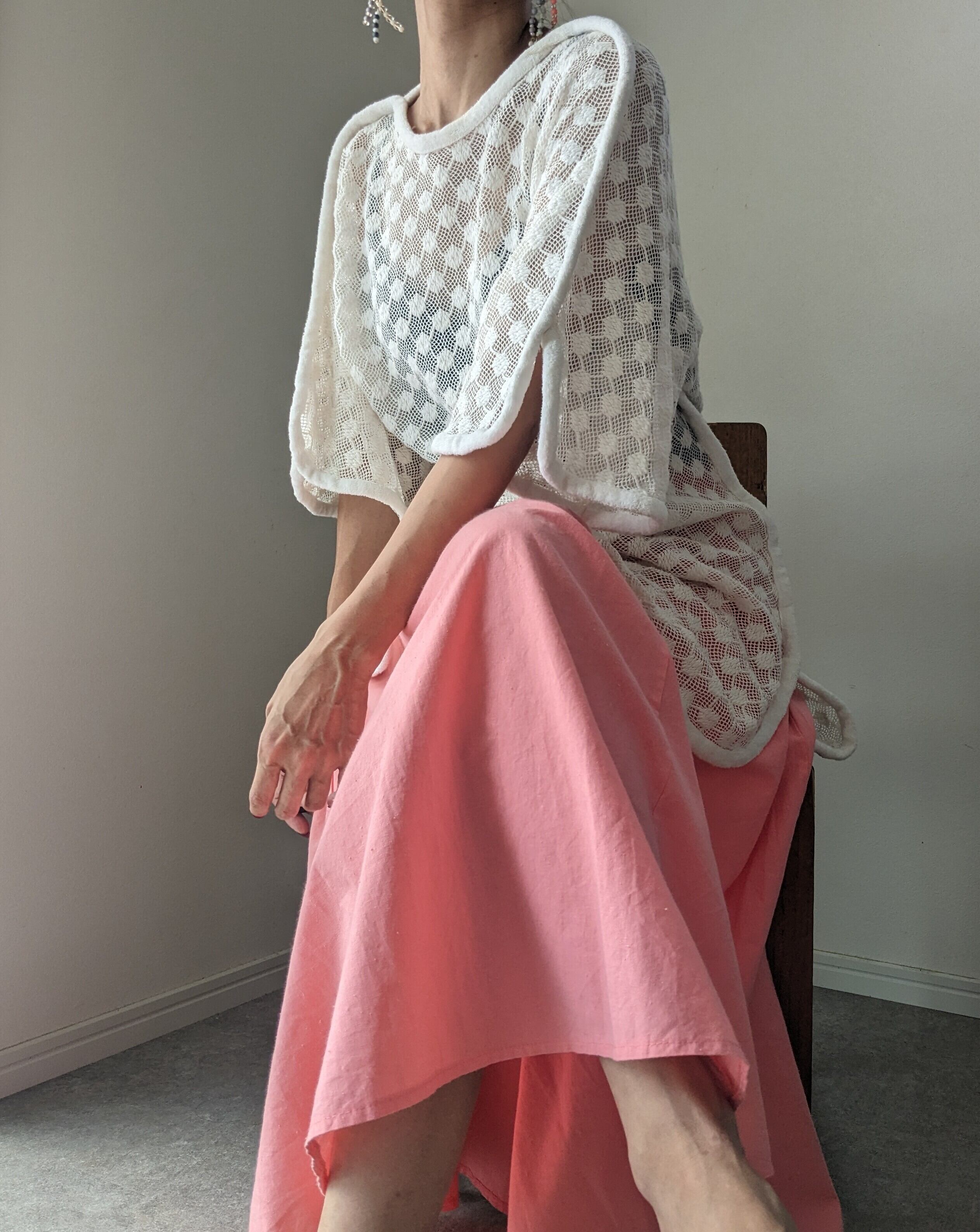 パイル地のパイピングとレースの組み合わせが、一際目を引くアイテムです。