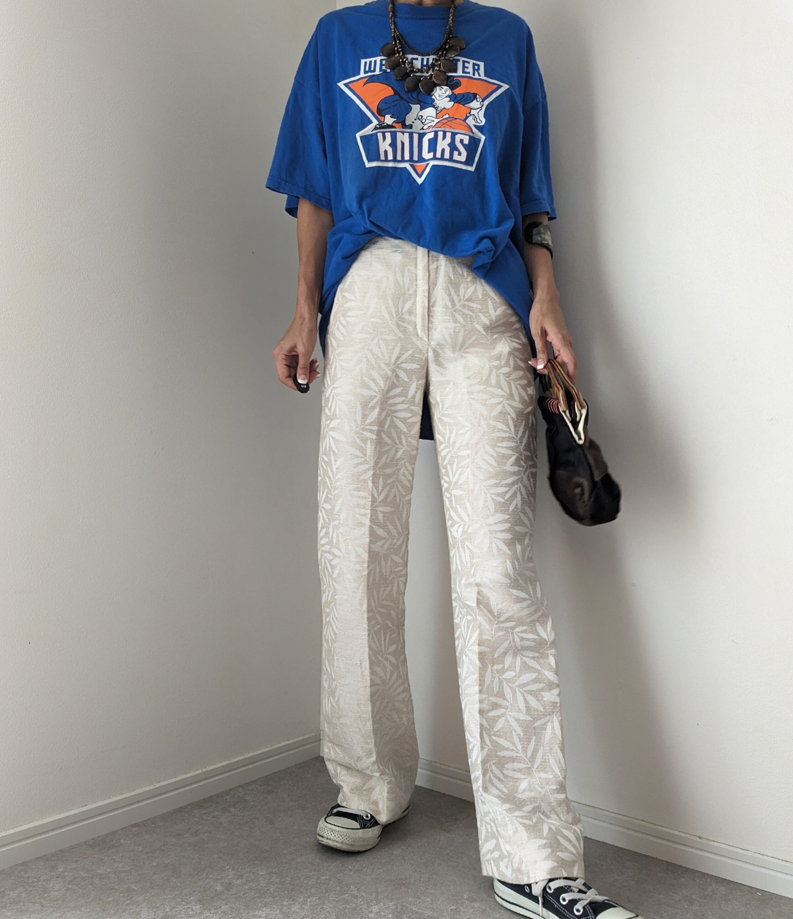 エレガントで高級感溢れるEuro embroidery satin Jaguard pants。