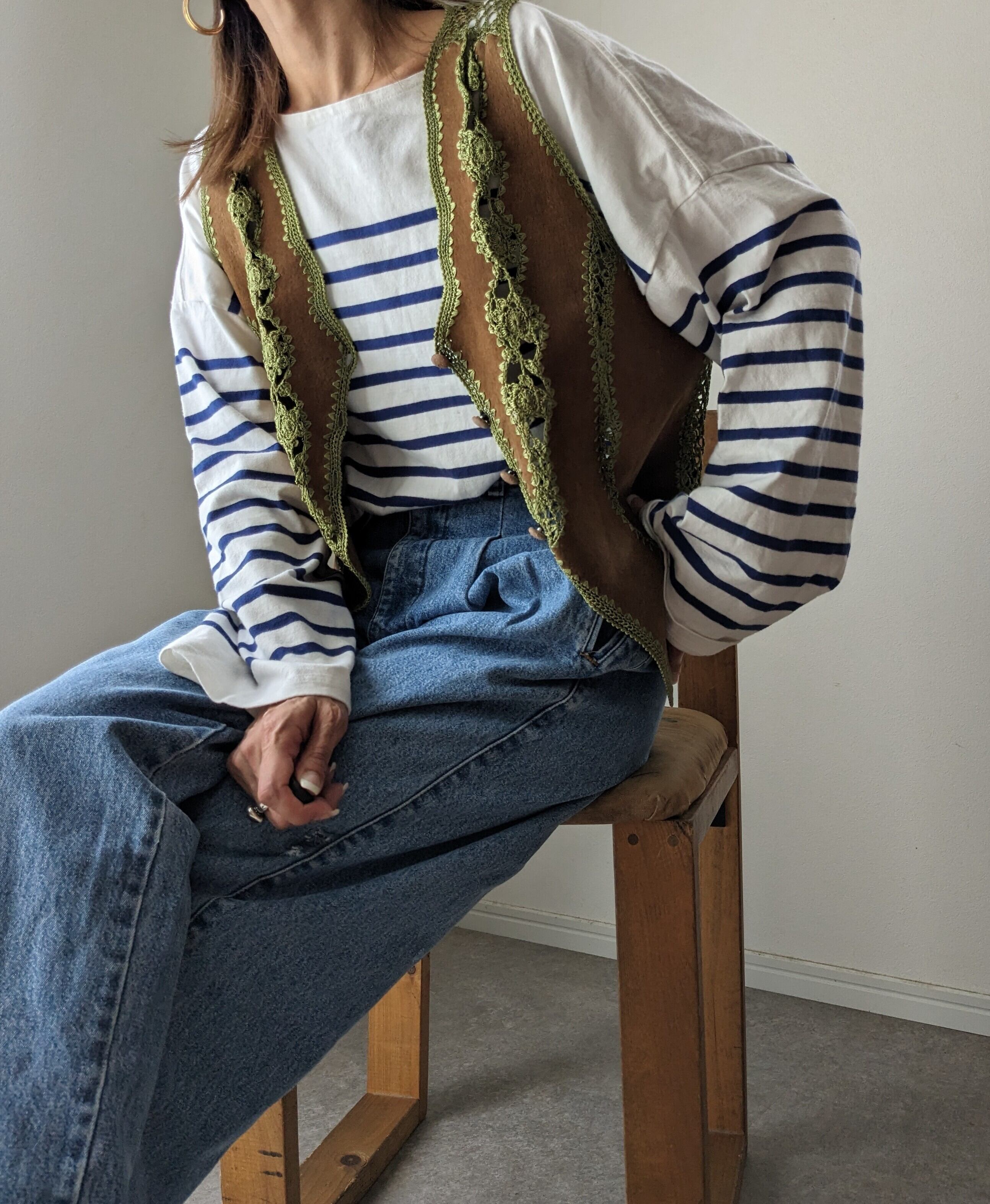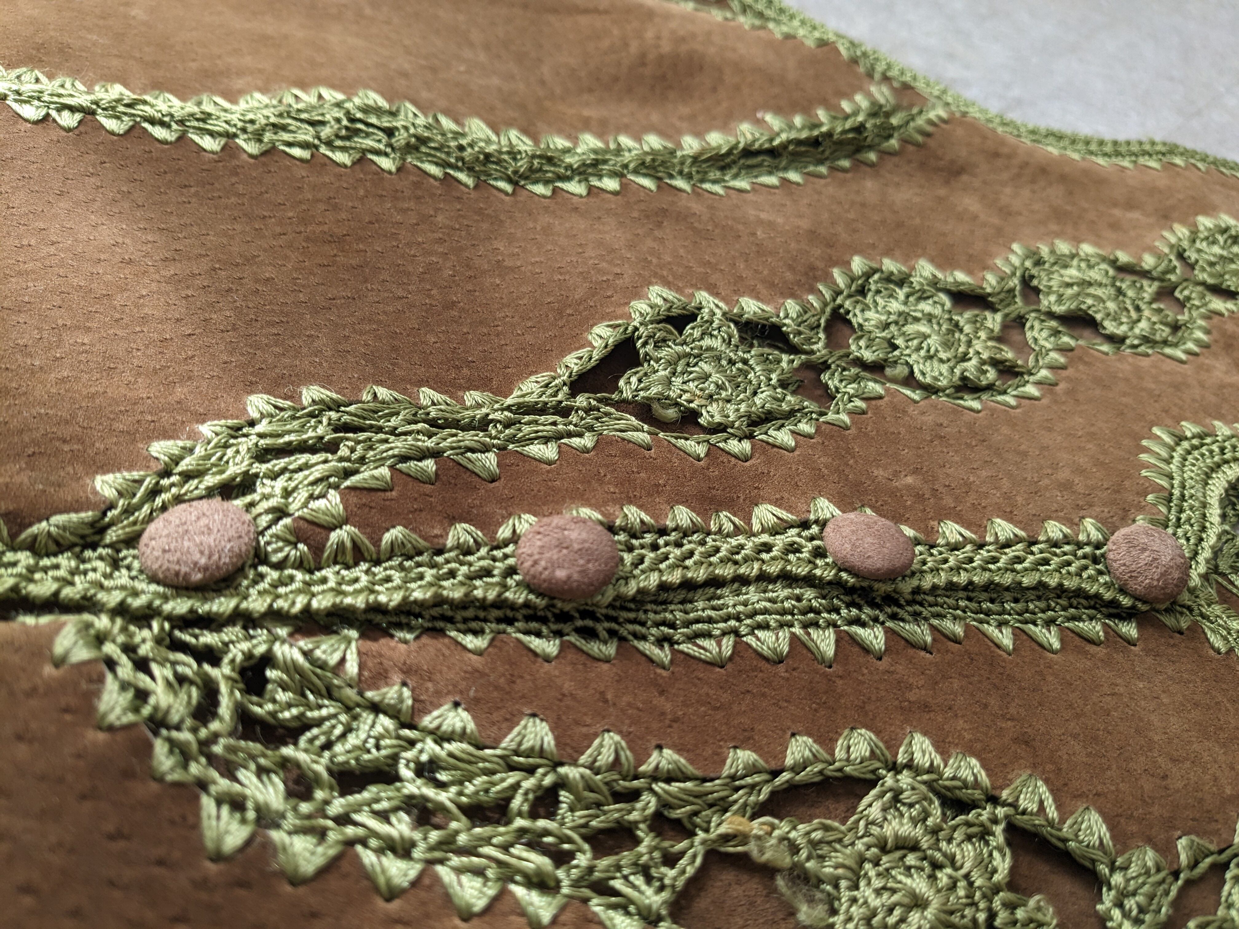 USA embroidery leather bestは、秋を感じさせるグリーンの刺繍とleatherの組み合わせが魅力のアイテムです。