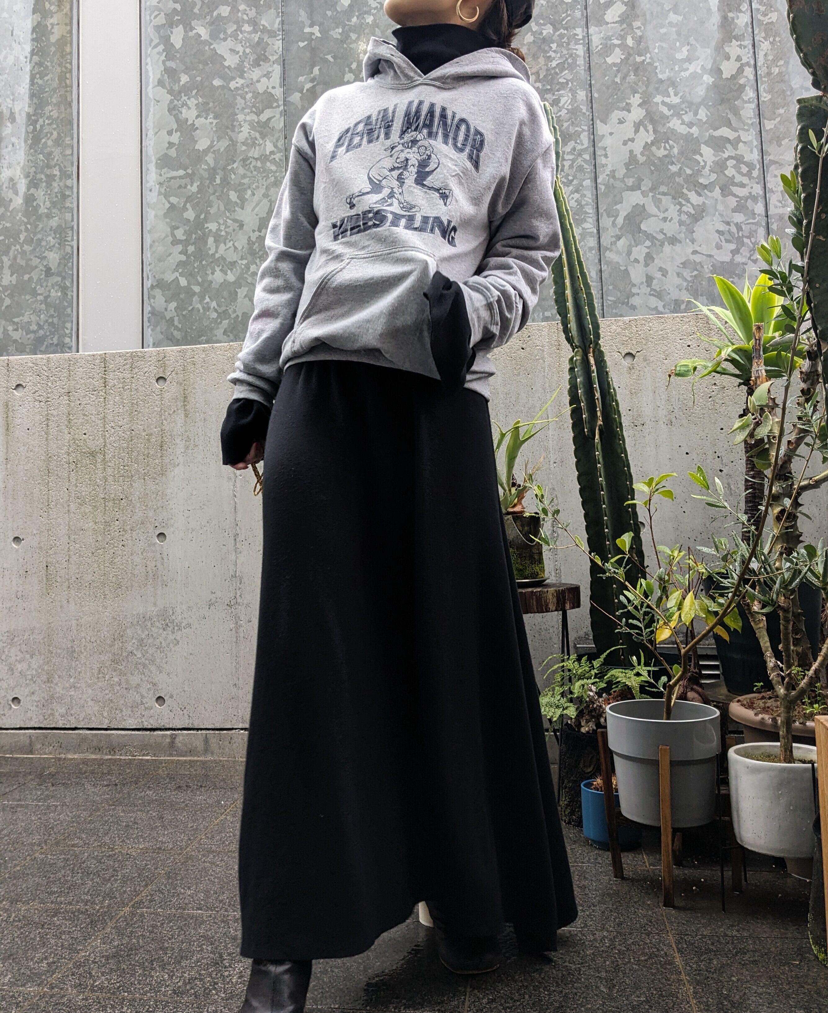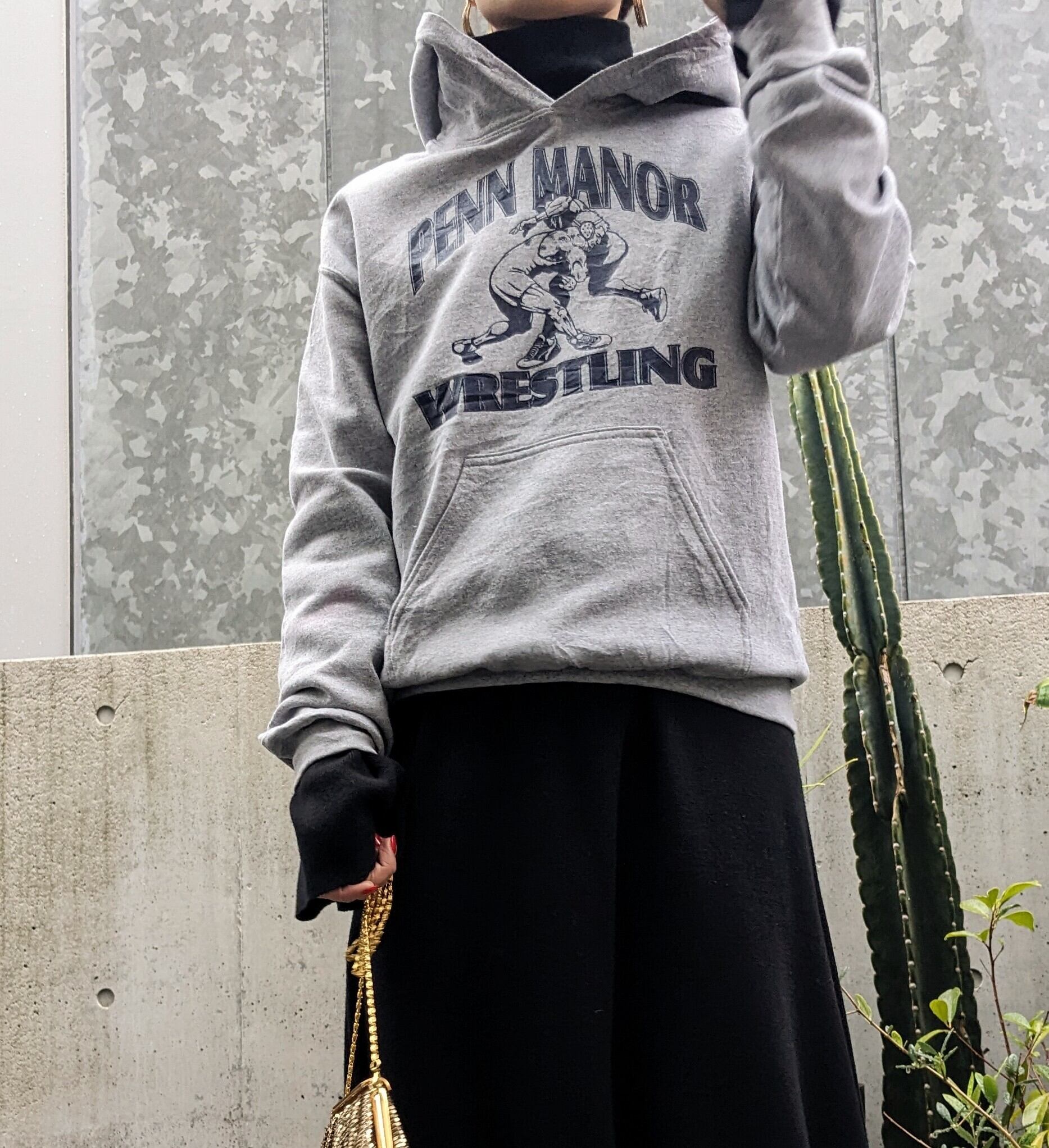 カジュアルな中にもポップなレスリングプリントがかわいい一着。薄手なので春先や初夏の冷え込みのある日にぴったりのアイテムです。