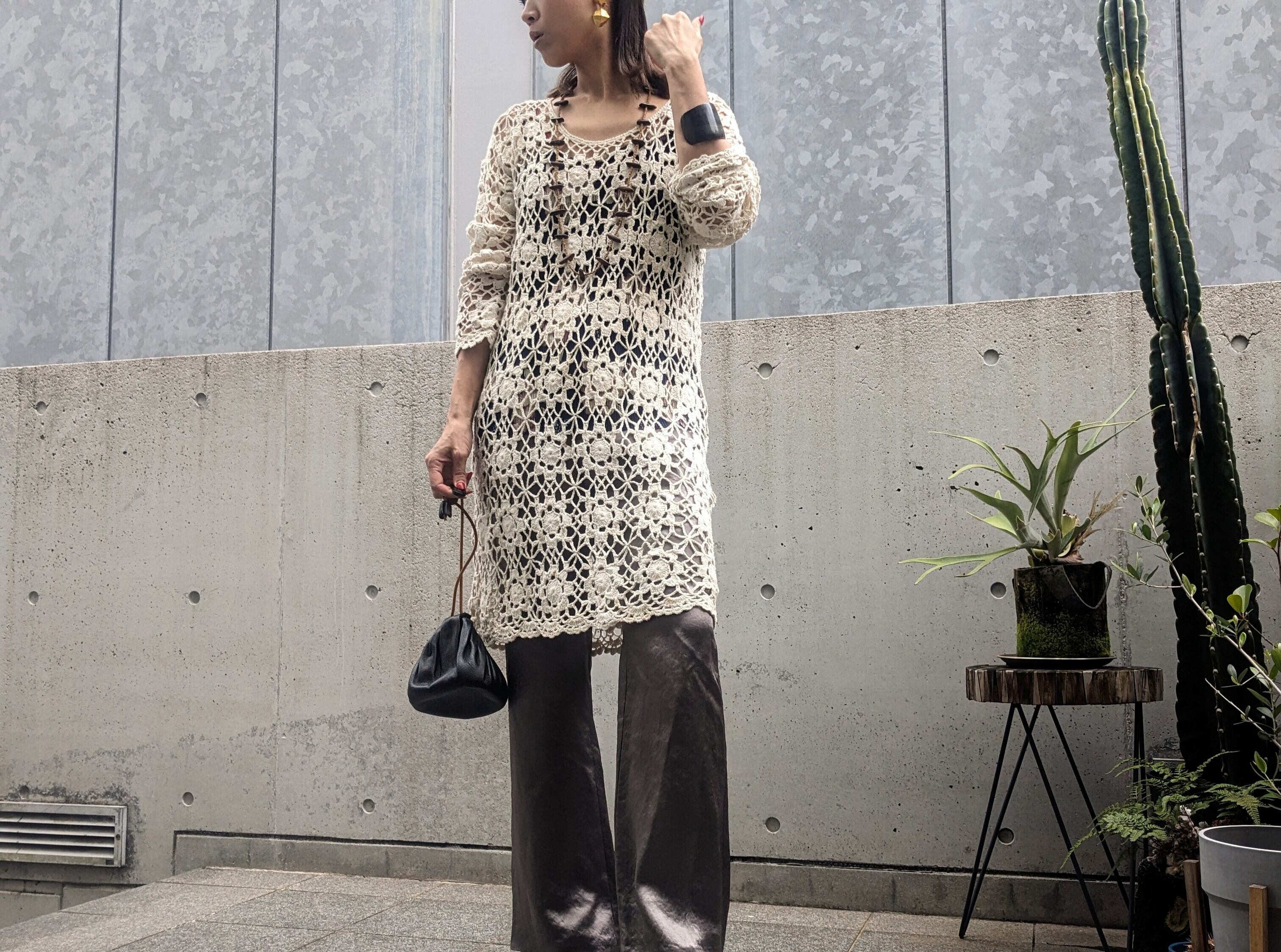 コットンレースの繊細なデザインが魅力のチュニックワンピースです。エレガントなデザインが女性らしさを引き立て、上品な印象を与えます。軽やかな着心地で、夏の暑さも快適に過ごせる一枚です。