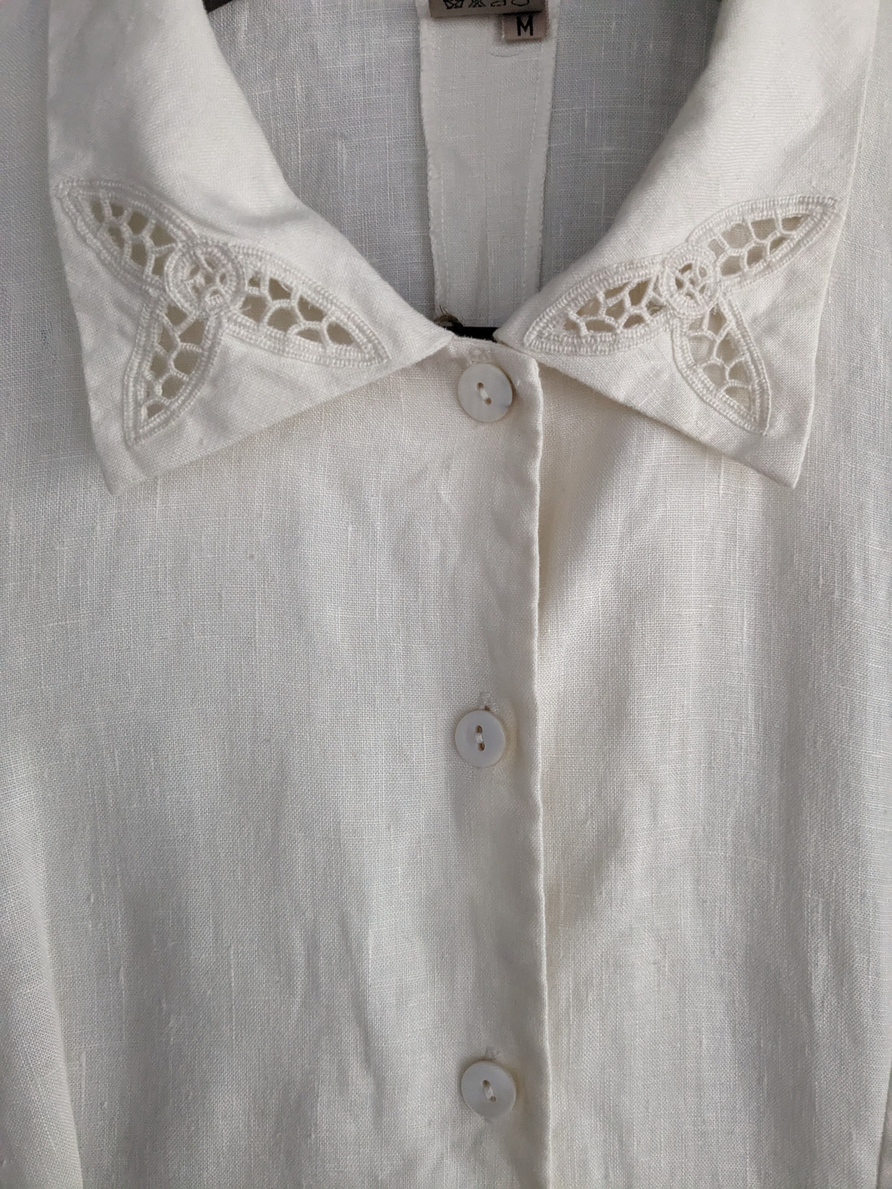 お袖と襟のレースがアクセントとなり、女性らしさを引き立てます。女性らしいシルエットで、シンプルながらも華やかさをプラスしてくれるので、デイリーコーディネートからちょっとしたお出かけまで幅広いシーンで活躍します。