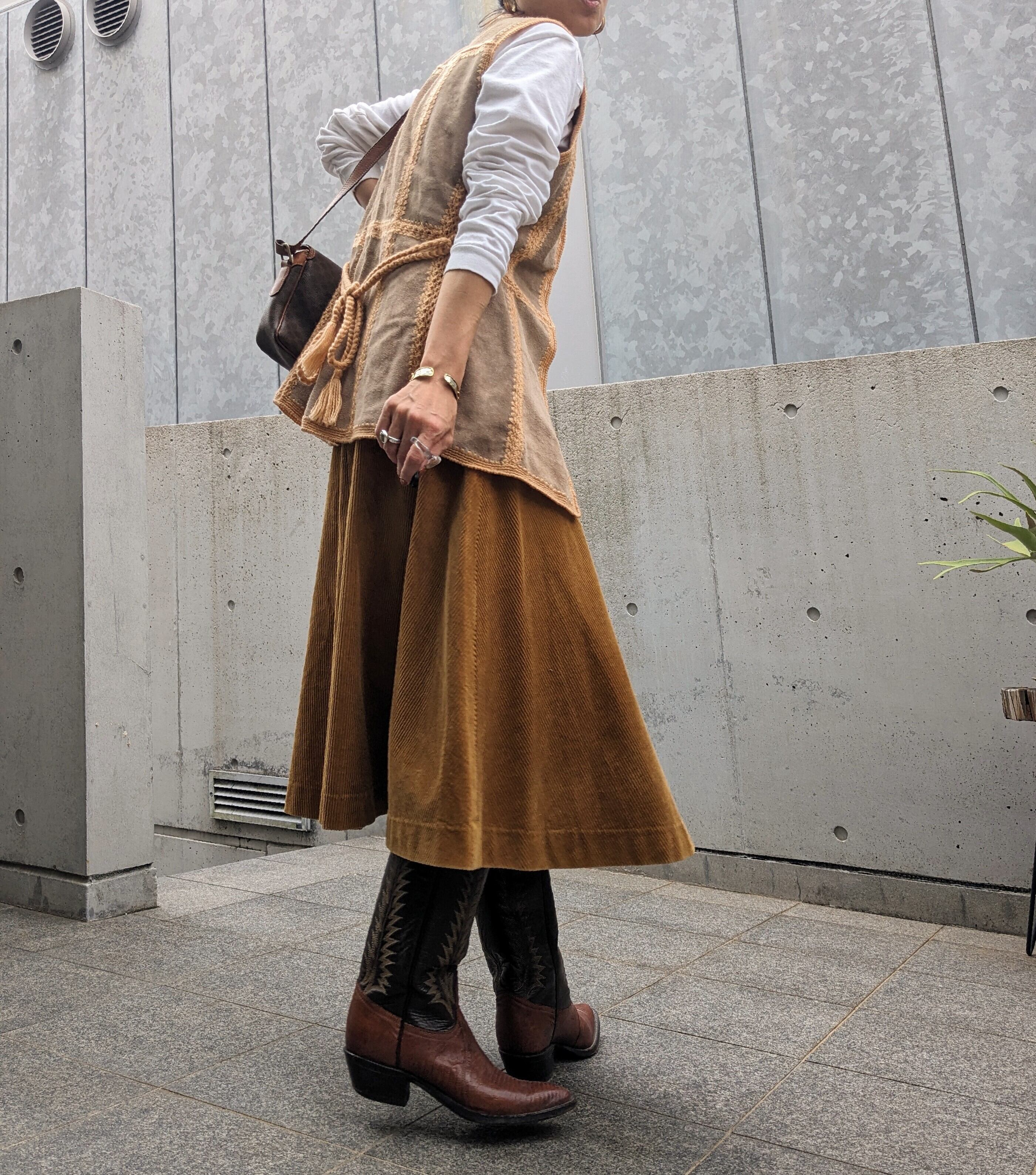 レザーとクロシェ編みの異素材が合わさったUSA leather&crochet vest。個性的なデザインが印象的で、着こなしのアクセントになること間違いなしです。レザーのクールな雰囲気と、クロシェ編みの優しい印象が絶妙なバランスを生み出しています。
