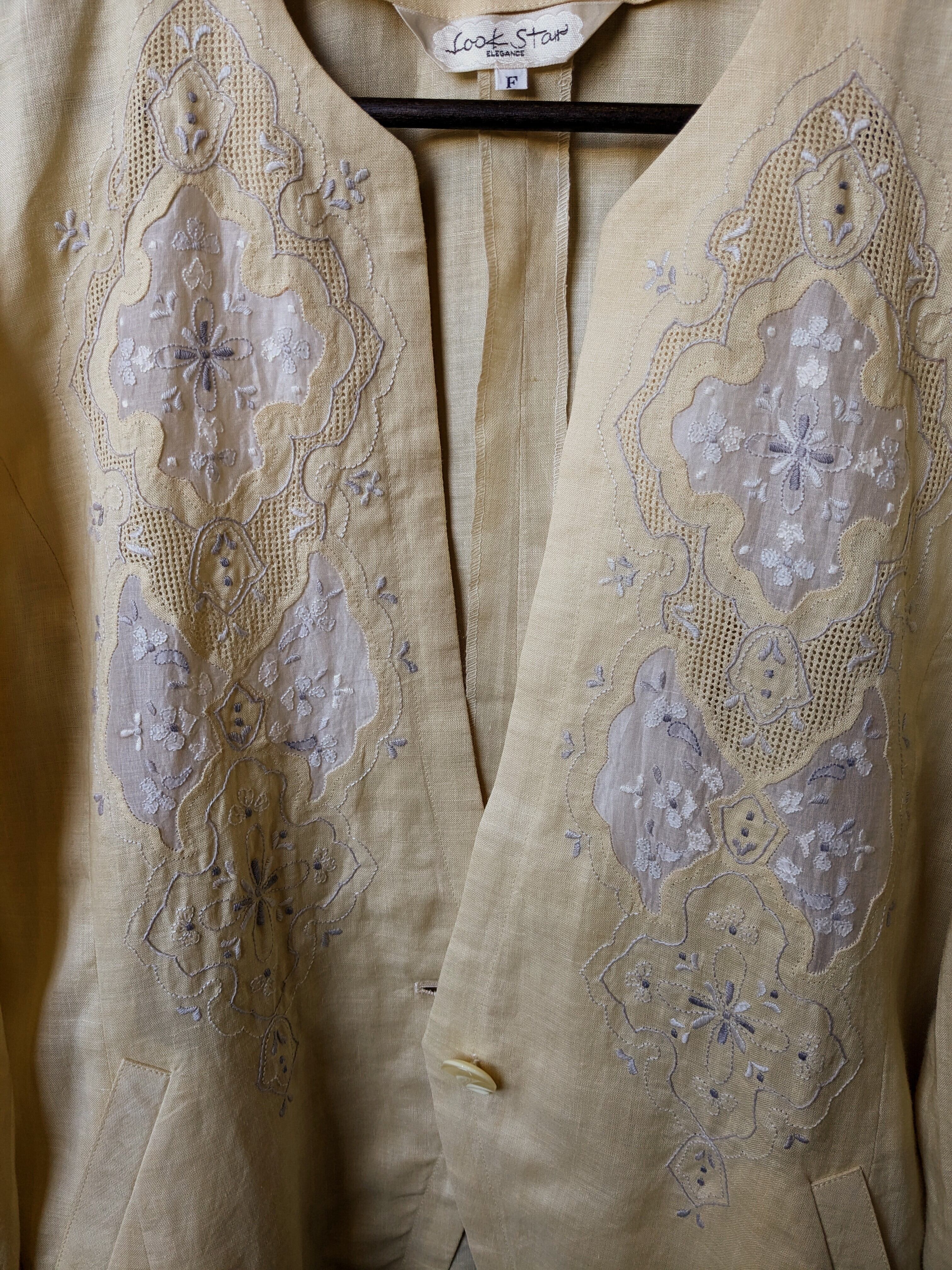 100%リネン素材の、刺繍がとても素敵なジャケット。