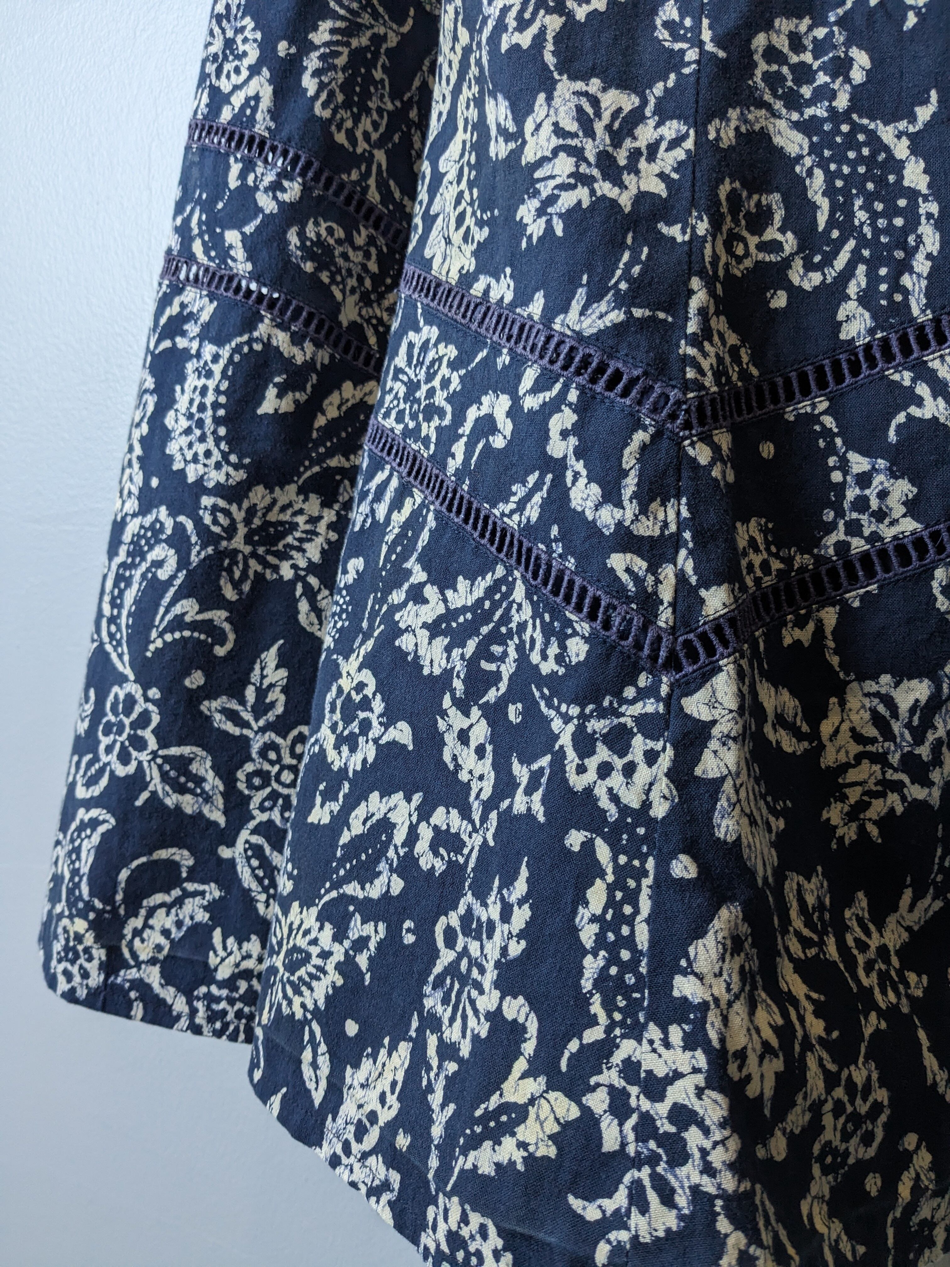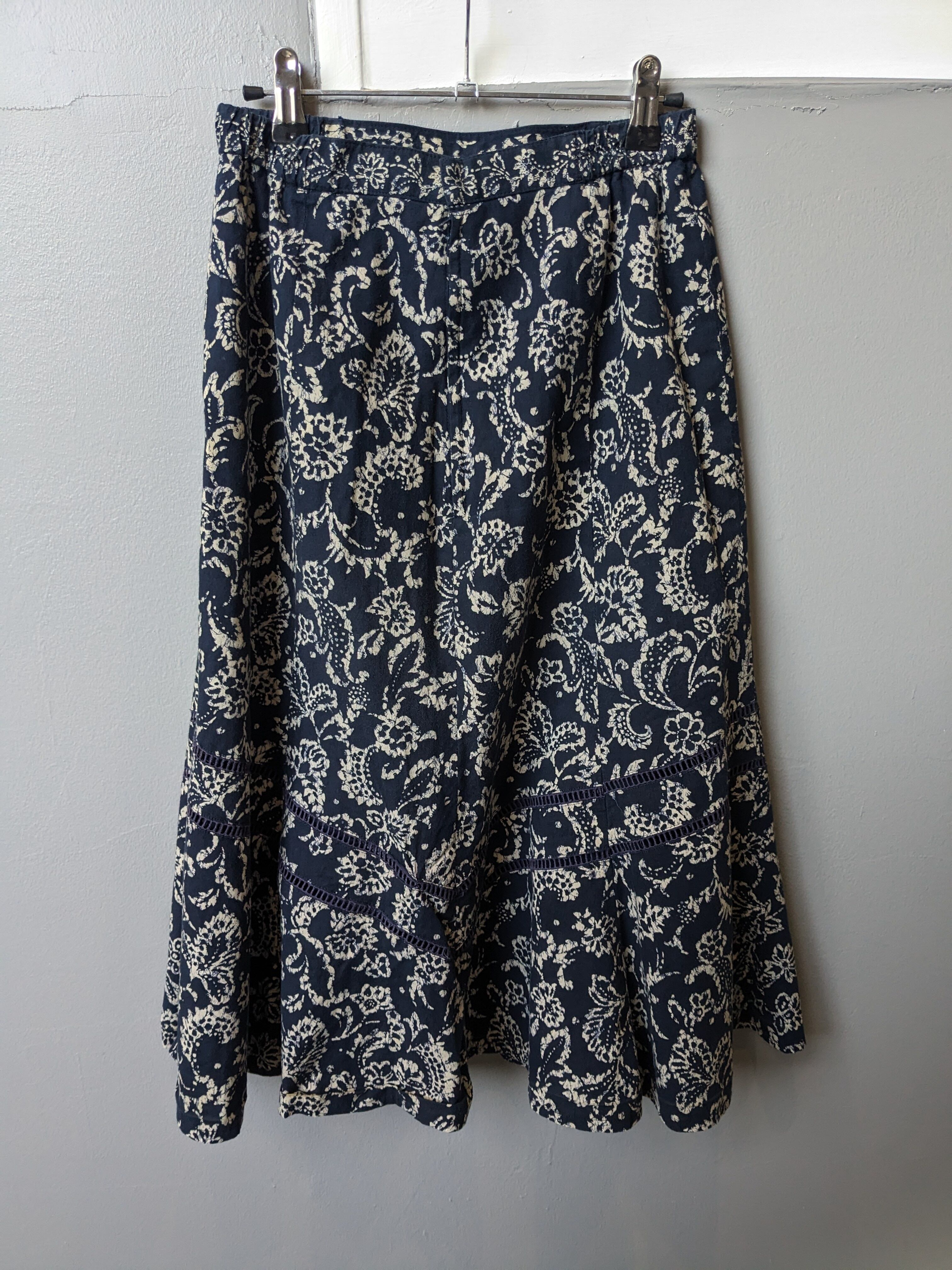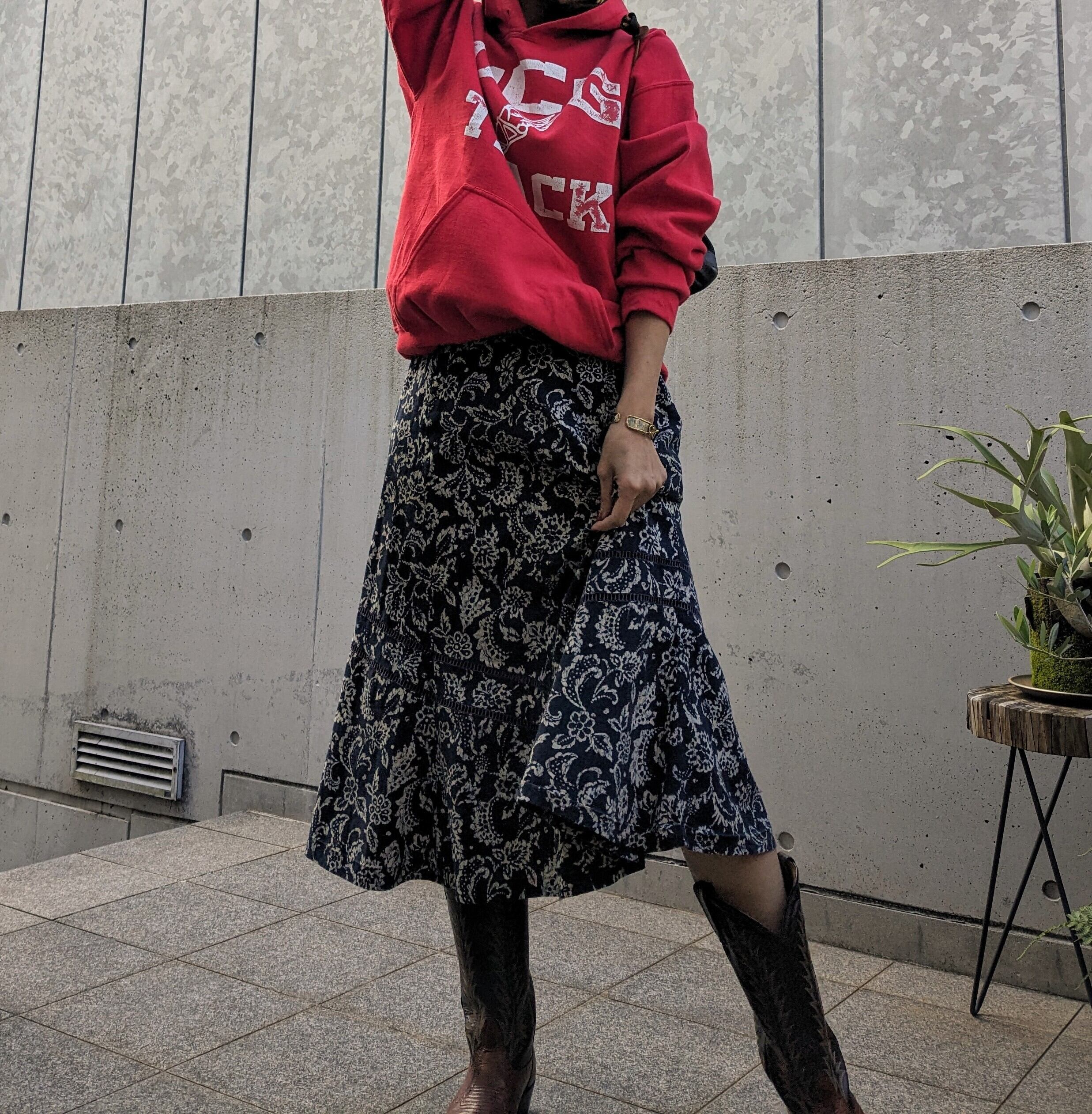 インディゴ染めと総柄が素敵なミディ丈flareスカート