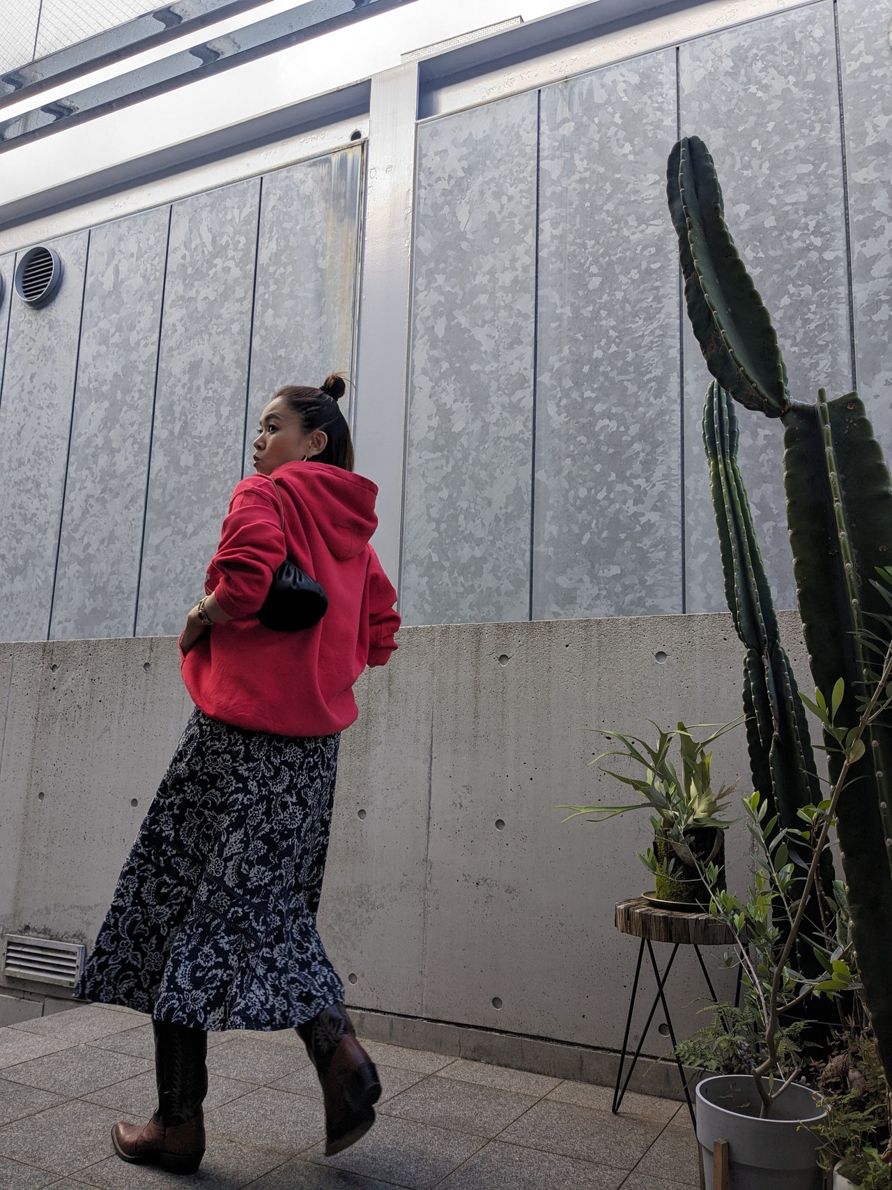 ややハリのあるコットン生地で体のラインも拾わず素敵なスカートです。