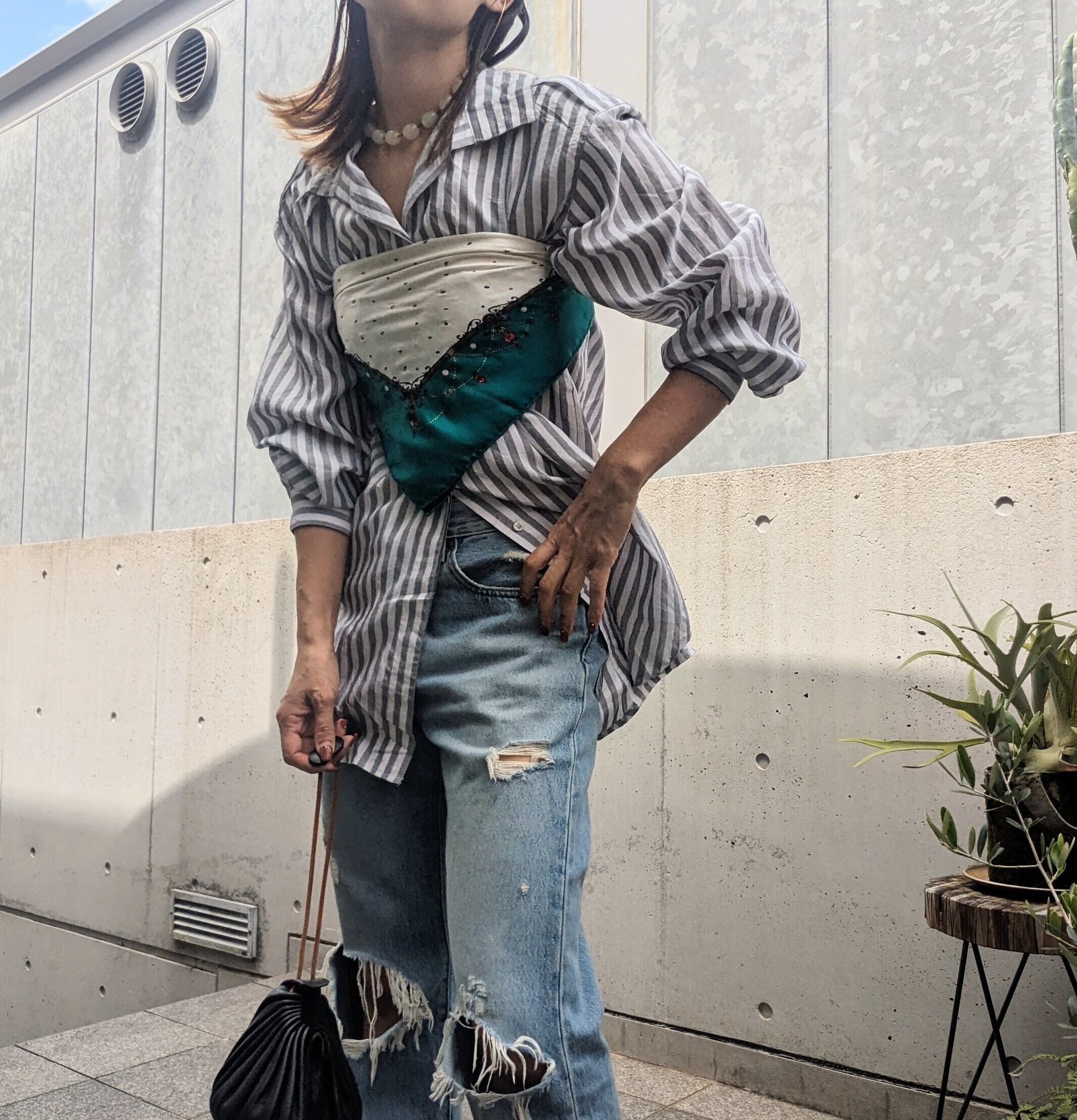 USA vintage stripe silk shirt。