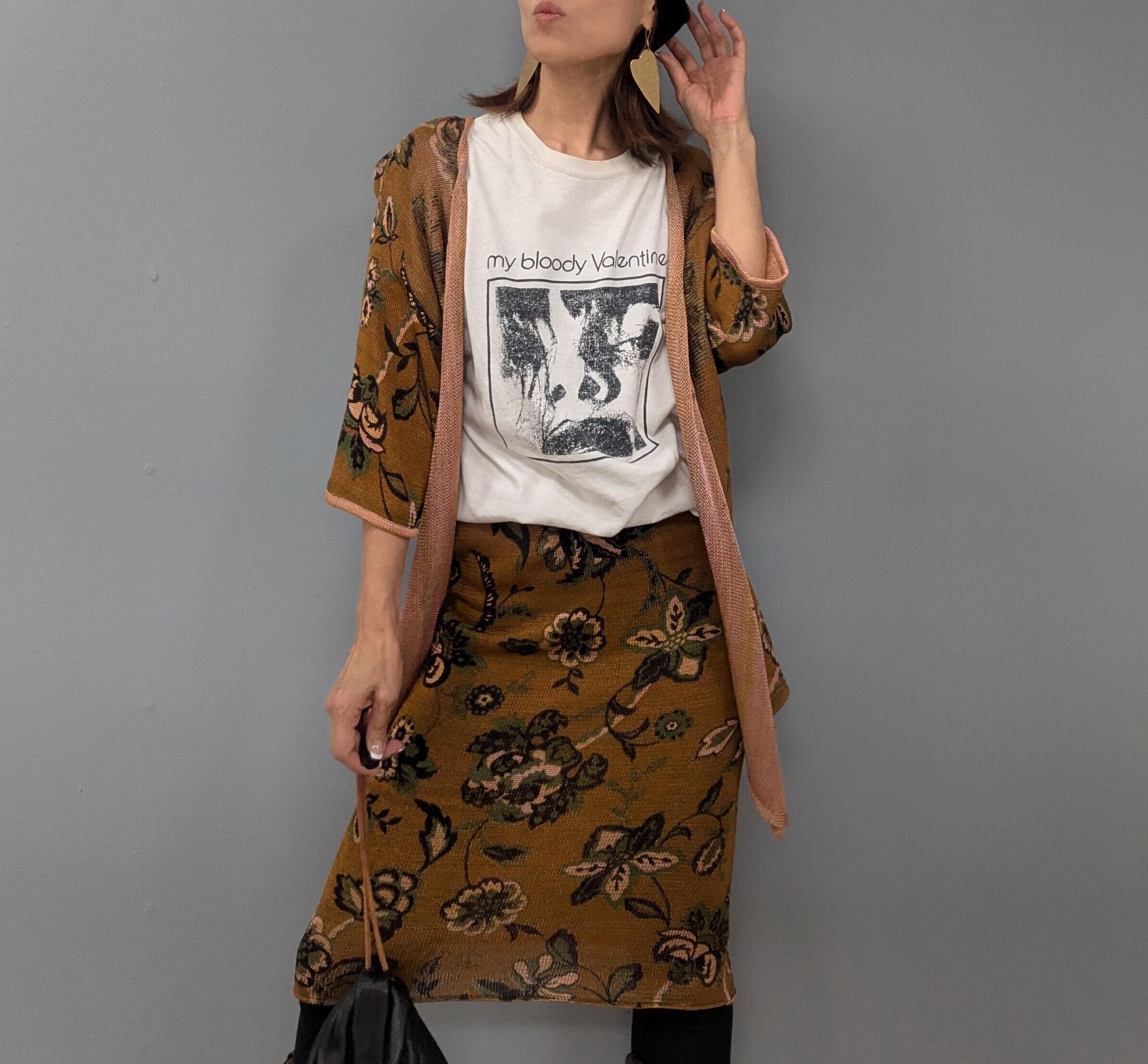 スカートは透け感がありますので、着用の写真はレギンスをレイヤードしていますが、デニム併せや、短めのペチコートなど併せていただいても素敵です。