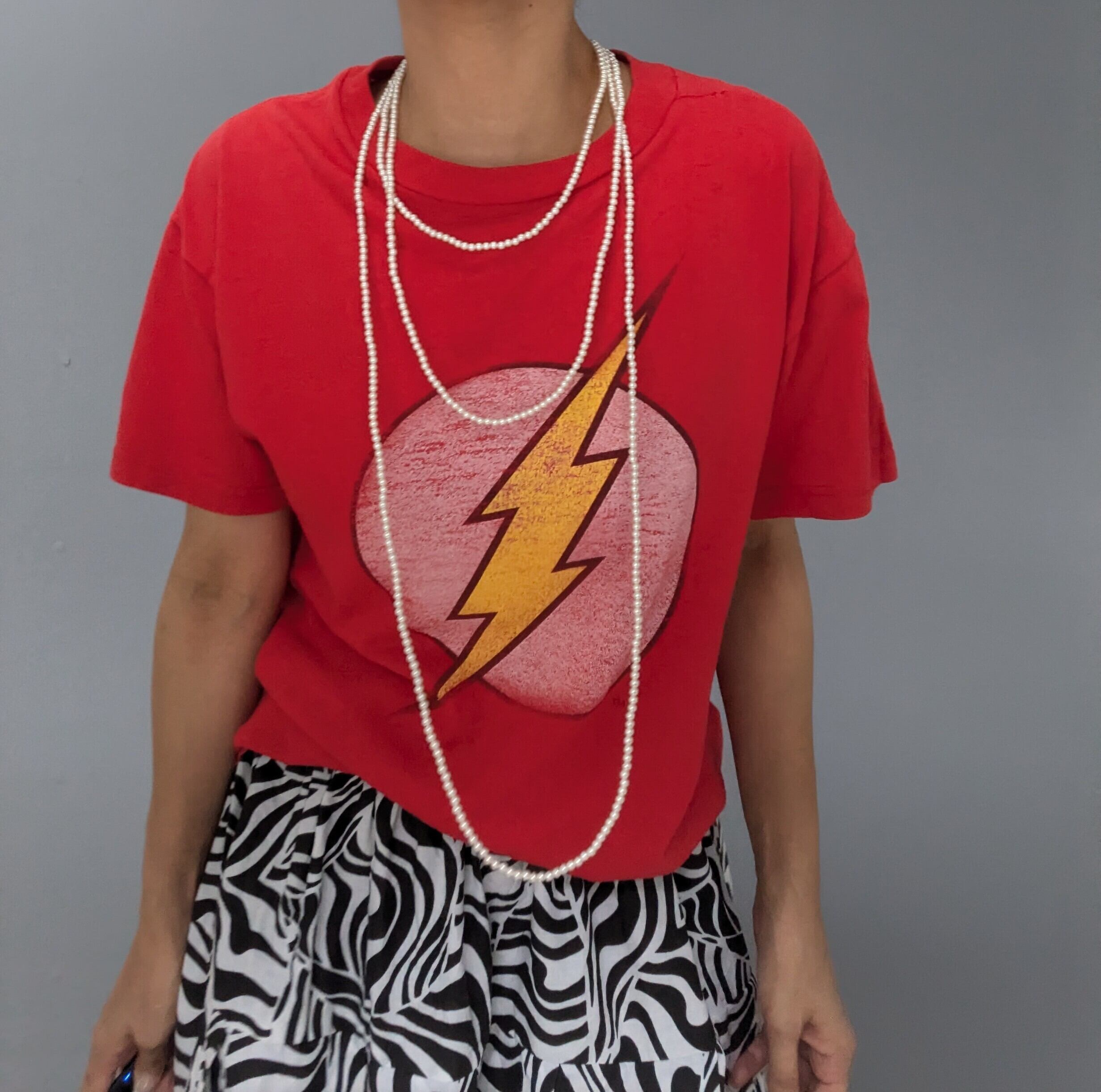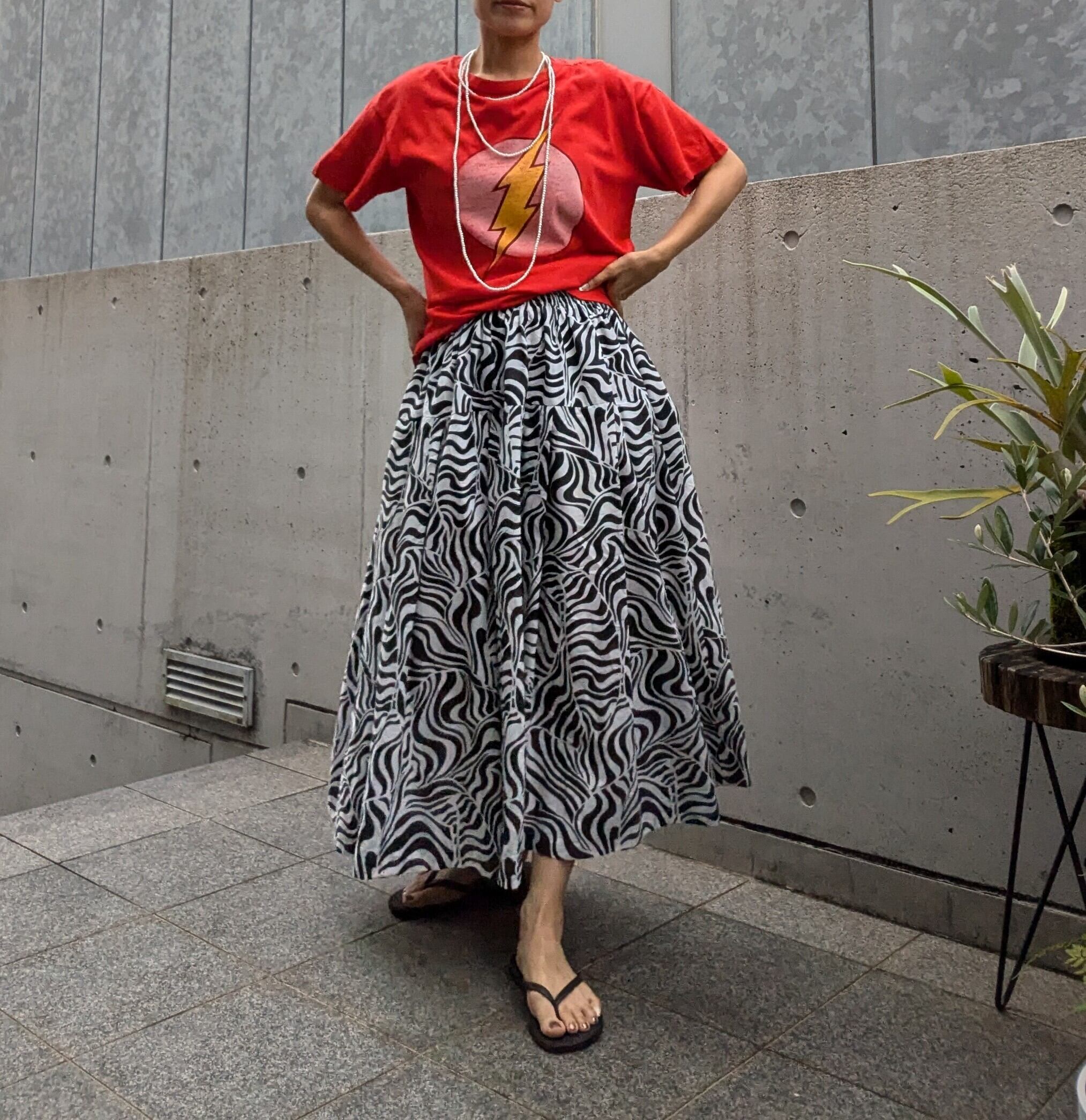ビビッドカラーと、イナズマプリントが目を引くデザインで、コーデのポイントに。