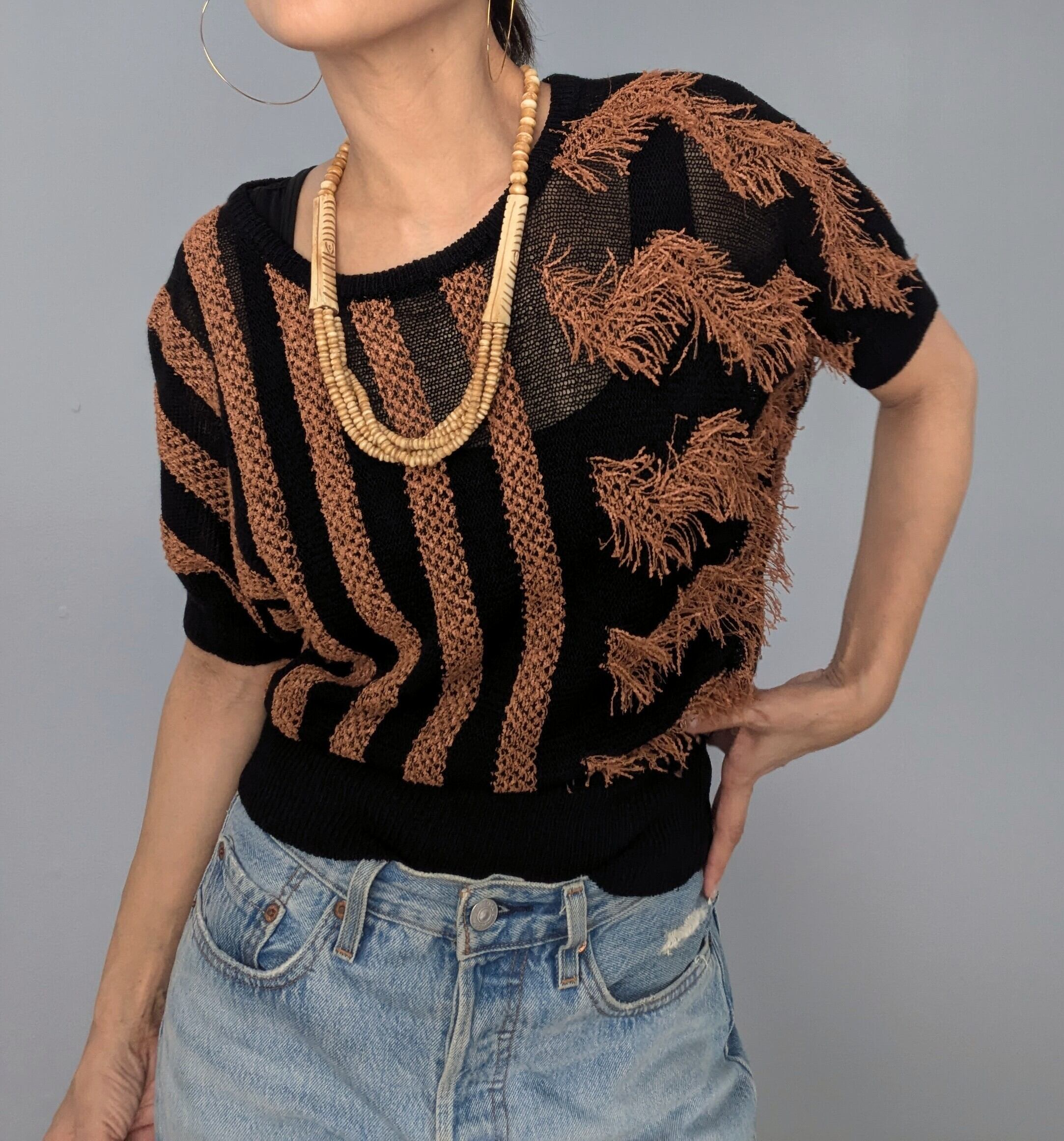 フリンジとボーダーの絶妙な組み合わせが魅力のサマーニット。