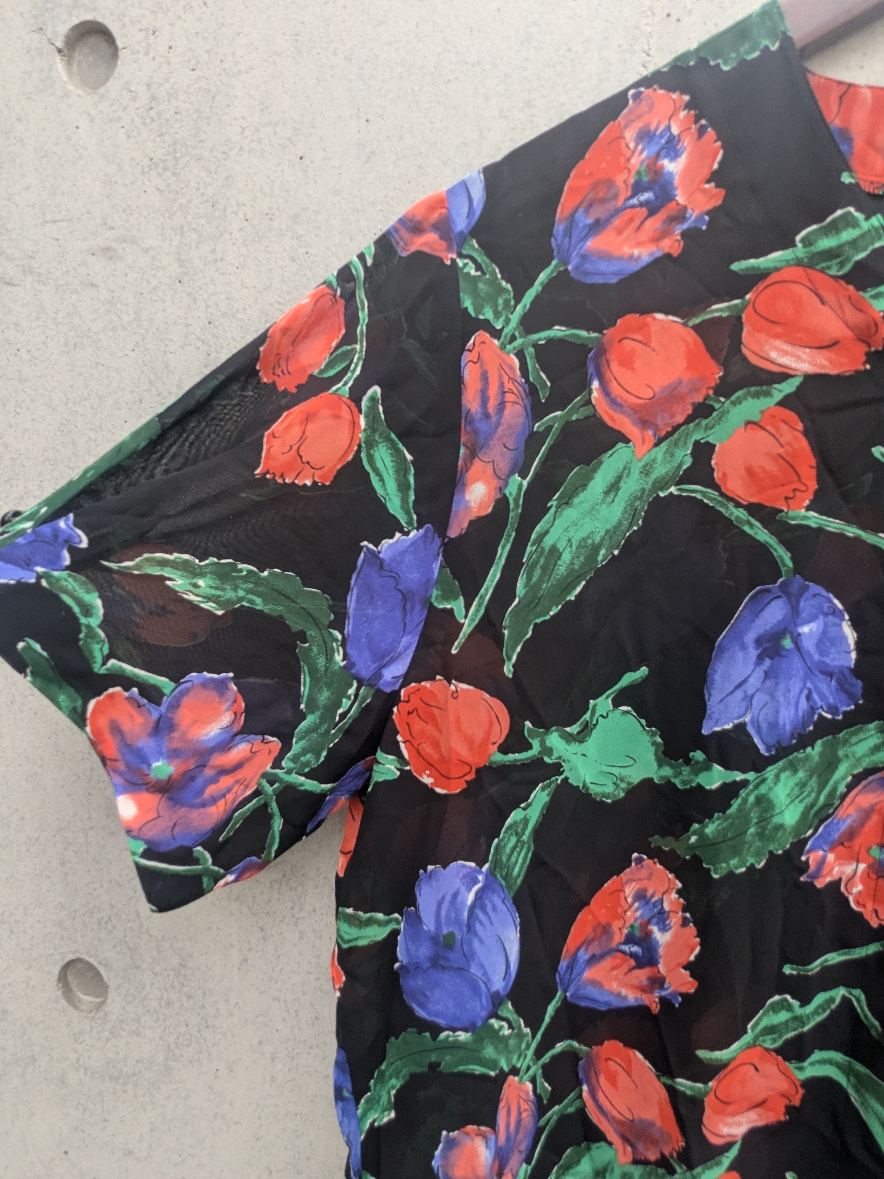 涼しげなchiffon素材とホワンとしたお袖が特徴的な透け感のあるブラウスです。上品なデザインボタンがアクセントになり、おしゃれ度をアップしてくれます。軽やかな着心地と女性らしいゆるいシルエットで、夏のシーンにぴったりの一枚です。オフィスやカジュアルなシーンまで幅広く活躍してくれます。