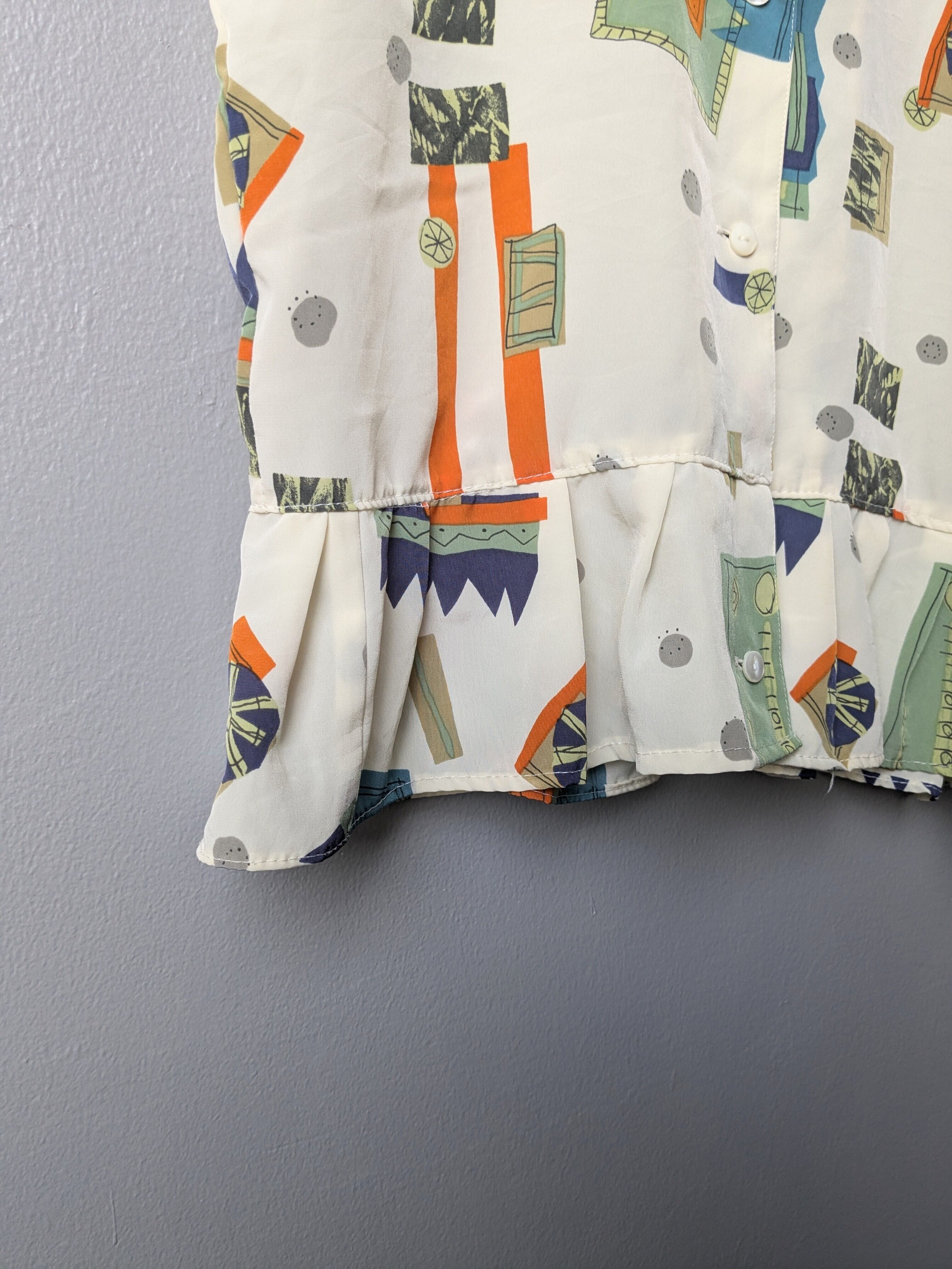 All pattern hem flare nosleeve blouse