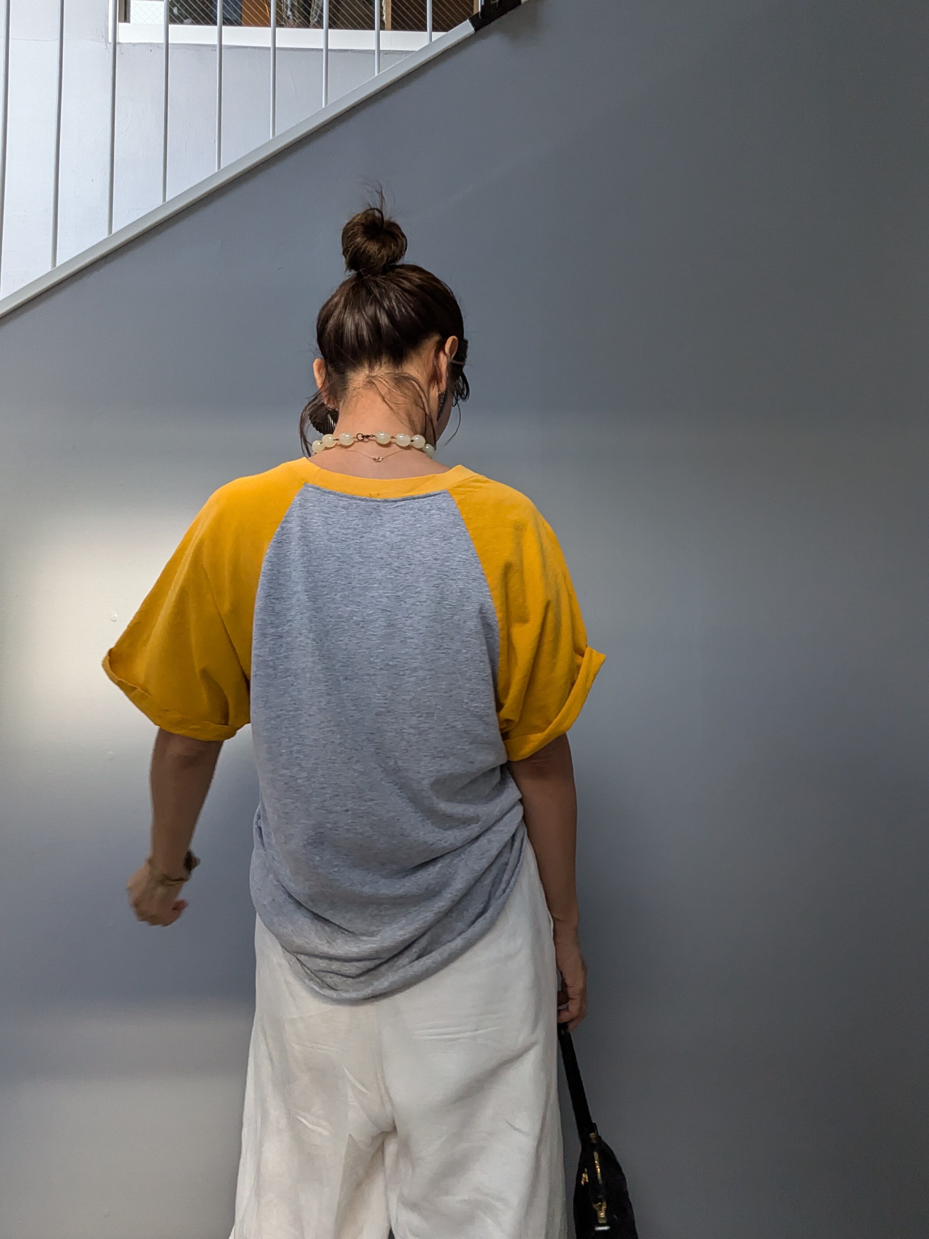 グレーと深みのあるイエローカラーの組み合わせがこれからの季節にも合わせやすく、ラグランデザインは、カジュアルからスポーティまで、幅広いスタイルにマッチします。