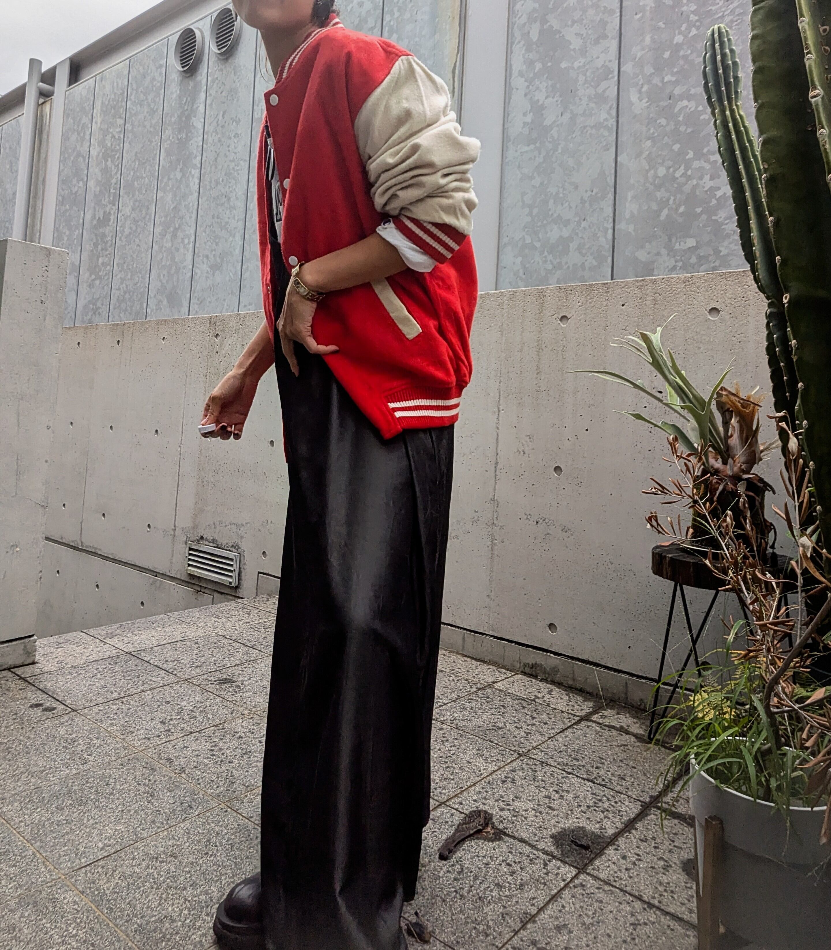 ゆったりとしたシルエットで、インナーにスウェットやTシャツ、シャツなどを着込んでも快適に着用できます。