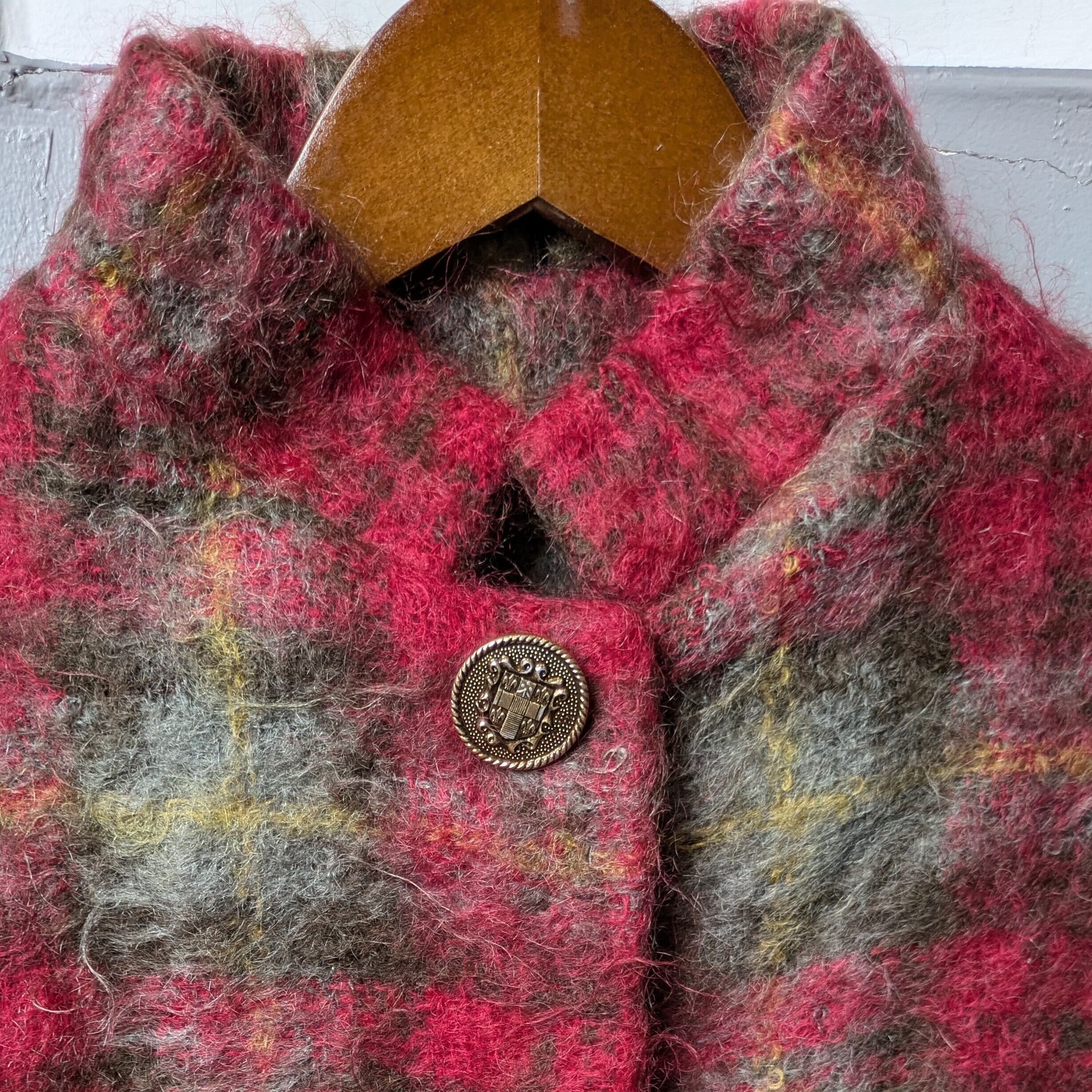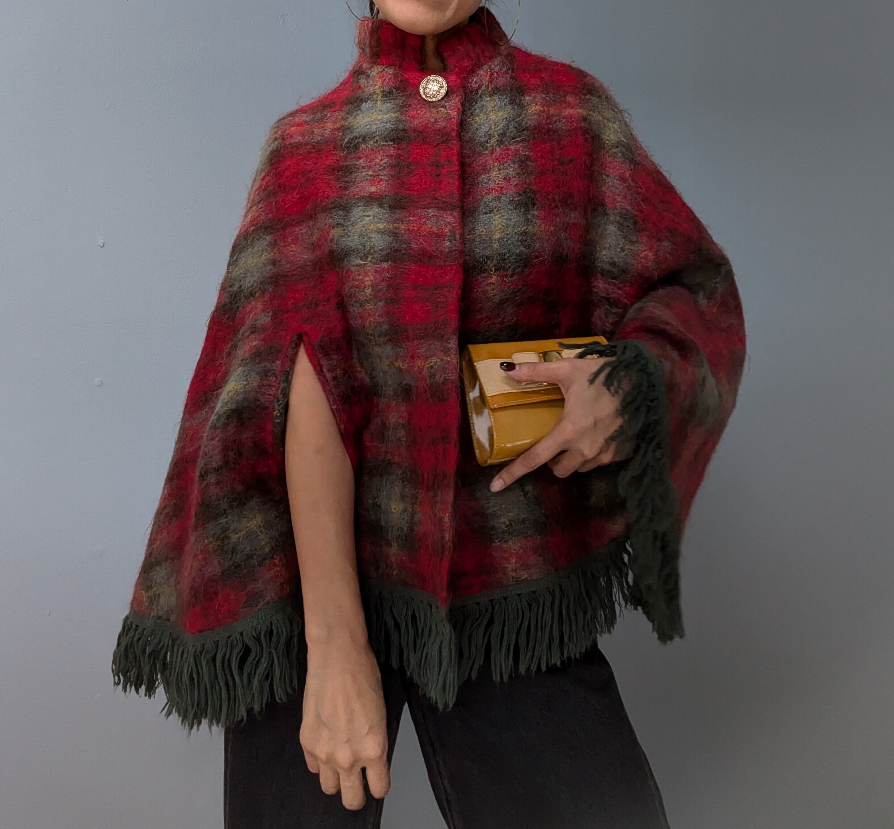 Scotland vintage mohair100% check poncho